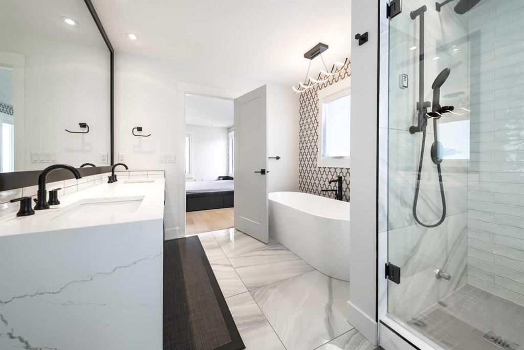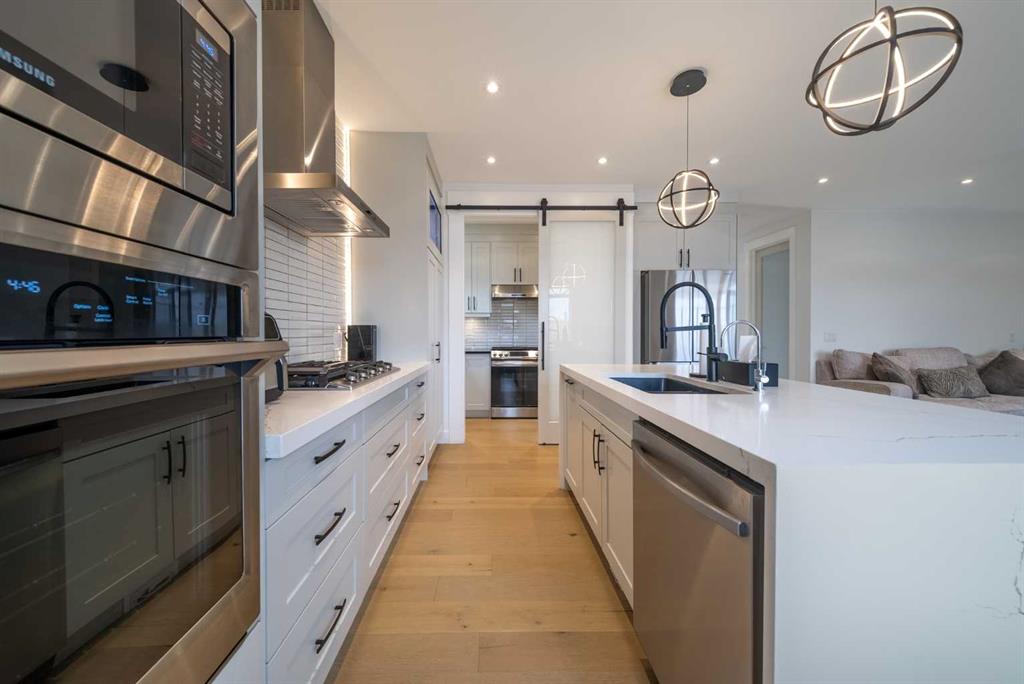 The main floor features a rare and highly sought after secondary primary suite, complete with a private full ensuite ideal for guests or family members seeking single level living. The heart of the home is a chef-inspired kitchen boasting premium stainless steel appliances and contemporary finishes, seamlessly paired with a walk-in spice kitchen for effortless entertaining.