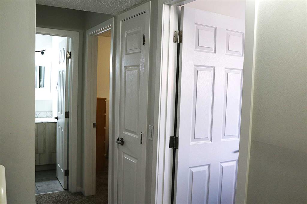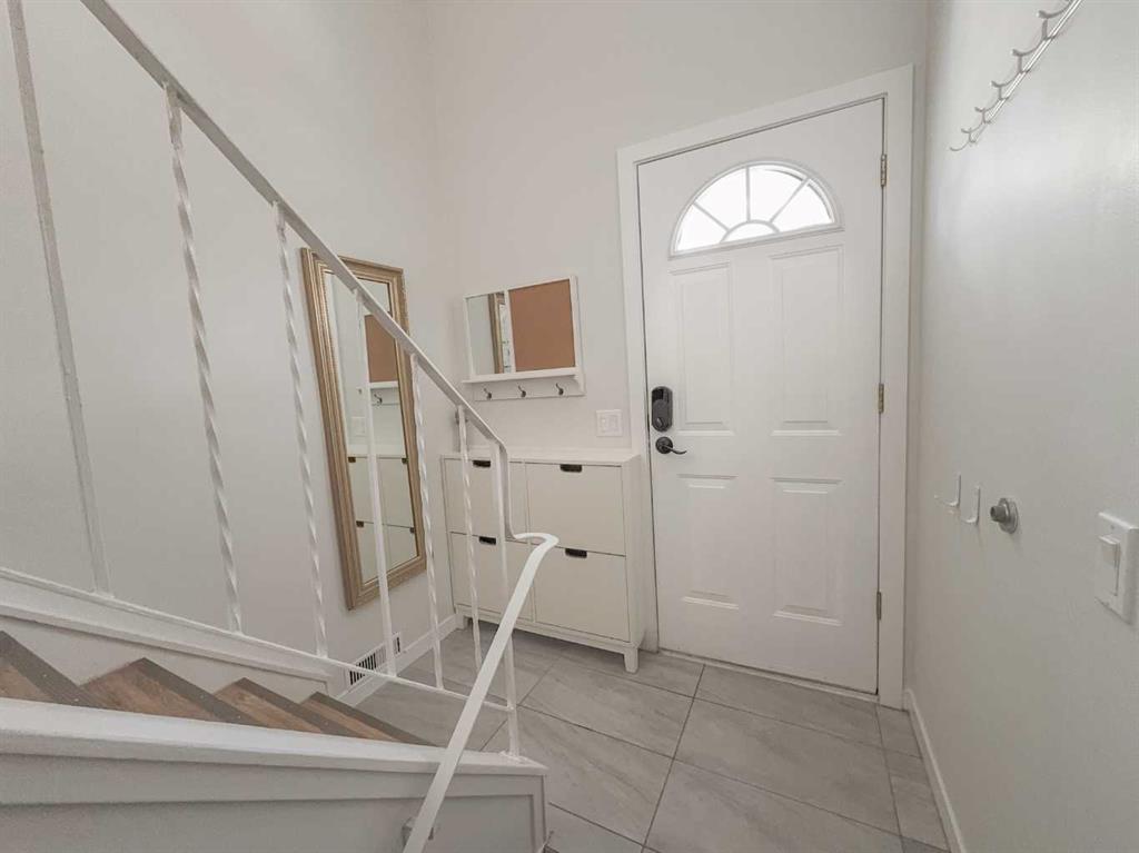 Beautifully renovated townhouse in Penbrooke Meadows. No condo fee. Very well maintained and clean, ready to move in. Main floor features large living room with big window for brightness, good size den, gourmet kitchen with patio door leading to big freshly painted deck on sunny west backyard. Professionally finished basement with two good size bedrooms and full bathroom. A lot of upgrades in this lovely home like newer kitchen cabinets and quartz counter tops (2019), newer roof (2019), newer windows ( 2019), newer furnace (2018), newer stove, new dishwasher, newer siding (2021), newer front deck/patio (2021). Perfect location on quiet and safe street close to schools, MAX Purple, parks, shopping and transportation