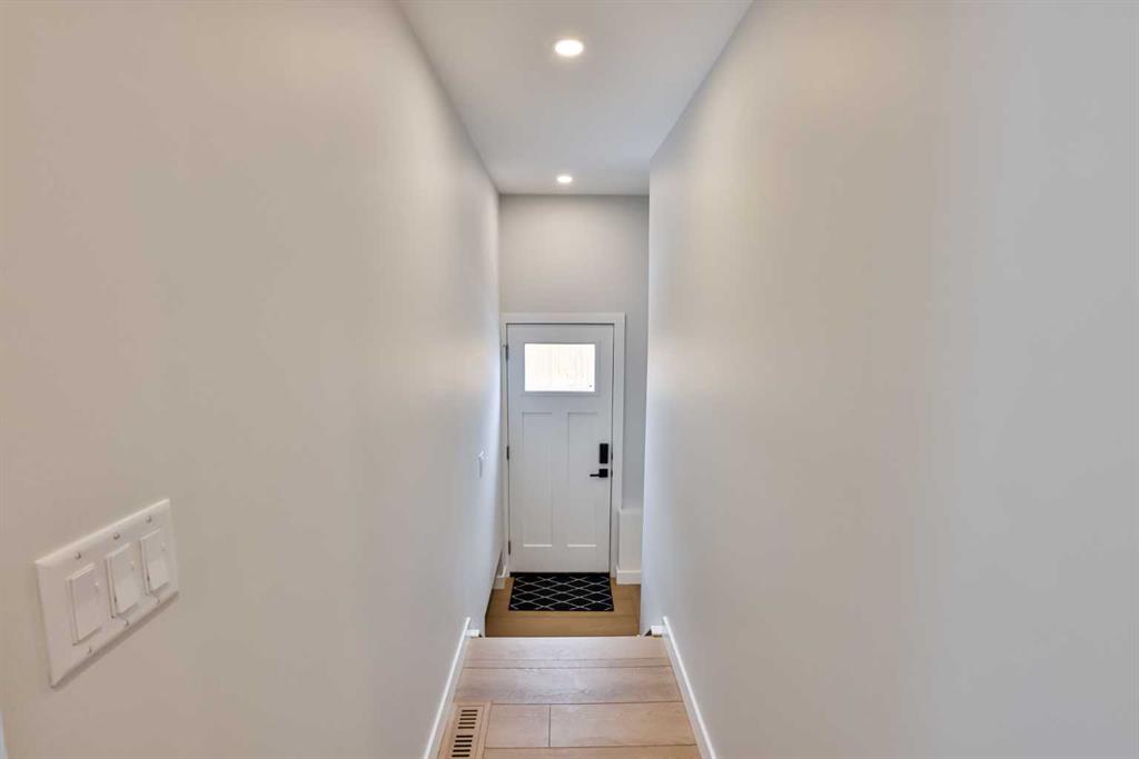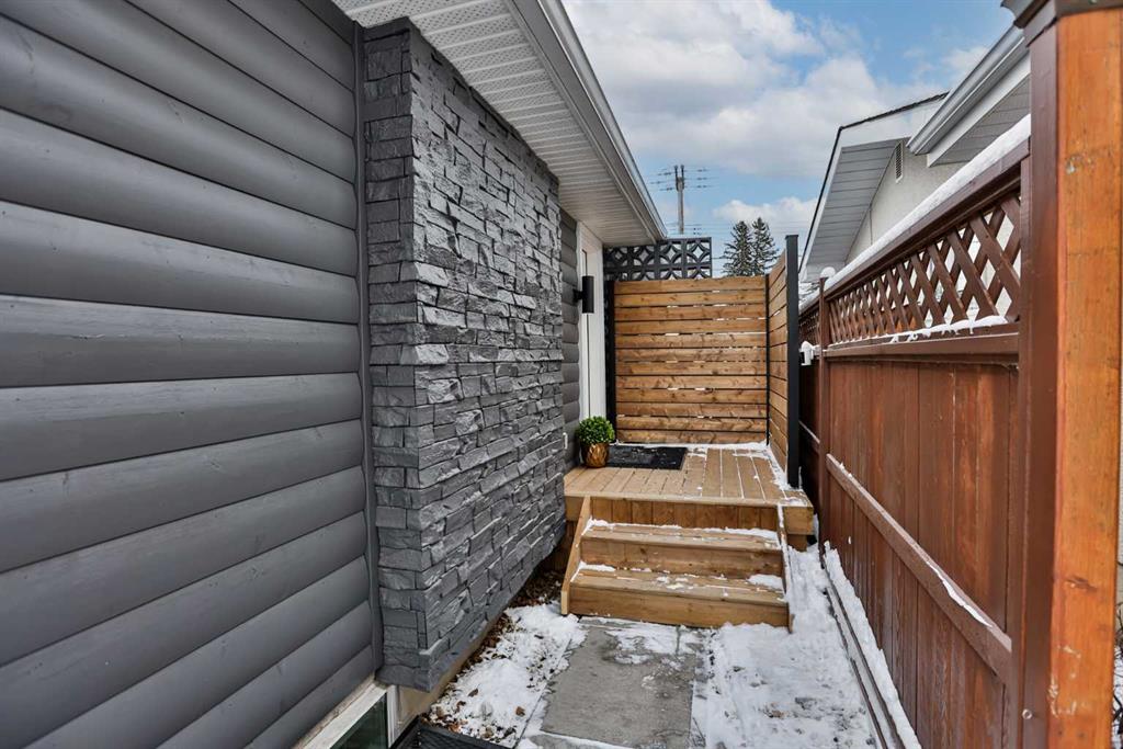 The exterior makes a statement with its dark, modern finish, complemented by new paint, upgraded doors, refreshed landscaping with new sod, revised grading, and a new 6-foot wood fence. The private covered patio at the rear of the home, complete with a privacy wall, creates a perfect space to relax or entertain, while a ground-level deck in the north yard offers an additional outdoor area to enjoy. A detached double garage with side lane access adds everyday convenience. Move-in ready and available for possession in early July 2026.