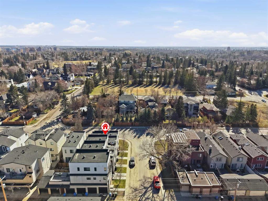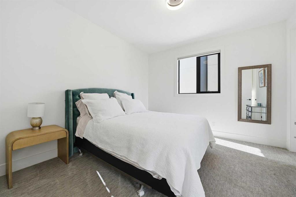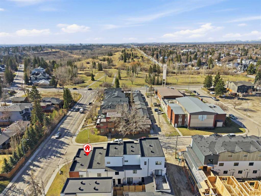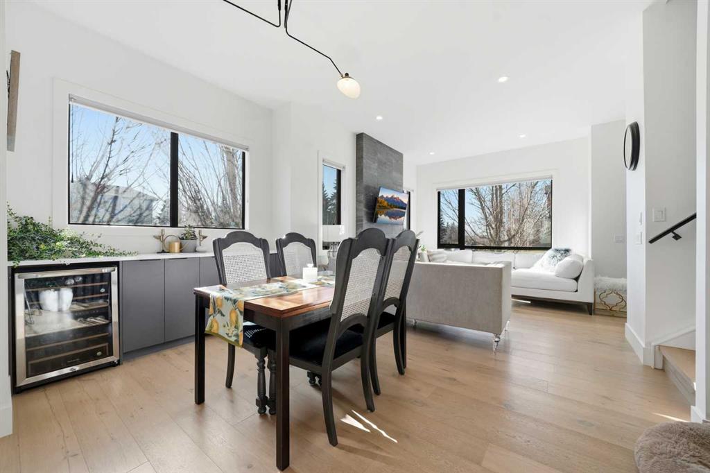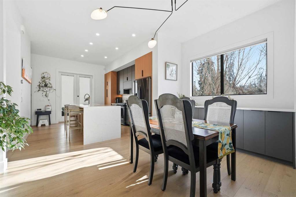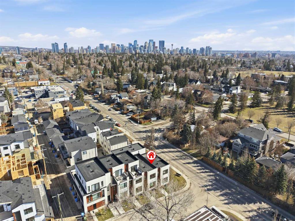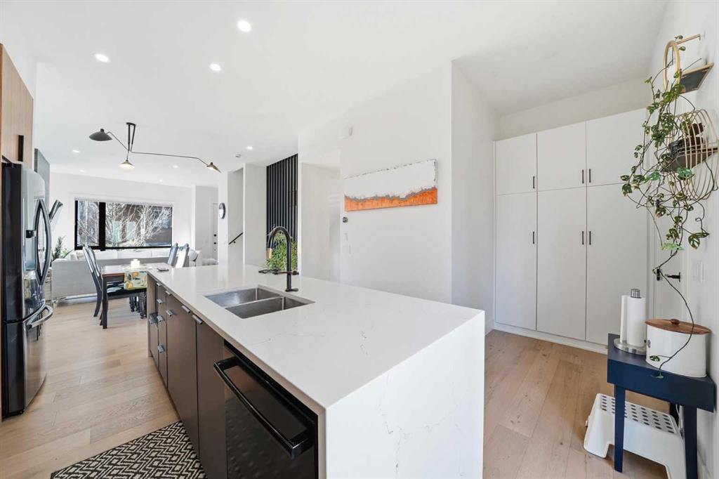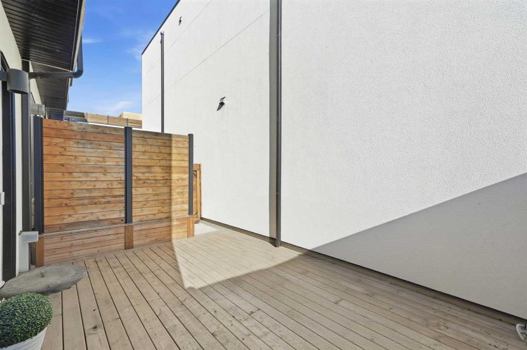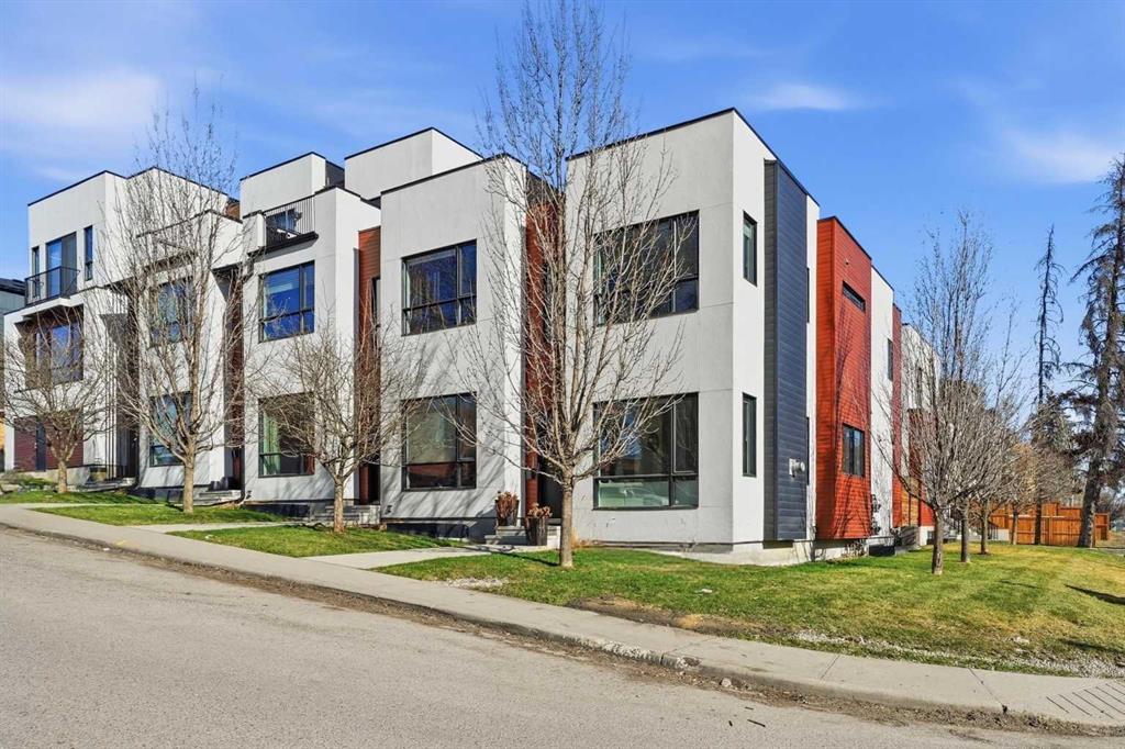 Welcome to Alto37, an exceptional urban residence in the heart of Mardaloop, masterfully built by Urban Craft Homes and thoughtfully designed with interiors curated by JRstudioworks. This rare, extra-wide 2-storey townhome spans nearly 1,900 sq ft of refined living space and offers a layout that truly sets it apart from anything else on the market. Positioned as a bright corner unit, this home is flooded with natural light from expansive south-facing windows, creating an open, airy atmosphere throughout. The main level showcases impressive 10-foot ceilings, wide staircases, and a sleek, minimalist aesthetic that perfectly balances form and function. The spacious dining area is ideal for hosting, while the chef-inspired kitchen features a gas range, high-end appliances, and custom cabinetry designed for both everyday living and elevated entertaining. The signature extra-wide floor plan allows for full-sized furnishings, an uncommon luxury in townhome living—providing both comfort and versatility. Step directly from the kitchen onto your private rooftop deck, complete with a privacy fence and perfect for summer BBQs and relaxing evenings. Upstairs, the primary retreat offers a serene escape with sunny south exposure and a beautifully appointed ensuite. Two additional bedrooms, a full bathroom, and convenient upper-floor laundry complete the level, making it ideal for families or professionals alike, Additional highlights include central air conditioning, a single attached garage with epoxy flooring, and premium finishings throughout. Located just steps from one of Calgary’s best off-leash dog parks, as well as top-rated restaurants, cafes, and public transit, this home delivers the ultimate inner-city lifestyle. A rare opportunity to own a standout property in one of Calgary’s most desirable communities.