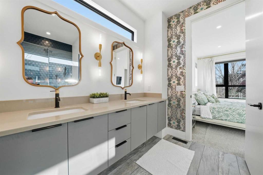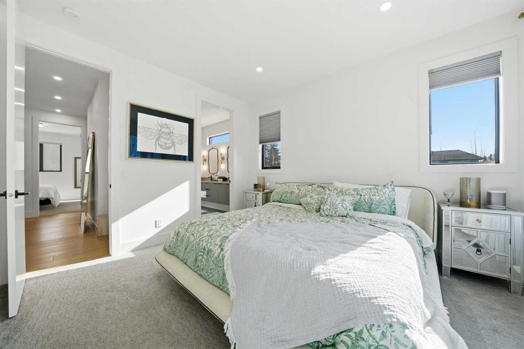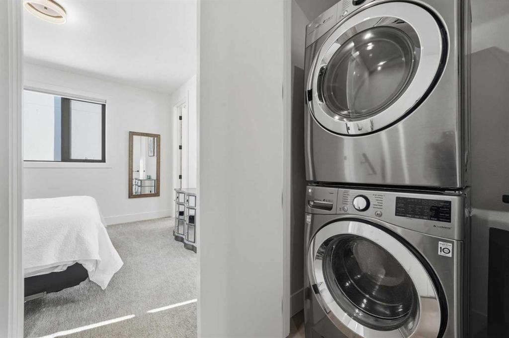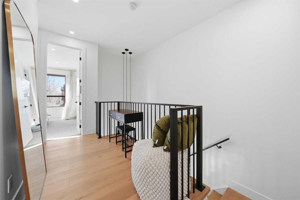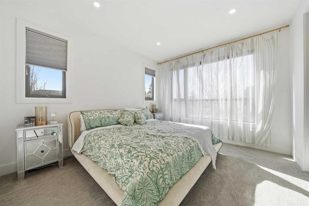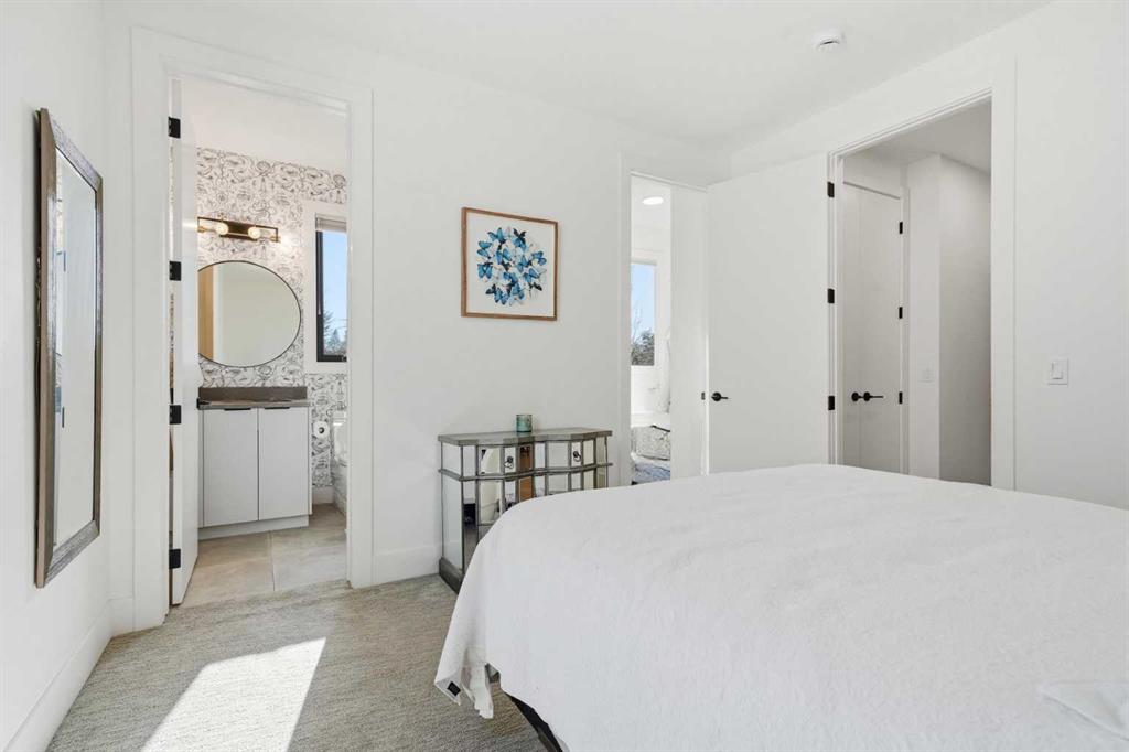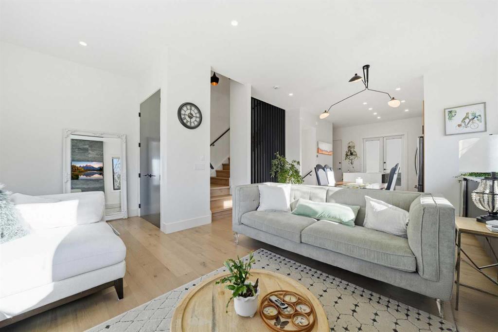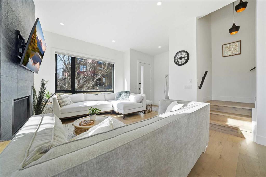 Welcome to Alto37, an exceptional urban residence in the heart of Mardaloop, masterfully built by Urban Craft Homes and thoughtfully designed with interiors curated by JRstudioworks. This rare, extra-wide 2-storey townhome spans nearly 1,900 sq ft of refined living space and offers a layout that truly sets it apart from anything else on the market. Positioned as a bright corner unit, this home is flooded with natural light from expansive south-facing windows, creating an open, airy atmosphere throughout. The main level showcases impressive 10-foot ceilings, wide staircases, and a sleek, minimalist aesthetic that perfectly balances form and function. The spacious dining area is ideal for hosting, while the chef-inspired kitchen features a gas range, high-end appliances, and custom cabinetry designed for both everyday living and elevated entertaining. The signature extra-wide floor plan allows for full-sized furnishings, an uncommon luxury in townhome living—providing both comfort and versatility. Step directly from the kitchen onto your private rooftop deck, complete with a privacy fence and perfect for summer BBQs and relaxing evenings. Upstairs, the primary retreat offers a serene escape with sunny south exposure and a beautifully appointed ensuite. Two additional bedrooms, a full bathroom, and convenient upper-floor laundry complete the level, making it ideal for families or professionals alike, Additional highlights include central air conditioning, a single attached garage with epoxy flooring, and premium finishings throughout. Located just steps from one of Calgary’s best off-leash dog parks, as well as top-rated restaurants, cafes, and public transit, this home delivers the ultimate inner-city lifestyle. A rare opportunity to own a standout property in one of Calgary’s most desirable communities.