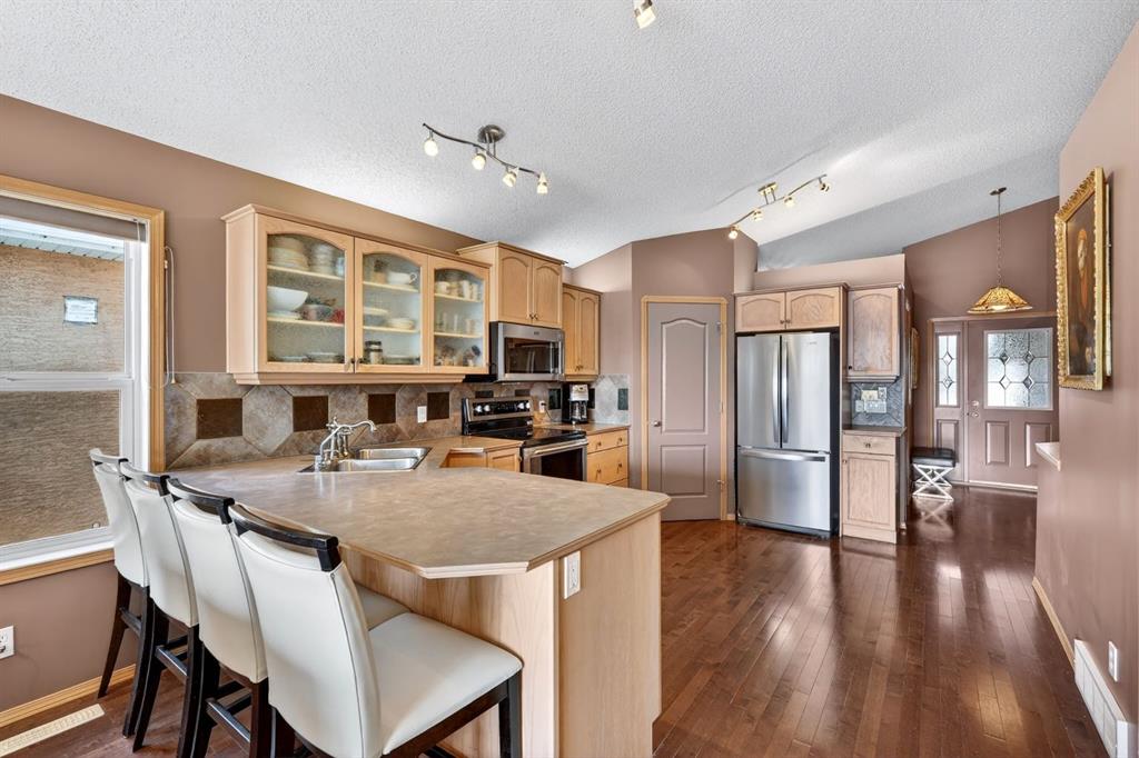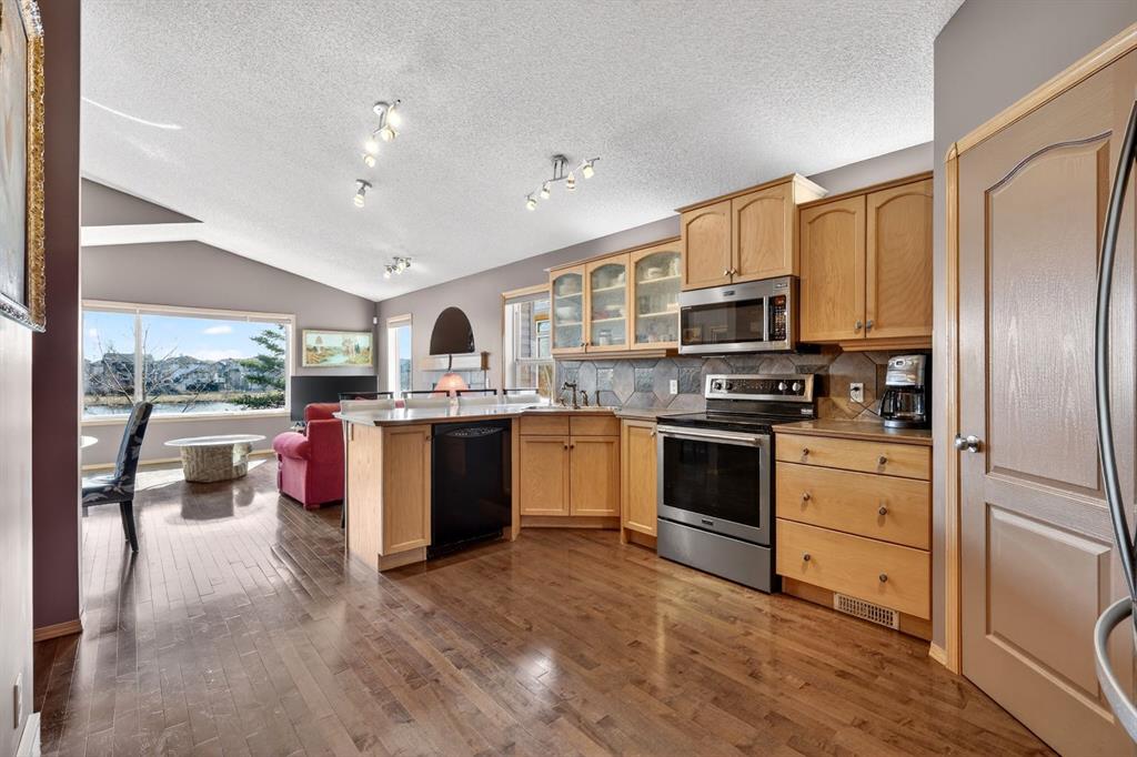 **OPEN HOUSE Sunday May 3rd 1:00pm - 4:00pm ** There are homes - and then there are places that quietly change how you feel the moment you arrive. Welcome to this beautifully maintained walkout bungalow in West Creek. Built in 2003 and set on a 5,297 sq ft lot, this west-facing home backs directly onto West Creek Pond - offering a rare blend of privacy, light, and natural beauty. Here, life slows down. Sunlight dances across the water, and the only sound you’ll notice is birdsong. Step inside and feel the openness immediately. A spacious foyer with vaulted ceilings leads into an airy, open-concept main floor finished with hardwood flooring throughout the primary living areas. The expansive living room window perfectly frames uninterrupted pond views - your backdrop, morning to night. A gas fireplace adds warmth, while the seamless flow between kitchen, dining, and living spaces makes everyday living and entertaining feel effortless. The kitchen is thoughtfully designed with ample cabinetry, generous counter space, and a walk-in pantry. Just off the living room, step onto your elevated balcony and take in the full pond view - an ideal setting for morning coffee or quiet evenings that seem to last a little longer. The main floor also features a private office with a west-facing window, a functional laundry room with added storage, and a spacious primary retreat complete with a walk-in closet and a 5-piece ensuite. A convenient half bath completes the level. Downstairs, the fully developed walkout basement offers a private entrance and additional living space, including two bedrooms, a full bathroom, and a large recreation area. Comfort is elevated year-round with in-floor hot water heating throughout the entire lower level - creating a warm, consistent atmosphere you’ll feel the moment you step downstairs. A dedicated utility room provides extra storage along with a workshop setup and built-in shelving. Outside, the backyard is designed for low maintenance with decorative stone landscaping - so your time is spent enjoying, not maintaining. An attached double car garage adds everyday practicality. Situated on a quiet street and just minutes from nearby shopping and amenities, this home offers the perfect balance of retreat and accessibility. For the buyer who’s no longer chasing noise - but choosing calm. Who values light, space, and stillness. Because sometimes, the true luxury isn’t what you add… it’s what you no longer need. A retreat, without leaving home.