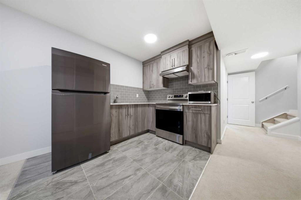 The fully developed 2-bedroom basement suite (illegal) adds significant value with its own private side entrance — a self-contained living space designed for both comfort and functionality. The suite includes a full kitchen with quality cabinetry, tile flooring, and tasteful backsplash, along with a well-finished bathroom that mirrors the upscale standards found throughout the home. With an estimated rental income of $1,200–$1,600/month, this suite is a compelling income-generating asset that meaningfully offsets carrying costs.