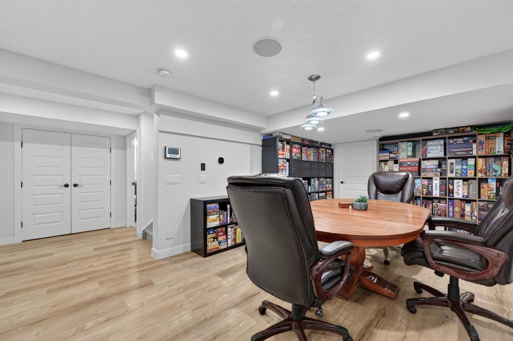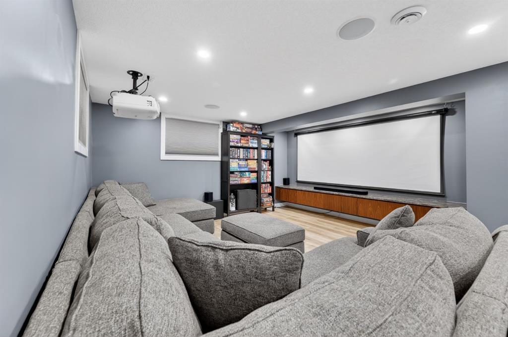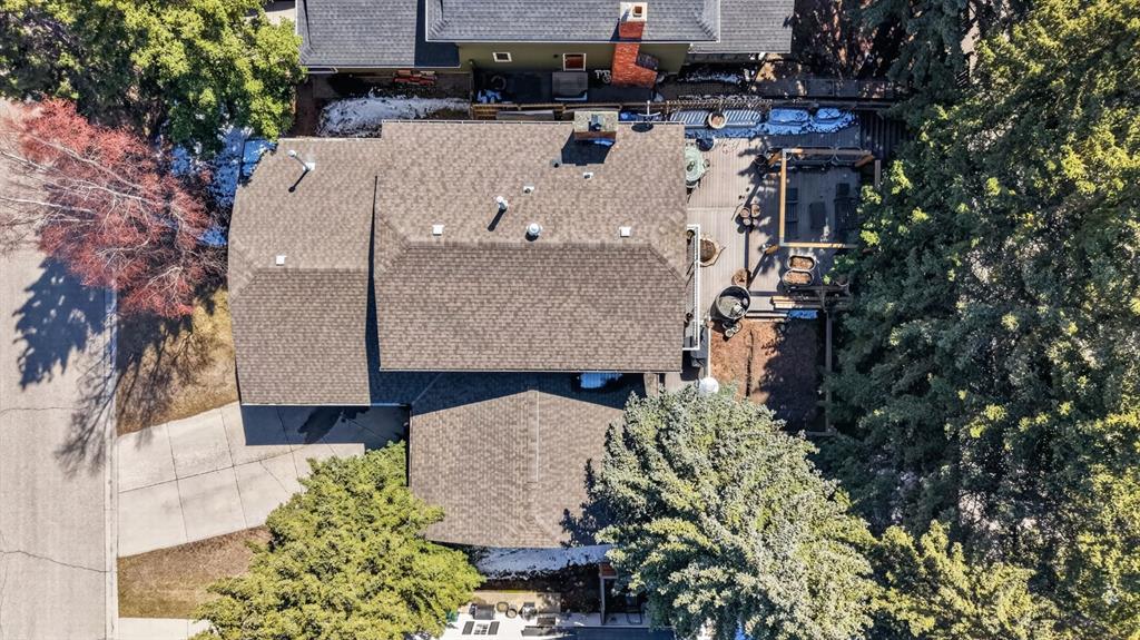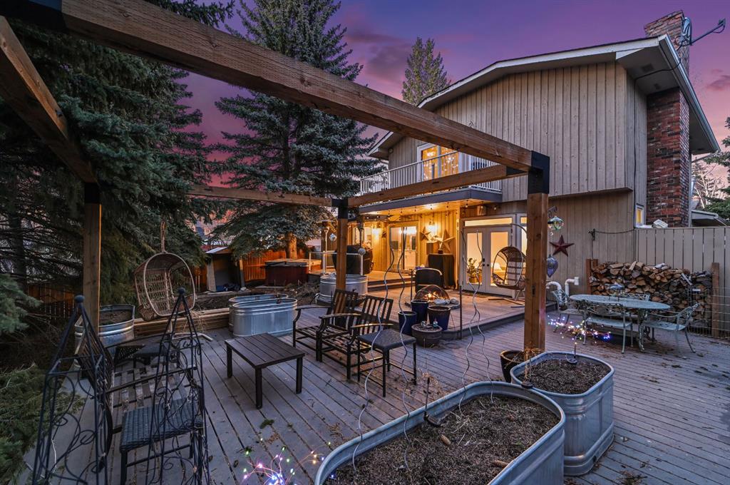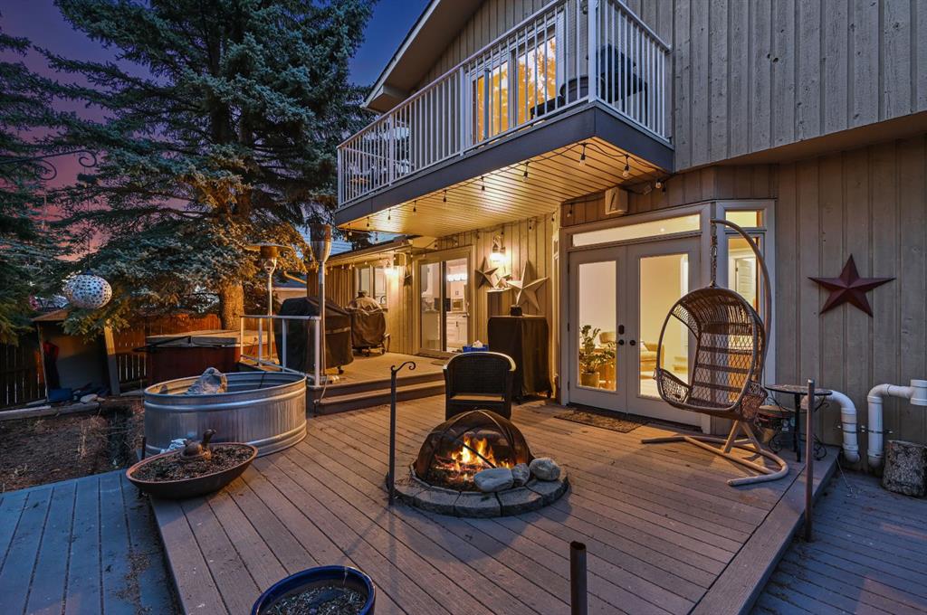 Step outside to your private west-facing backyard oasis, surrounded by mature trees. The massive tiered composite deck is built for entertaining, featuring a custom-built gas firepit and hookups for outdoor heaters perfect for enjoying Calgary’s evenings. The heated garage includes rough-in for an EV, complemented by a large driveway for ample parking.
