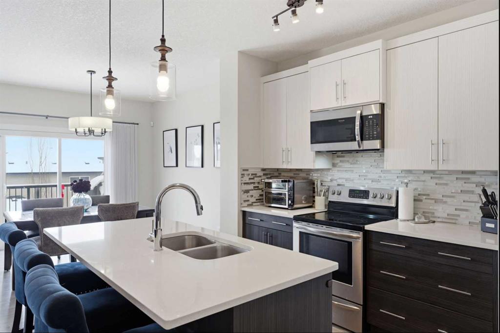 This Stunning family home in the community of Bayview in Airdrie has over 2,700 sq. ft. of fully finished living space. The fully developed basement with a walk-out has sound dampening drywall and insulated for peace and quiet and is plumbed for a kitchen with a rental possibility. Thoughtfully upgraded throughout, the home features Central Air Conditioning, an impressive kitchen with extended-height cabinetry and Silestone quartz counters, opening to a bright dining nook with access to a large rear deck. The spacious great room is anchored by a quartz-clad built-in entertainment unit, enhanced with recessed lighting for a warm, modern feel and a practical main-floor mudroom/laundry area includes a generous storage closet, to round out the main floor. Upstairs, a well-lit bonus room with vaulted ceilings and pot lights creates an inviting central space. Two large bedrooms and a 4-piece main bath occupy the front of the upper level, while the rear is dedicated to the primary suite. The primary bedroom features an expansive walk-in closet and a bright 5-piece ensuite complete with a soaker tub and separate shower. The newly developed walk-out basement adds exceptional functionality, offering the home’s fourth bathroom, a convenient office/den, and a bright recreation room with large windows and a garden door leading to a covered patio and the rear yard. With a fabulous location close to school, shops and outdoor activities, what more could you ask for in your next home.