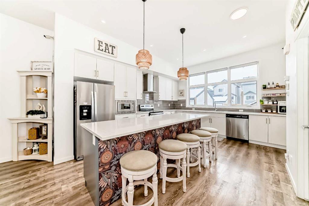 Welcome to 355 Masters Row SE, with a total living space of 2368.8 ft, a beautifully designed home in the sought-after lake community of Mahogany. This stylish and functional property offers an open-concept layout with modern finishes, as you step inside to a spacious foyer you are greeted with by a bright 9 foot ceiling living, dining flooded with natural lights coming from two large windows a spacious kitchen featuring stainless steel appliances, quarts counter tops and a large island great for family gatherings, a full height crisp white cabinetry and a good size pantry. A stylish powder room and a functional mudroom finishes the main floor. Upstairs you’ll find generously sized primary bedroom with good size walk in closet and a full bath with double vanity. Two generous bedrooms and a shared full bath are conveniently next to each other. The basement offers a unique feature as you come down the stairs you will find a mini living room dining and sink with counter tops. It also comes with its own refrigerator and washer dryer. It also offers a great size fourth bedroom and a full bathroom. Enjoy outdoor living with a fully fenced and low maintenance back yard. There are also two gravel parking spaces outside the backyard. Easy access to parks, pathways, schools, shopping, and exclusive lake amenities. Plus, a convenient bus stop is just steps away. making daily commuting a breeze. A perfect blend of comfort, convenience, and community living.