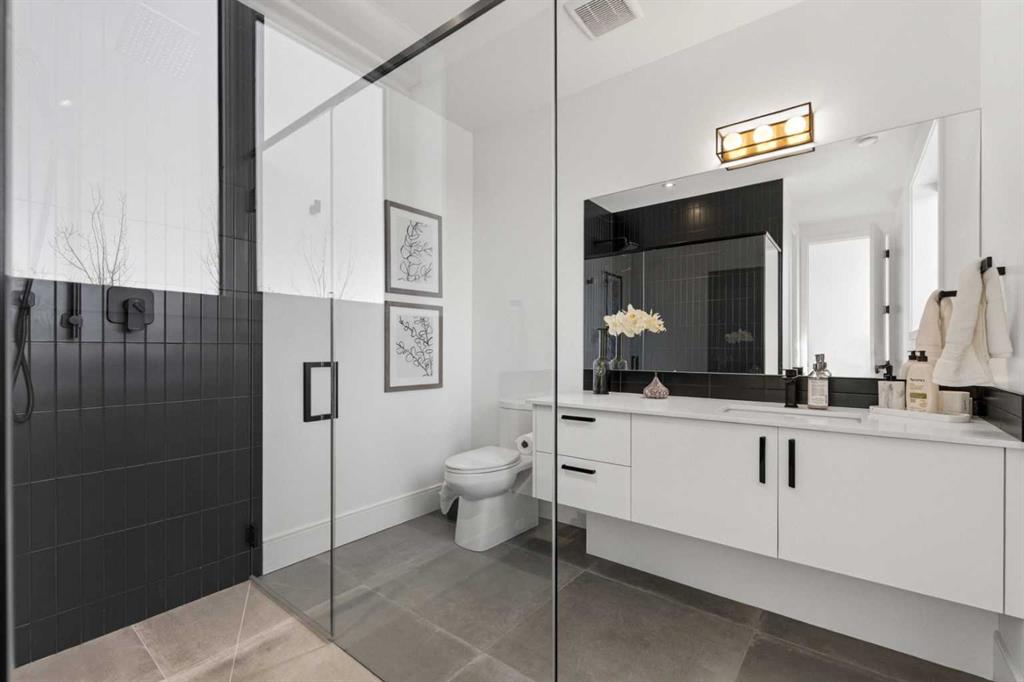 Tucked into 1.77 acres of rolling hills and mature trees in the estate community of Silverhorn, 105 Silverhorn Ridge quietly redefines the acreage category. Built by award-winning West Ridge Fine Homes, this two-storey walkout offers nearly 7,000 SF across three levels — architectural, warm, and connected to nature. The main floor opens to 14' ceilings in the great room, where three elevations of floor-to-ceiling windows in a post-and-beam grid frame the landscape and pour in S/SW light. A linear gas fireplace with metal-paneled facade and stacked ledgestone columns anchors the room. The kitchen is purpose-built for entertaining: a full Miele package with eight-burner dual-oven gas range, paneled built-in fridge and freezer, and dishwasher; black leathered stone counters with waterfall-edge island; full-height marbled stone backsplash; and integrated pantry. The butler's pantry adds a Miele coffee machine, combi-steam oven, and 100+ bottle wine fridge. The dining room sits in a glass enclosure that feels like eating among the trees; the breakfast nook is built for unhurried mornings. Three decks extend the main floor outdoors: a covered patio with BBQ hookup, a pergola sundeck with S/SW exposure, and a central sunrise deck off the nook, foyer, and primary suite. The main-floor primary retreat features a custom built-in bed frame and floor-to-ceiling headboard with tufted velvet, custom millwork, antiqued mirror panels, integrated pendants, and hidden motorized footboard TV. A glass wall delivers light from two elevations with direct deck access. The spa ensuite offers in-floor heat, freestanding soaker tub, floating dual vanity, dedicated makeup vanity, oversized curbless shower with black-framed tinted glass and five-function system, and separate water closet. The walk-in connects to the laundry. An open-riser staircase wrapped in windows leads upstairs to two bedrooms with walk-ins and private ensuites, plus a bright executive office with tinted glass feature wall. The walkout lower level is built for entertaining. Radiant in-floor heat runs throughout. A three-sided gas fireplace with shelving separates the conversation area from a striking wet bar in Japanese charred wood cladding with stainless kegerator, wine fridge, and dishwasher. The space steps down through a games area into a sunken theatre with quartz projection screen, ceiling-mounted projector, and surround sound. Two more bedrooms with private ensuites and walk-ins, a spa bath with steam shower, a gym, and a wine cellar that steals the show round out the level. The heated, epoxy-floored triple-door garage fits up to five cars (or three plus workshop), with ceiling height for a lift. Additional features: metal frame structure, natural stone accents, smart home automation, automated roller shades, irrigation, exterior lighting, stamped concrete driveway, frameless tempered glass railings, speaker zones, and STEP septic. Book a showing to experience 105 Silverhorn Ridge — and Silverhorn itself.