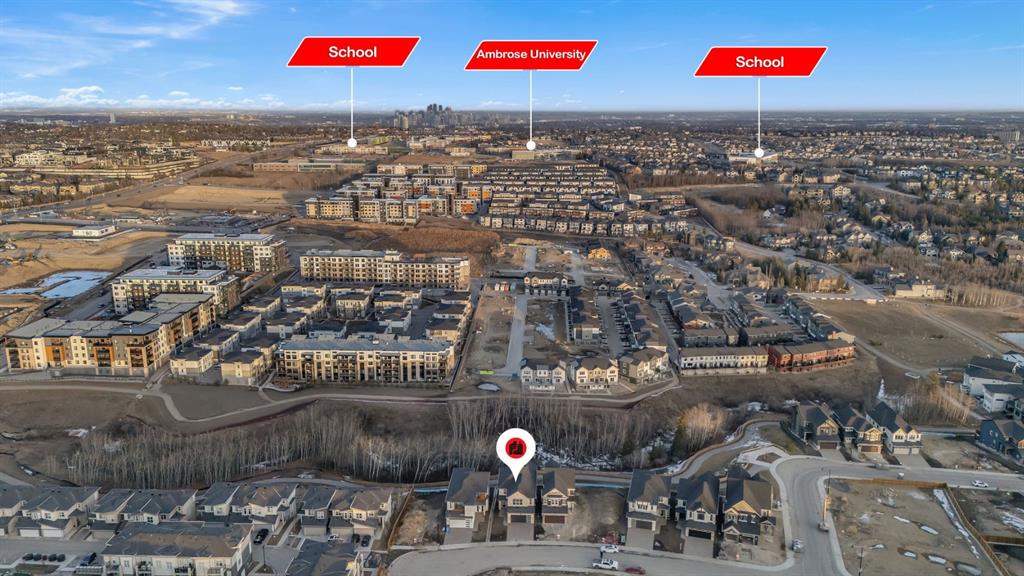 Welcome to 28 Spring Creek Point SW a true statement home in prestigious Springbank Hill, offering luxury living on a rare pond-front lot in Calgary. With over $200,000 in upgrades, this masterpiece was built for those who appreciate quality, design, and presence. From the moment you arrive, the striking Farmhouse exterior makes an impression, blending acrylic stucco and stone for timeless curb appeal. Inside, the home is centered around a showstopping Super Kitchen a space designed to host, gather, and impress featuring an oversized island with a dramatic 3CM waterfall granite edge, thick quartz counters, a professional 30" gas cooktop, and integrated wall oven. The main level also offers a private office, perfect for working from home, a stylish powder room, and a warm, inviting living room anchored by a grand 74" electric fireplace. Step outside to the expansive deck with a built-in BBQ gas line, ideal for entertaining while overlooking the pond. Upstairs, the primary retreat delivers a true spa experience, complete with a Maax Jazz freestanding tub and a curbless tiled shower with sleek 10MM glass. A versatile loft adds additional living space for relaxation or creativity. The fully developed walk-out basement features 9-foot ceilings, a spacious recreation area, custom wet bar, additional bedroom, and a modern bathroom all opening to your private outdoor setting. Designed for comfort and long-term performance, the home includes Black Fusion windows, 8-foot interior doors, upgraded HVAC with A/C, EV charger rough-in, and a 200-amp electrical service. This is a home where upgrades, design, and location come together seamlessly offering a level of finish and lifestyle rarely available. Book your private showing and experience it for yourself.