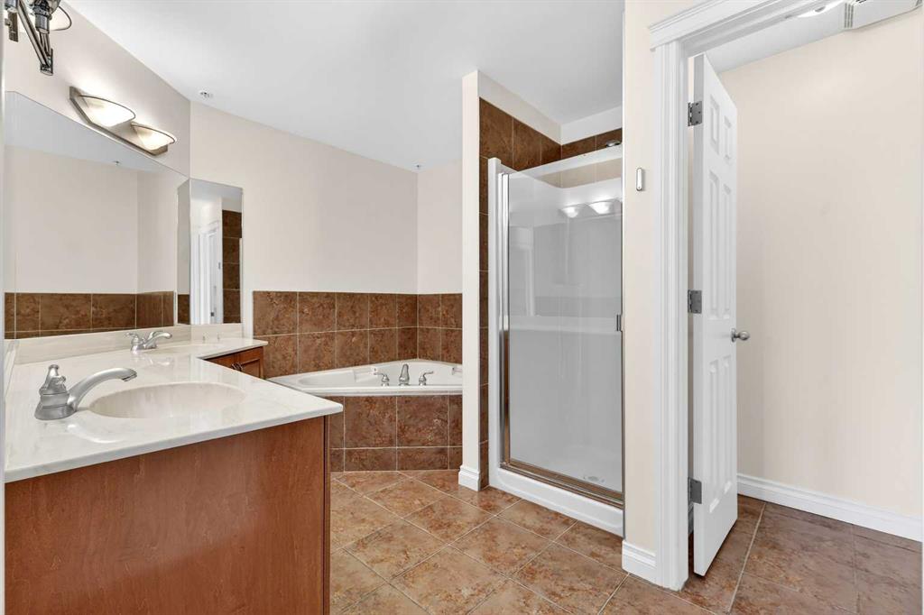 The oversized primary bedroom is a true retreat, featuring a large walk-in closet and an elegant 5-piece ensuite with dual sinks, a soaker tub, and a separate shower. Additional highlights include in-suite laundry, a spacious storage room with built-in cabinets, and a split ductless air conditioning unit—all included in the sale.