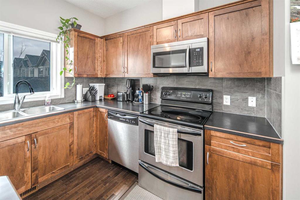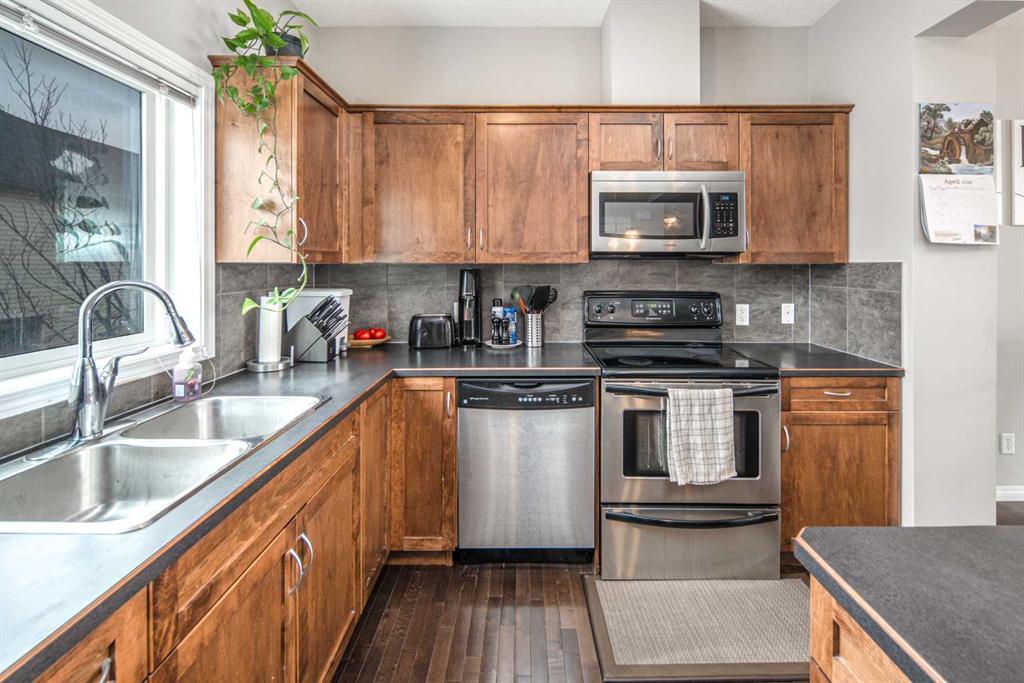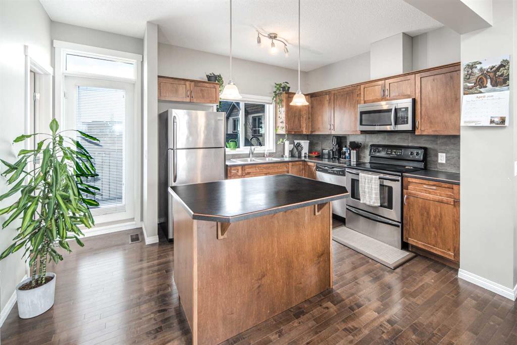 Welcome to this beautifully maintained townhouse in the highly sought-after community of Kincora. Tucked away in a quiet location, this bright and inviting home features a south-facing patio, two spacious balconies, and large south-facing windows that flood the home with natural sunlight throughout the winter months. With 3 bedrooms and 2.5 bathrooms, this home is the perfect fit for a first-time buyer, young couple, or growing family. The fully finished open-concept main floor showcases 9’ ceilings, rich maple hardwood floors, and a spacious kitchen complete with a large centre island that offers extra counter space and functionality—perfect for everyday living and entertaining. The kitchen, dining, and living areas flow seamlessly to create a warm and welcoming atmosphere. Enjoy the comfort of a double attached garage and the convenience of easy access to Stoney Trail and Deerfoot Trail, making commuting simple and efficient. With low condo fees, a well-managed complex, and a stress-free lifestyle, this home is an excellent opportunity for homeowners and investors alike. Pet-friendly (up to 1 cat & 1 dog, or 2 cats), your furry family members are welcome too. Surrounded by Kincora’s scenic walking paths, green spaces, and nearby shopping and dining, this home offers the perfect balance of privacy, comfort, and convenience. Don’t miss your chance to own in one of NW Calgary’s most desirable communities!