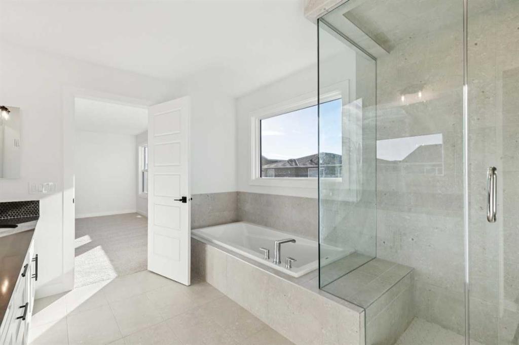 This beautifully upgraded family home offers style, space, and functionality. Built by a trusted builder with over 70 years of experience, this home showcases on-trend, designer-curated interior selections tailored for a home that feels personalized to you. Energy efficient and smart home features, plus moving concierge This home features a 3-car garage, main floor bedroom with full bath, and a side entrance for added flexibility. The executive kitchen shines with built-in stainless steel appliances, gas cooktop, chimney hoodfan, and a separate spice kitchen with gas range and French door. A walk-through pantry with wood shelving adds smart storage. Enjoy the warmth of the electric fireplace, vaulted ceiling in the bonus room, and extra windows for natural light. The luxurious 5-piece ensuite includes a soaker tub and a stunning walk-in tiled shower with dual glass walls. All bathrooms feature elegant tile flooring, and the upper main bath offers dual sinks—perfect for busy mornings. itches—all seamlessly controlled via an Amazon Alexa touchscreen hub. Some photos are representative. This energy-efficient home is Built Green certified and includes triple-pane windows, a high-efficiency furnace, and a solar chase for a solar-ready setup. With blower door testing, plus an electric car charger rough-in, it’s designed for sustainable, future-forward living. Featuring a full range of smart home technology, this home includes a programmable thermostat, ring camera doorbell, smart front door lock, smart and motion-activated switches—all seamlessly controlled via an Amazon Alexa touchscreen hub.