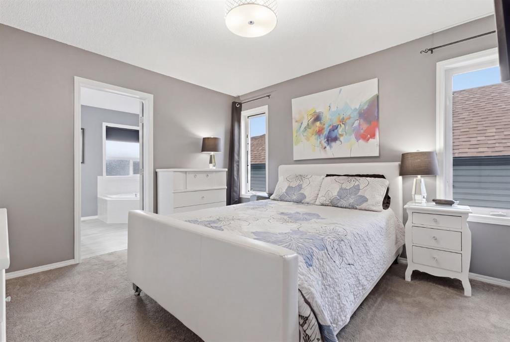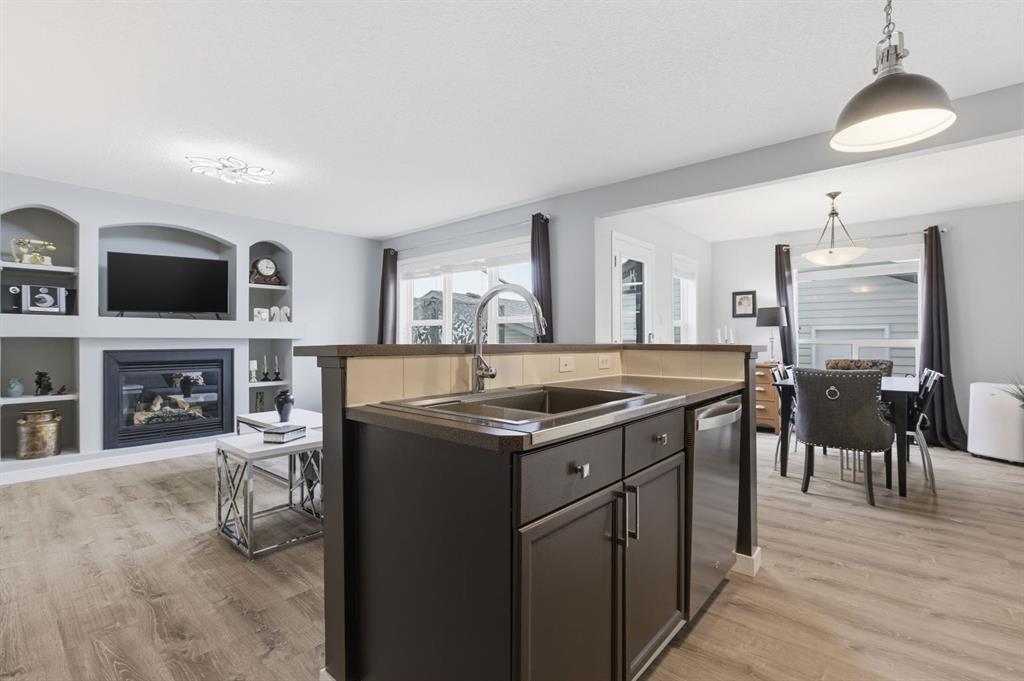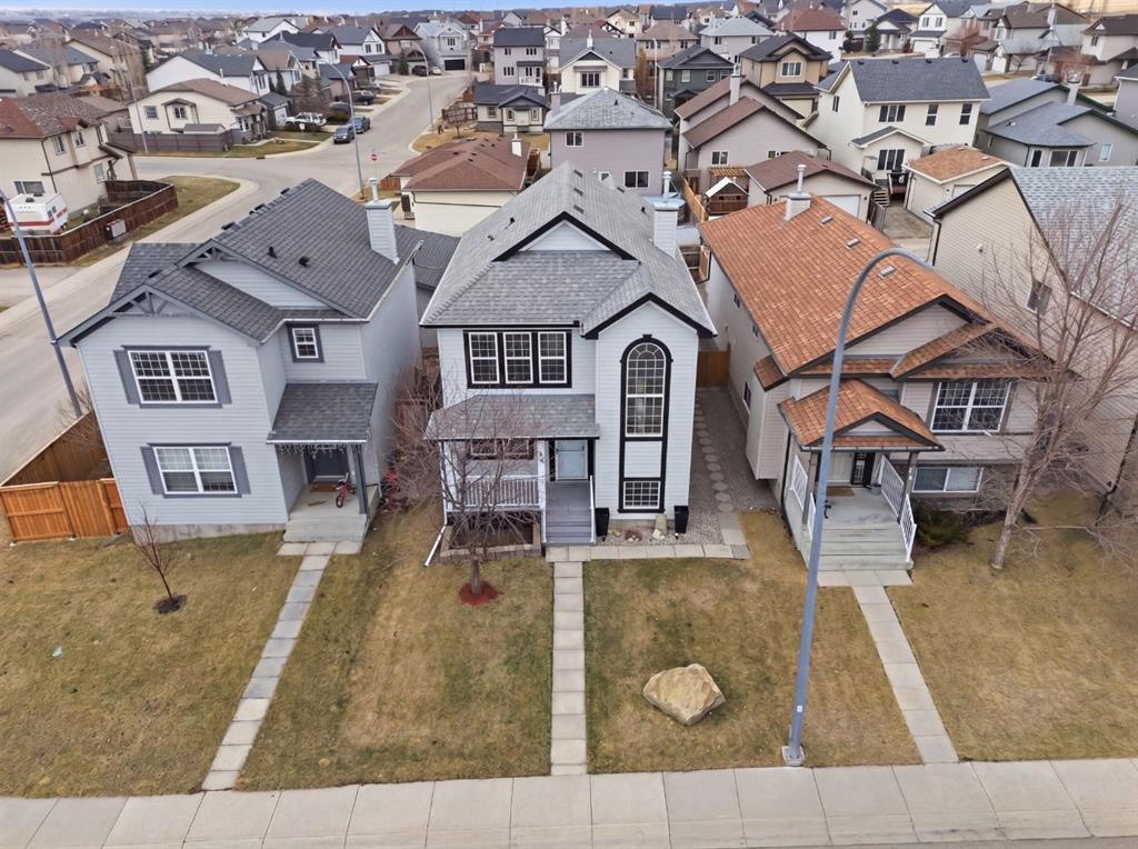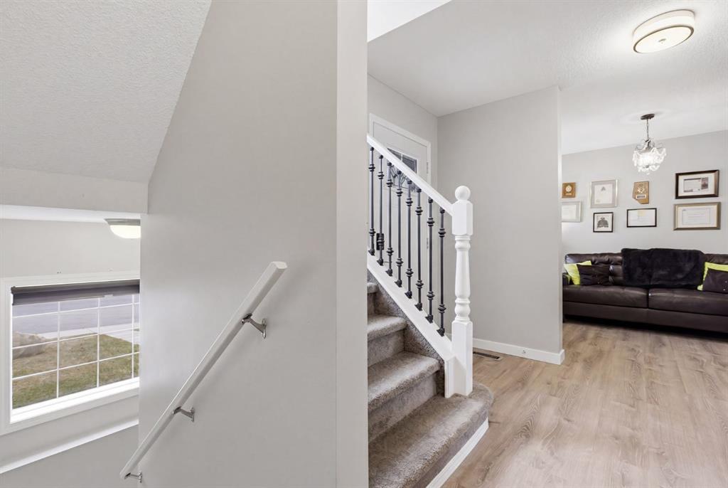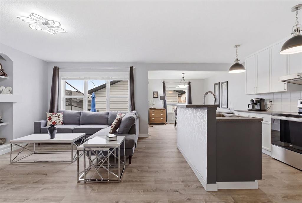 Live in the family friendly community of Cimarron. This cleverly laid out home is situated on a quiet street. As you approach you will appreciate the attractive curb appeal and inviting front porch. Throughout the home, pride of ownership is clear, with plenty of updates such as new vinyl plank flooring, new carpet, a new front door, stylish light fixtures, and an elegant railing. The kitchen is a focal point, boasting cabinets that reach to the ceiling, a tasteful tile backsplash, stainless-steel appliances, and a corner pantry for added storage. The large island seamlessly connects to the expansive living room, which features a gas fireplace with custom built in detail. Adjacent to the kitchen, the dining room is filled with natural light from numerous windows and provides direct access to your private backyard. This low maintenance yard has a large patio, artificial grass, a new fence and a double detached garage. The main floor is complete with a powder room tucked away as well as a front den, perfect for a home office, additional living room or kids’ playroom. Upstairs, you’ll find two generously sized bedrooms, a full 4-piece bathroom, and an expansive primary retreat. The primary suite is a true sanctuary, offering a large walk-in closet and a private ensuite with a luxurious jetted corner tub, separate shower and expansive vanity. The lower level is framed and prepped for easy future development. This home is ideally located within walking distance to schools, parks, pathways, shopping, and professional services. Schedule your private showing or view the virtual tour today.