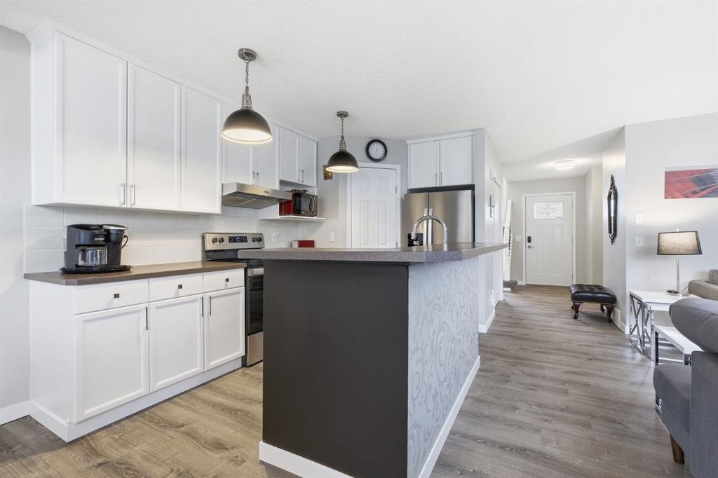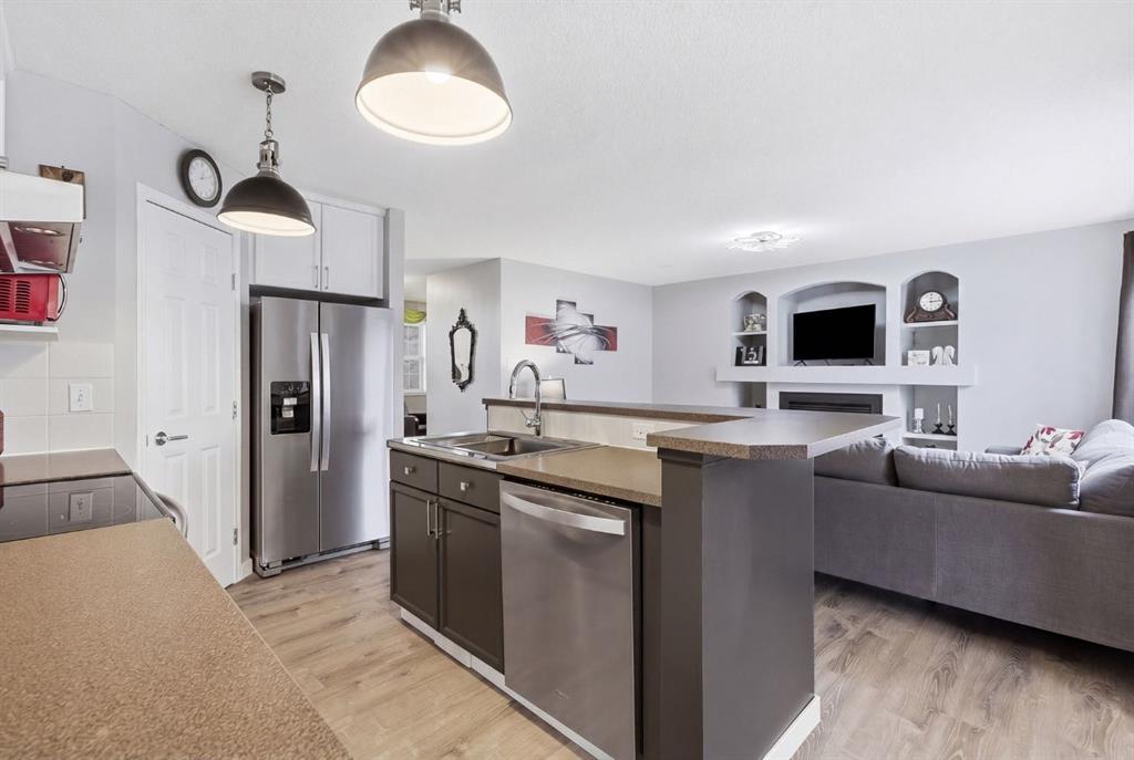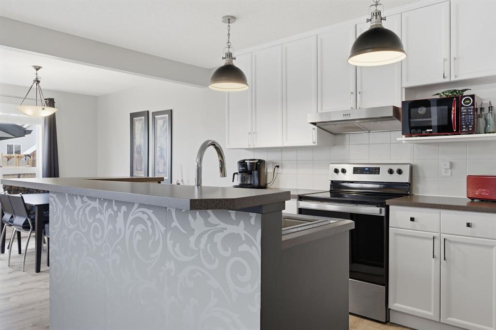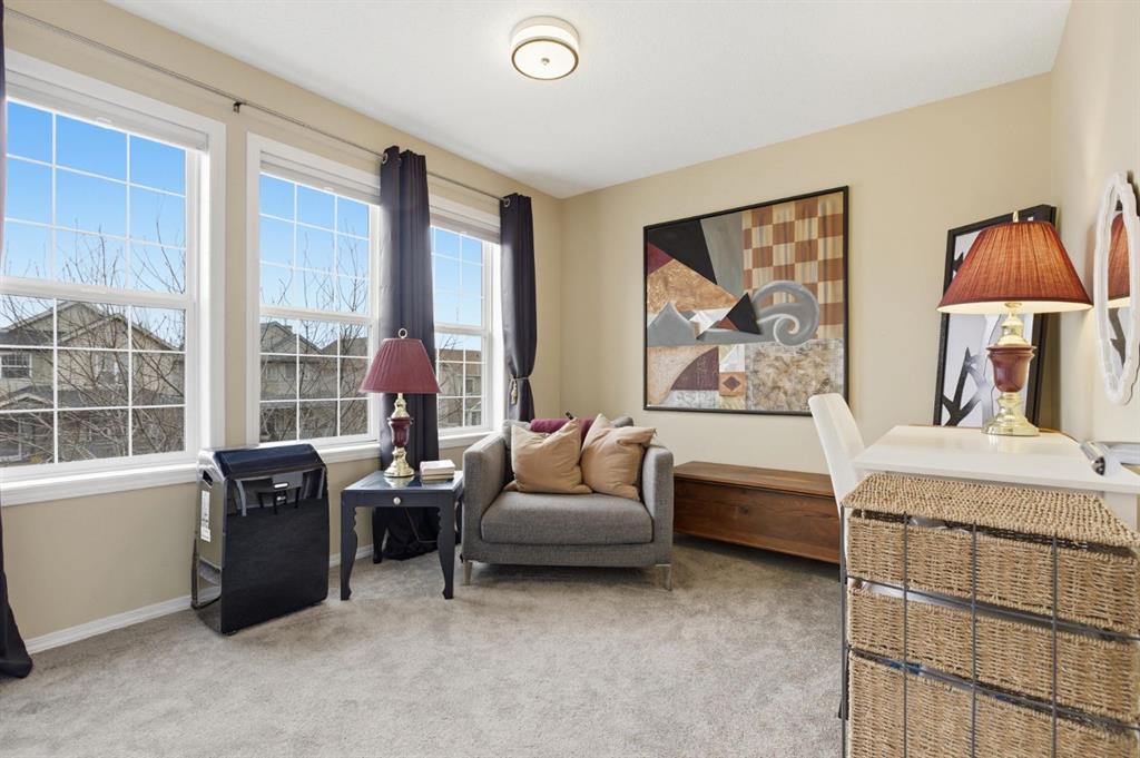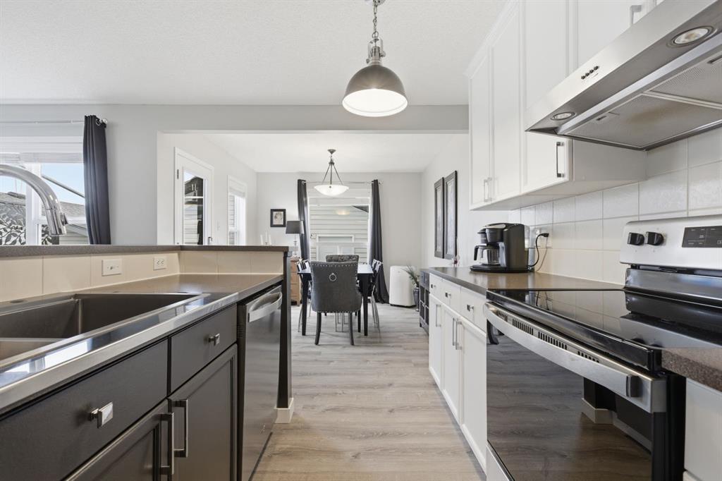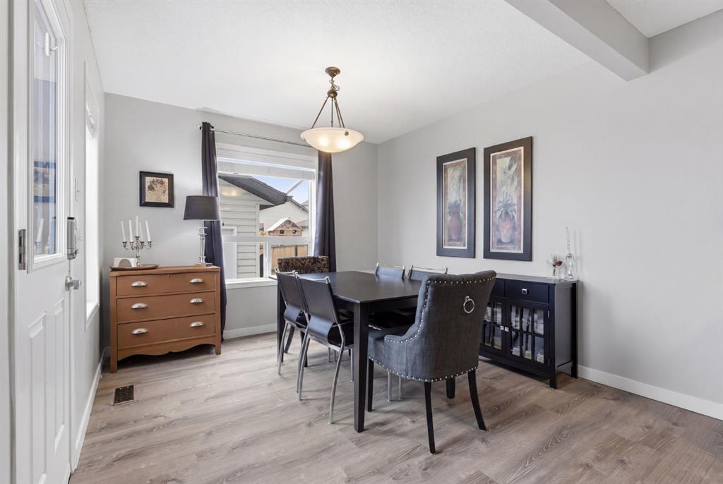 Live in the family friendly community of Cimarron. This cleverly laid out home is situated on a quiet street. As you approach you will appreciate the attractive curb appeal and inviting front porch. Throughout the home, pride of ownership is clear, with plenty of updates such as new vinyl plank flooring, new carpet, a new front door, stylish light fixtures, and an elegant railing. The kitchen is a focal point, boasting cabinets that reach to the ceiling, a tasteful tile backsplash, stainless-steel appliances, and a corner pantry for added storage. The large island seamlessly connects to the expansive living room, which features a gas fireplace with custom built in detail. Adjacent to the kitchen, the dining room is filled with natural light from numerous windows and provides direct access to your private backyard. This low maintenance yard has a large patio, artificial grass, a new fence and a double detached garage. The main floor is complete with a powder room tucked away as well as a front den, perfect for a home office, additional living room or kids’ playroom. Upstairs, you’ll find two generously sized bedrooms, a full 4-piece bathroom, and an expansive primary retreat. The primary suite is a true sanctuary, offering a large walk-in closet and a private ensuite with a luxurious jetted corner tub, separate shower and expansive vanity. The lower level is framed and prepped for easy future development. This home is ideally located within walking distance to schools, parks, pathways, shopping, and professional services. Schedule your private showing or view the virtual tour today.