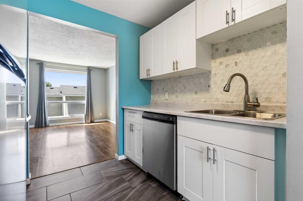 The main level features a bright and spacious living area with large windows that bring in plenty of natural light, along with durable flooring that flows throughout. The updated kitchen includes modern cabinetry, stainless steel appliances, and a clean, contemporary backsplash, with an adjacent dining space that works well for everyday living.
