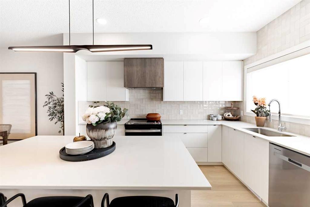 Tentative Late May / Early June Possession - Welcome to the Cascade, a thoughtfully designed duplex built by Shane Homes in the NW community of Esker Park. Currently under construction, this home features 3 bedrooms and 2.5 bathrooms with a functional layout designed for modern living. The open-concept main floor includes a spacious kitchen with a walk-in pantry and central island, flowing into the dining and living areas, ideal for everyday use and entertaining. A side entry and basement rough-ins provide flexibility for potential future development. Upstairs offers three well-sized bedrooms, a primary bedroom with walk-in closet and full ensuite, convenient upper-floor laundry, and a flex room that adds valuable additional living space. Photos are representative and are for illustrative purposes only.