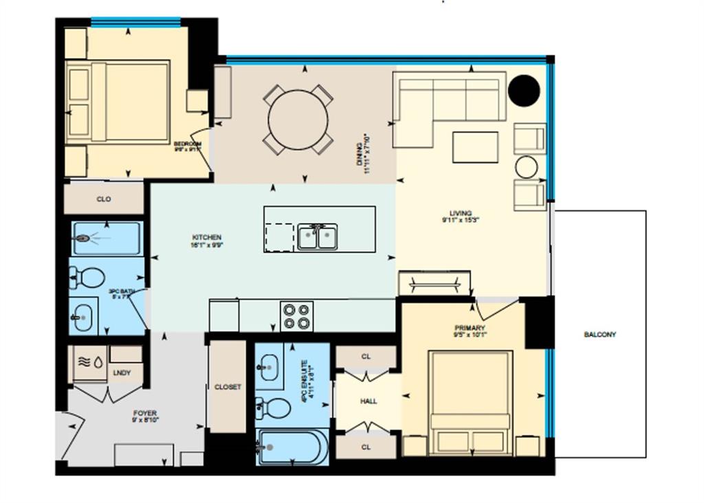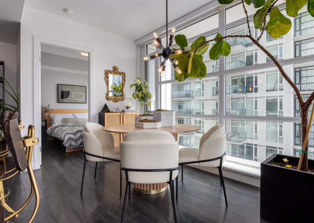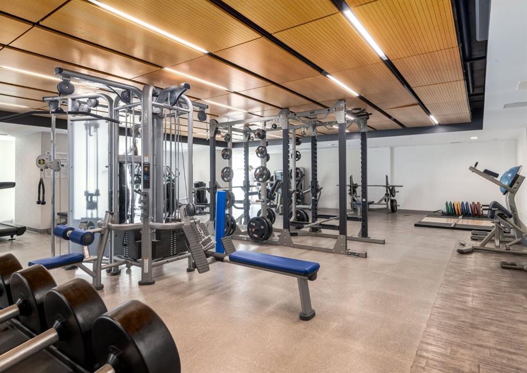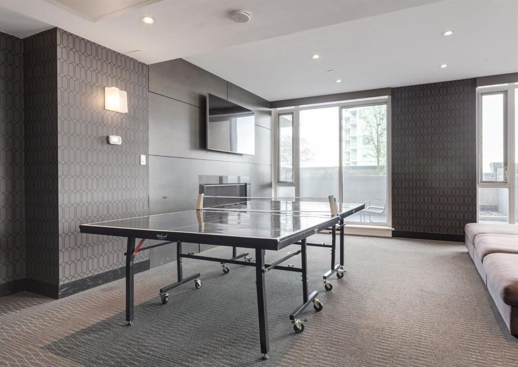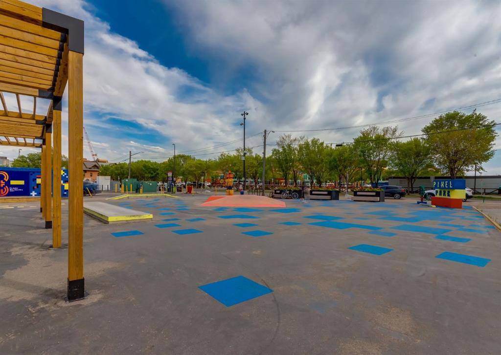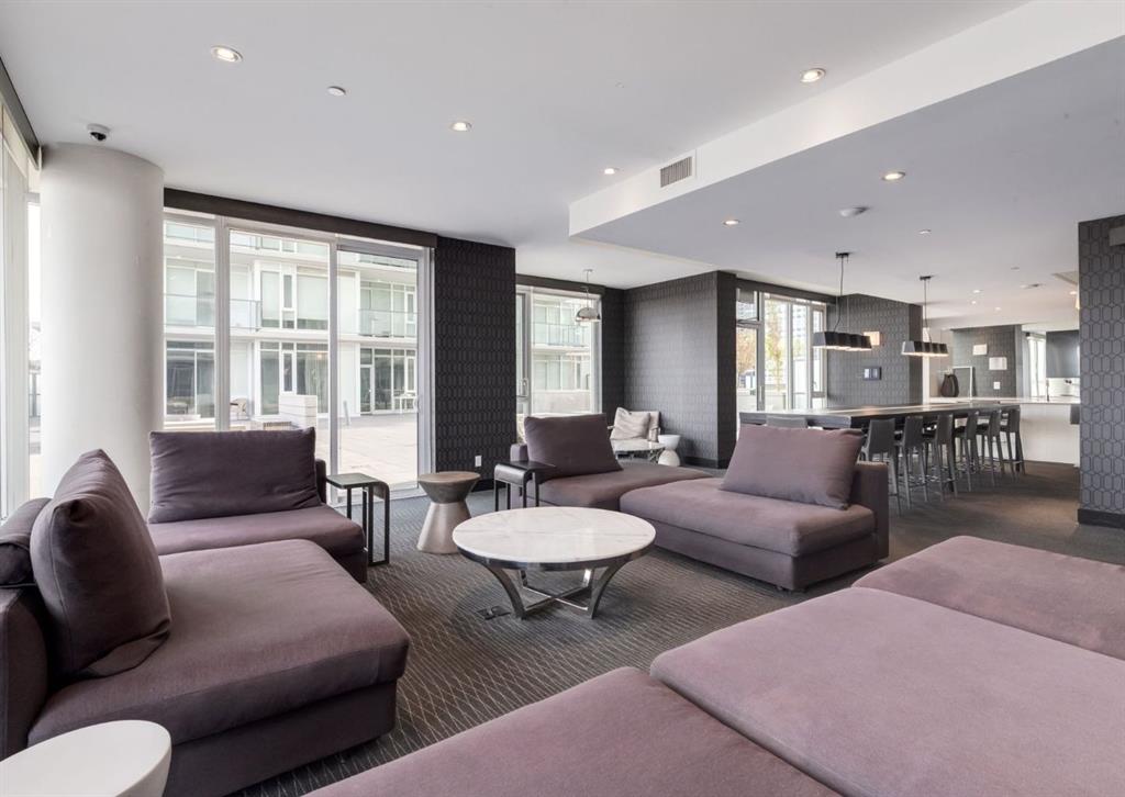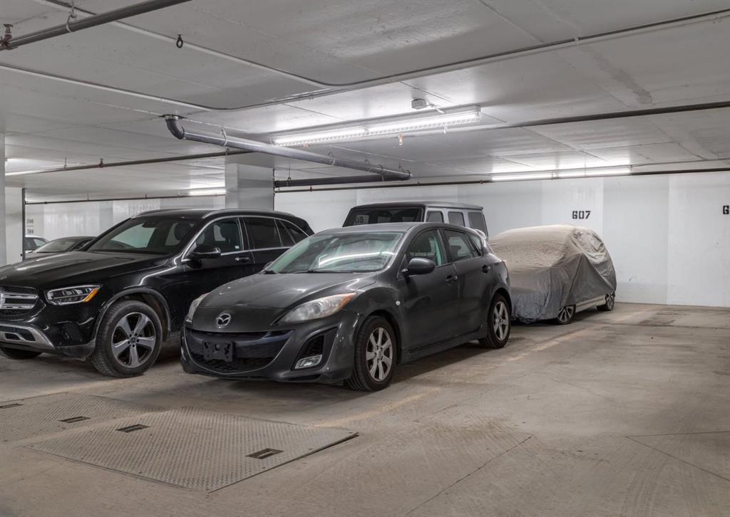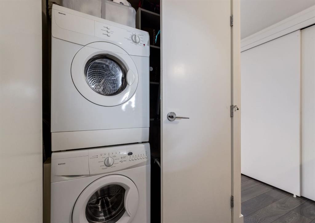 SW CORNER UNIT with MOUNTAIN VIEWS + CITY VIEWS + TANDEM PARKING! This bright and welcoming open-concept home is filled with natural light and offers 2 bedrooms, 2 full bathrooms, tandem titled parking for two vehicles, and a large balcony with breathtaking views you’ll enjoy every day. The modern kitchen features sleek cabinetry, stainless steel appliances including panelled refrigeration, quartz countertops, and plenty of storage. The primary bedroom easily fits a king-size bed and includes a walk-through closet with custom built-ins leading to a contemporary ensuite. The second bedroom is conveniently located next to a full 3-piece bathroom—perfect for guests, roommates, or a home office. Enjoy the perks of this executive concrete building, which offers concierge service, a fitness centre, party room, rooftop terrace, workshop, air conditioning, high-speed elevators, visitor parking, and a separate assigned storage locker. Impeccably maintained by its original owners, this move-in-ready home is also pet friendly (with board approval) and ideally located—just steps from Pixel Park, river pathways, the LRT, Stampede Grounds, Central Library, restaurants, cafes, shops, and groceries. Floor plans and a 3D tour are readily available, providing a glimpse into this stylish condo!