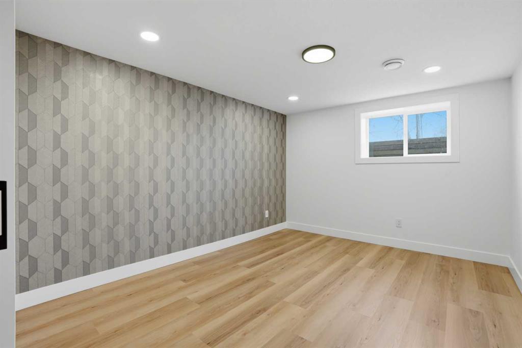 The fully developed basement expands your living space with a massive recreation area featuring a stylish accent wall, perfect for entertaining. A wet bar adds both function and flair, while two additional bedrooms provide versatility — one with a walk-in closet and the other with built-in shelving, ideal for guests or extended family.