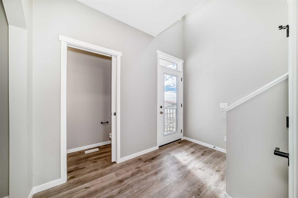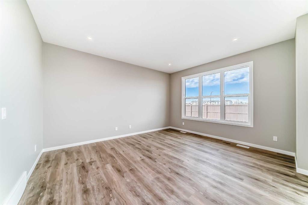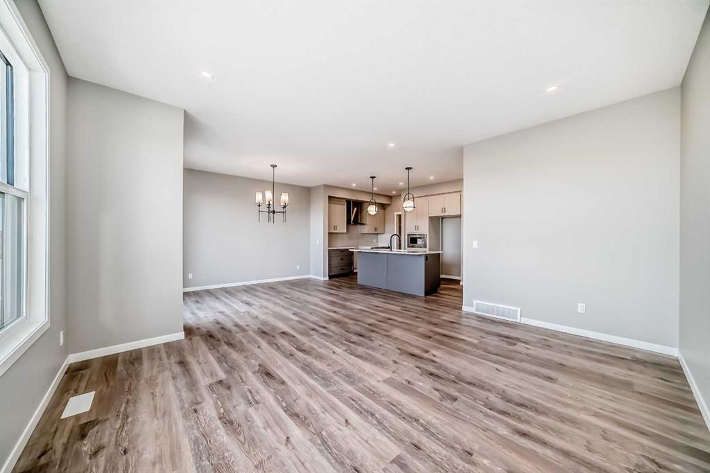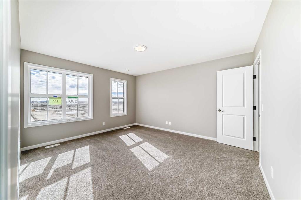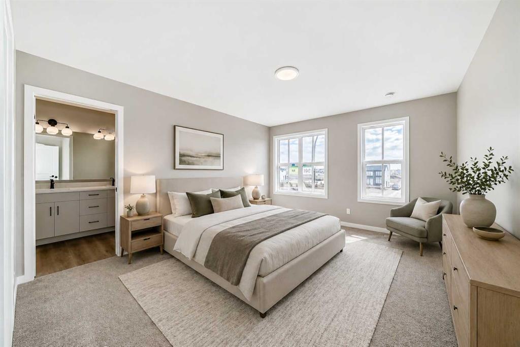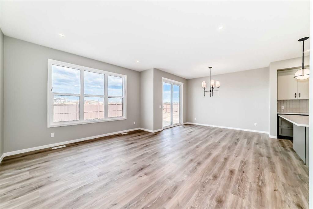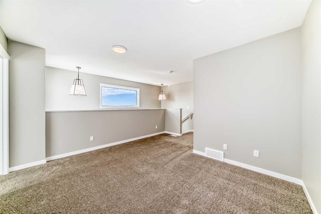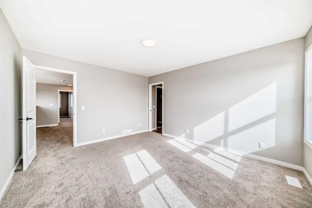 Introducing the Carisa 2 by Hopewell Residential, a beautifully designed home that blends modern style, everyday function, and thoughtful future-ready features in one of southeast Calgary’s most exciting new communities. Located on a quiet street in Rangeview, this home sits on a large lot with a west-facing backyard, giving you the perfect setting for sunny afternoons, evening BBQs, and relaxed outdoor living. An exterior gas line is already in place for your future BBQ setup. Inside, the main floor feels bright, open, and intentionally designed, with durable vinyl plank flooring flowing throughout for a clean, cohesive look. The open-concept layout connects the kitchen, dining area, and extended lifestyle room with ease, creating a space that works beautifully for both everyday living and entertaining. A charming arch detail leads into the front flex room, adding character and giving you a versatile space that can function as a home office, reading room, kids’ play area, or homework zone. The upgraded kitchen is a standout, offering a stylish two-tone cabinet design with grey lowers and white uppers, matte black hardware throughout, quartz countertops, upgraded pendant lights above the island, a built-in microwave, stand-alone hood fan, and a classic white square tile backsplash. A gas line rough-in has also been added for a future gas stove, giving the kitchen even more long-term flexibility. Upstairs, the home continues to deliver with a versatile entertainment room enhanced by an added stairwell window, bringing in even more natural light. The centrally located laundry room adds convenience, while the spacious primary suite offers a large walk-in closet and a polished 4-piece ensuite featuring dual sinks, a stand-alone shower, white cabinetry, white quartz counters, and a white backsplash for a bright, clean finish. Two additional bedrooms complete the upper level, offering great flexibility for family, guests, or additional workspace. This home also includes a 9-foot foundation and a separate side entrance, opening the door to future development or potential suite possibilities (A secondary suite would be subject to approval and permitting by the city/municipality). Located in Calgary’s desirable southeast, Rangeview is more than just a neighbourhood, it’s a community built around connection, sustainability, and a shared love of food and nature. Inspired by Alberta’s rich agricultural heritage, Rangeview is Calgary’s first garden to table community, designed with community gardens, orchards, pathways, green spaces, and future gathering areas that encourage neighbours to connect. Market Square and Harvest Hall are planned to become central hubs for farmers’ markets, local food events, and community programming. You’re also just minutes from the amenities of Seton and Mahogany, including the world’s largest YMCA, South Health Campus, schools, shops, restaurants, and everyday services.