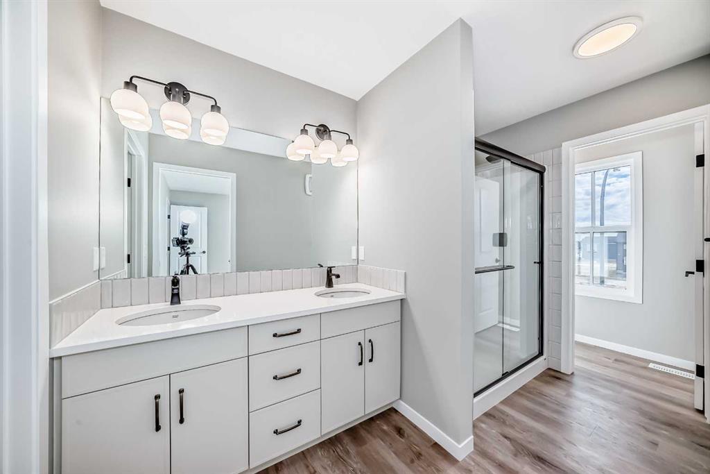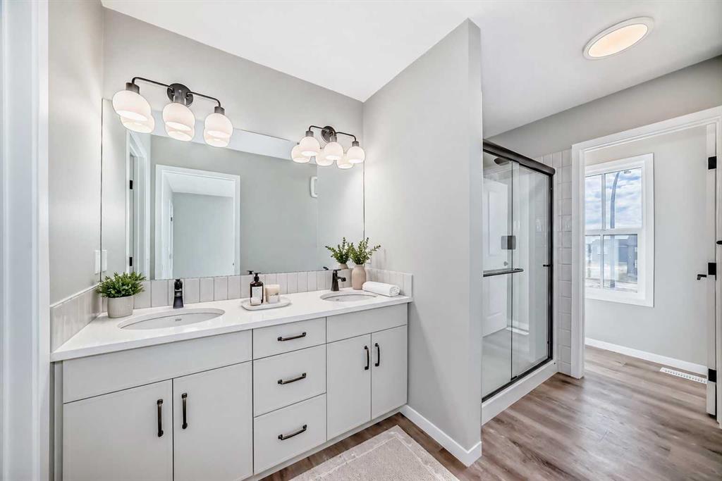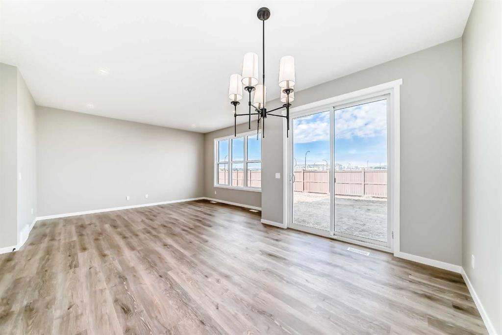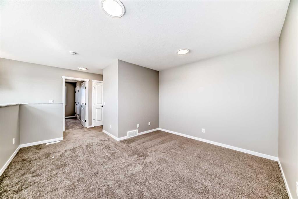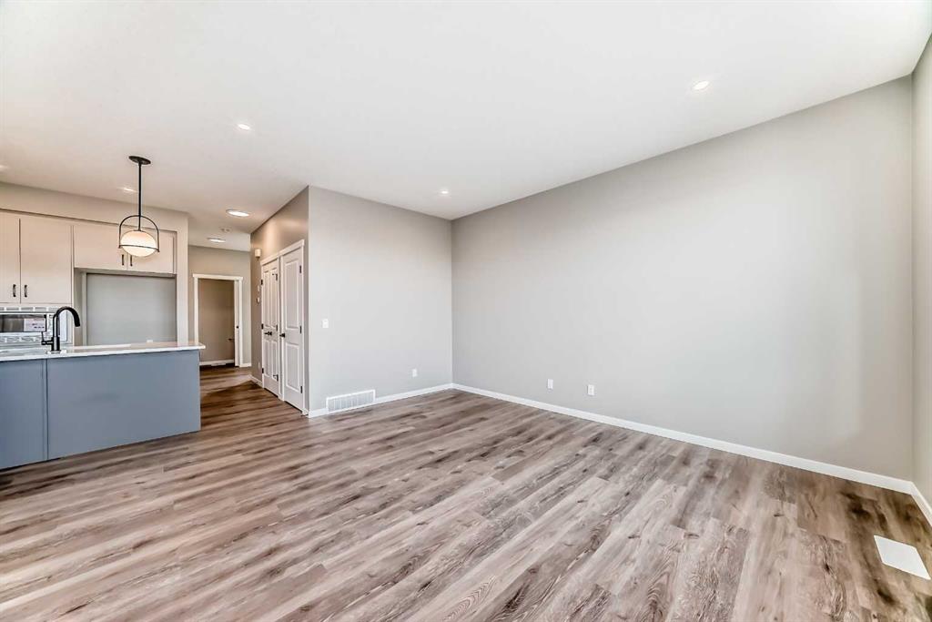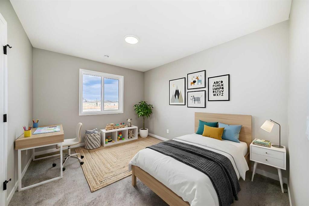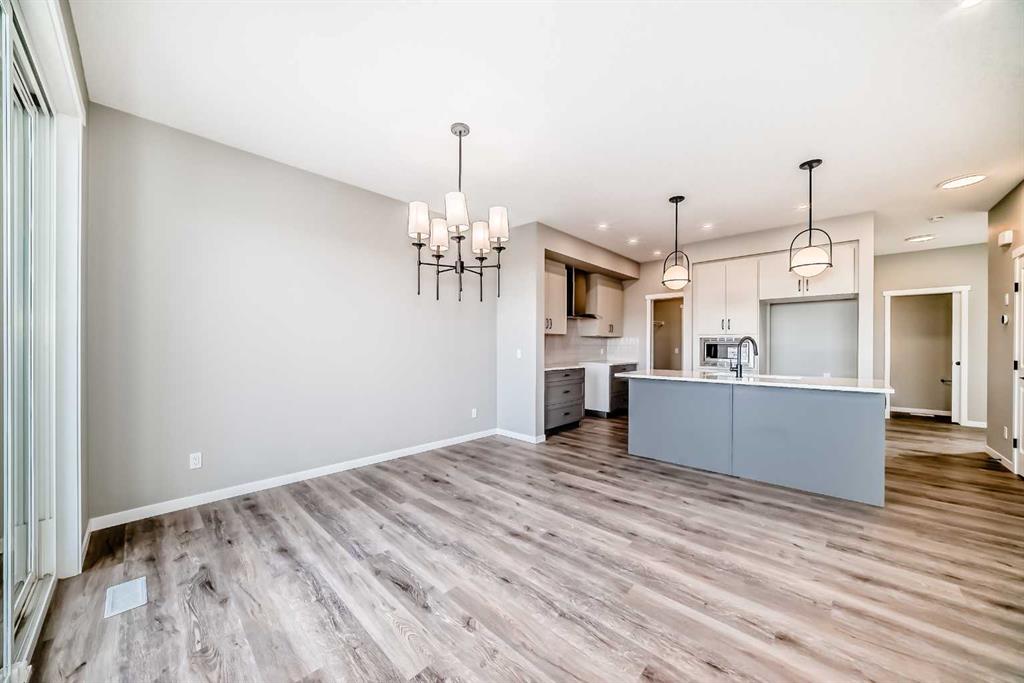 Introducing the Carisa 2 by Hopewell Residential, a beautifully designed home that blends modern style, everyday function, and thoughtful future-ready features in one of southeast Calgary’s most exciting new communities. Located on a quiet street in Rangeview, this home sits on a large lot with a west-facing backyard, giving you the perfect setting for sunny afternoons, evening BBQs, and relaxed outdoor living. An exterior gas line is already in place for your future BBQ setup. Inside, the main floor feels bright, open, and intentionally designed, with durable vinyl plank flooring flowing throughout for a clean, cohesive look. The open-concept layout connects the kitchen, dining area, and extended lifestyle room with ease, creating a space that works beautifully for both everyday living and entertaining. A charming arch detail leads into the front flex room, adding character and giving you a versatile space that can function as a home office, reading room, kids’ play area, or homework zone. The upgraded kitchen is a standout, offering a stylish two-tone cabinet design with grey lowers and white uppers, matte black hardware throughout, quartz countertops, upgraded pendant lights above the island, a built-in microwave, stand-alone hood fan, and a classic white square tile backsplash. A gas line rough-in has also been added for a future gas stove, giving the kitchen even more long-term flexibility. Upstairs, the home continues to deliver with a versatile entertainment room enhanced by an added stairwell window, bringing in even more natural light. The centrally located laundry room adds convenience, while the spacious primary suite offers a large walk-in closet and a polished 4-piece ensuite featuring dual sinks, a stand-alone shower, white cabinetry, white quartz counters, and a white backsplash for a bright, clean finish. Two additional bedrooms complete the upper level, offering great flexibility for family, guests, or additional workspace. This home also includes a 9-foot foundation and a separate side entrance, opening the door to future development or potential suite possibilities (A secondary suite would be subject to approval and permitting by the city/municipality). Located in Calgary’s desirable southeast, Rangeview is more than just a neighbourhood, it’s a community built around connection, sustainability, and a shared love of food and nature. Inspired by Alberta’s rich agricultural heritage, Rangeview is Calgary’s first garden to table community, designed with community gardens, orchards, pathways, green spaces, and future gathering areas that encourage neighbours to connect. Market Square and Harvest Hall are planned to become central hubs for farmers’ markets, local food events, and community programming. You’re also just minutes from the amenities of Seton and Mahogany, including the world’s largest YMCA, South Health Campus, schools, shops, restaurants, and everyday services.