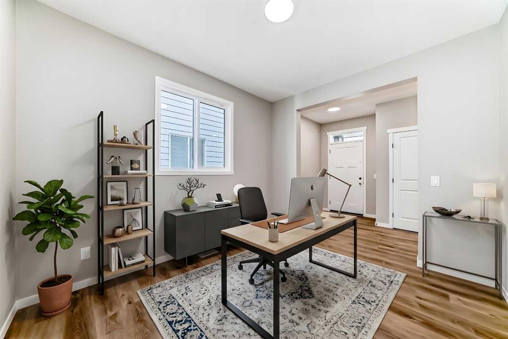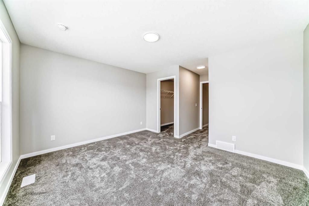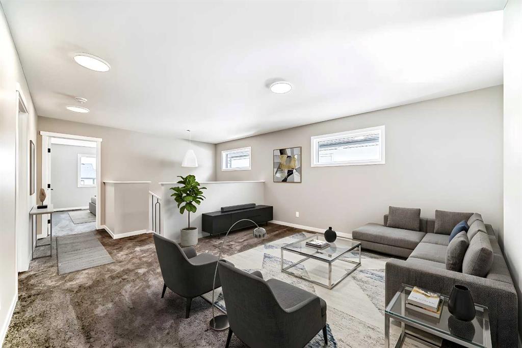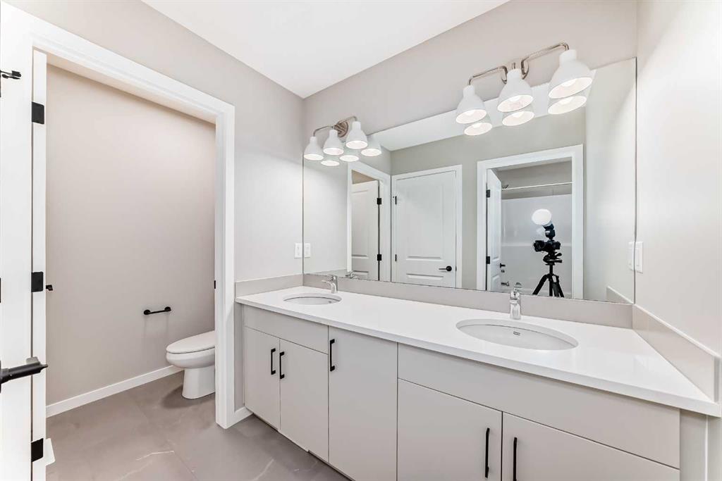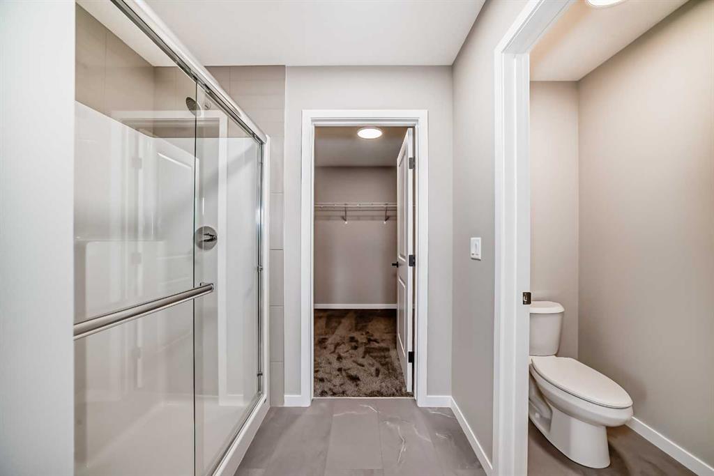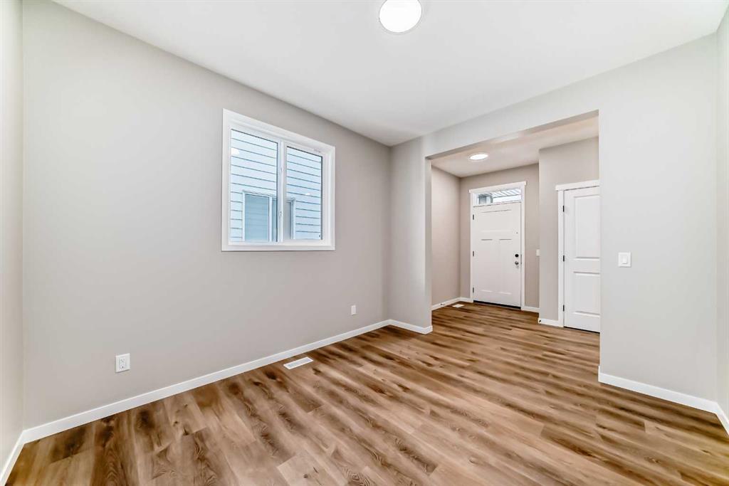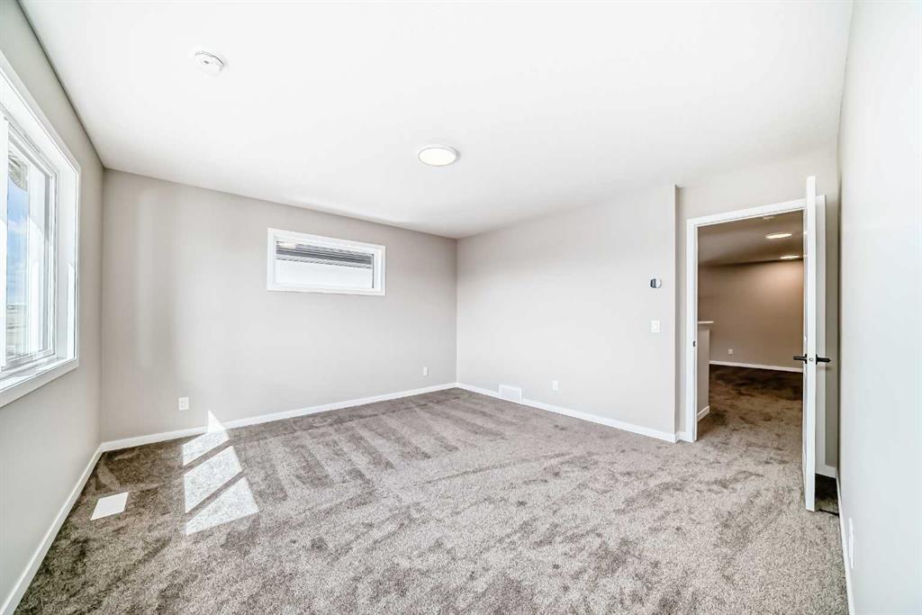 Step into the Castella by Hopewell Residential, a thoughtfully designed 3 bedroom home that blends everyday function, timeless finishes, and bright, comfortable living spaces in all the right ways. With vinyl plank flooring throughout the main floor, upgraded black railing, black hardware, and a clean modern palette, this home offers a stylish look without feeling overdone. The main floor is designed for real life, with a versatile front flex room that works beautifully as a home office, reading area, playroom, or homework zone. From there, the home opens into a bright and inviting layout filled with natural light, thanks to added windows in both the lifestyle room and dining area. The south facing backyard brings even more sunshine into the home, creating a warm and welcoming feel throughout the day. At the heart of the home, the upgraded kitchen offers both style and function with classic white cabinetry, grey quartz countertops, vertically stacked hammered subway tile, black hardware, and a standout chimney hood fan wrapped in tile. The appliance package includes a countertop stove, built-in oven, built-in microwave, and a layout designed for everyday convenience. Peninsula seating provides a casual spot for breakfast or conversation, while the separate prep island adds extra workspace and flexibility. The dining area offers plenty of room to gather, while the lifestyle room is bright, open, and comfortable, with added pot lights and extra windows that help make the entire main floor feel airy and inviting. The upgraded railing continues upstairs, adding a polished finish to the home’s overall design. Upstairs, the Castella floor plan continues to impress with a central bonus room that creates separation between the primary suite and the secondary bedrooms. The spacious primary bedroom is complete with a walk-in closet and a well appointed ensuite featuring a centre tub with dual sinks flanking each side, creating a functional and elevated layout with a spa inspired feel. Two additional bedrooms provide excellent space for kids, guests, or a growing family, while upper floor laundry adds everyday convenience exactly where you need it. Additional features include durable Hardie Board siding, a side entrance, added windows in the unfinished basement, and a sunshine basement that offers excellent potential for future development. The separate side entrance also provides future suite potential (A secondary suite would be subject to approval & permitting by the city/municipality). Located in Mahogany, one of Calgary’s most sought-after lake communities, this home is surrounded by a lifestyle that is hard to match. Residents enjoy access to Mahogany’s 4-season lake, beaches, pathways, parks, playgrounds, wetlands, and vibrant community amenities. With nearby schools, shopping, restaurants, and everyday conveniences, Mahogany offers the perfect blend of outdoor living, family-friendly amenities, and urban convenience.
