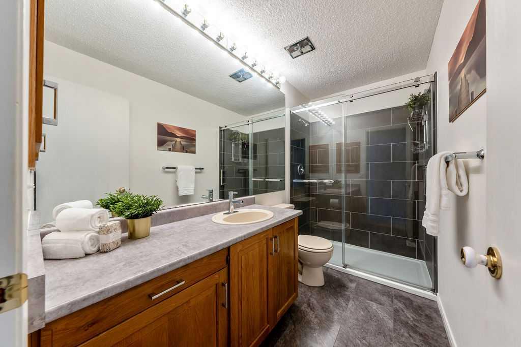***OPEN HOUSE - SATURDAY, MAY 2 - 12:00 - 2:00 PM*** Tucked into a quiet pocket of Strathcona Park, this charming three-bedroom, three-bathroom bi-level is full of personality, natural light, and spaces you’ll actually use and love every day. Let’s start outside, because this home really shines here. The east-facing front patio has been thoughtfully transformed into a cozy outdoor oasis, complete with an outdoor TV and a gas line for your barbecue. Whether its morning coffee, weekend lounging, or catching the game, this is a space that makes you want to stay a while. Out back, the private west-facing yard is ready for entertaining, with a pergola, firepit, and a handy shed to keep all your gear tucked away. Step inside and you’re greeted by sunlight pouring through oversized windows on both levels, giving the home an airy, uplifting feel. The kitchen is a standout—designed for both function and gathering—with a farmhouse sink, prep sink, gas range, loads of counter space, and built-in pantry shelving. A charming south-facing pop-out window is the perfect little greenhouse moment for your herbs or houseplants. The dining area flows easily for hosting, while the living room invites you to unwind with a gas fireplace framed by a beautiful flagstone feature wall and big east-facing windows. The primary suite is a true retreat, offering approximately 200 square feet of comfortable space, large west-facing windows, and a full wall of organized closet space. The recently renovated five-piece ensuite feels like your own personal spa, with updated flooring, tile, shower, lighting, and fixtures. Two additional generously sized bedrooms and a refreshed main bathroom round out the upper level. Downstairs, the fully developed lower level continues to feel bright and welcoming thanks to large windows. There’s a spacious family room, a flexible bonus space, a dedicated office, and a three-piece bathroom, which are perfect for guests, teens, or working from home. The laundry room is as practical as it is generous, with a sink, ample counter space, built-in storage, and room to spread out. And then there’s the oversized attached double garage with two doors, built-in shelving, and a workbench, ideal for projects, storage, and keeping everything organized. Whether you’re upsizing, downsizing, or simply looking for a home with character and functionality, this one checks all the boxes. All of this in the established and highly sought-after community of Strathcona Park, where you’re just minutes to downtown, close to transit and the LRT, and surrounded by great shopping and amenities at Westside Rec Centre, Aspen Landing, and Westhills. The neighbourhood is also known for its excellent schools at every level, including easy access to many of Calgary’s top private and charter schools on the west side... making this a home that truly grows with you.