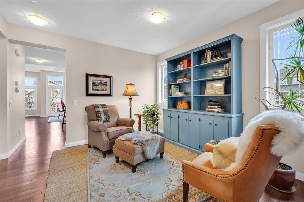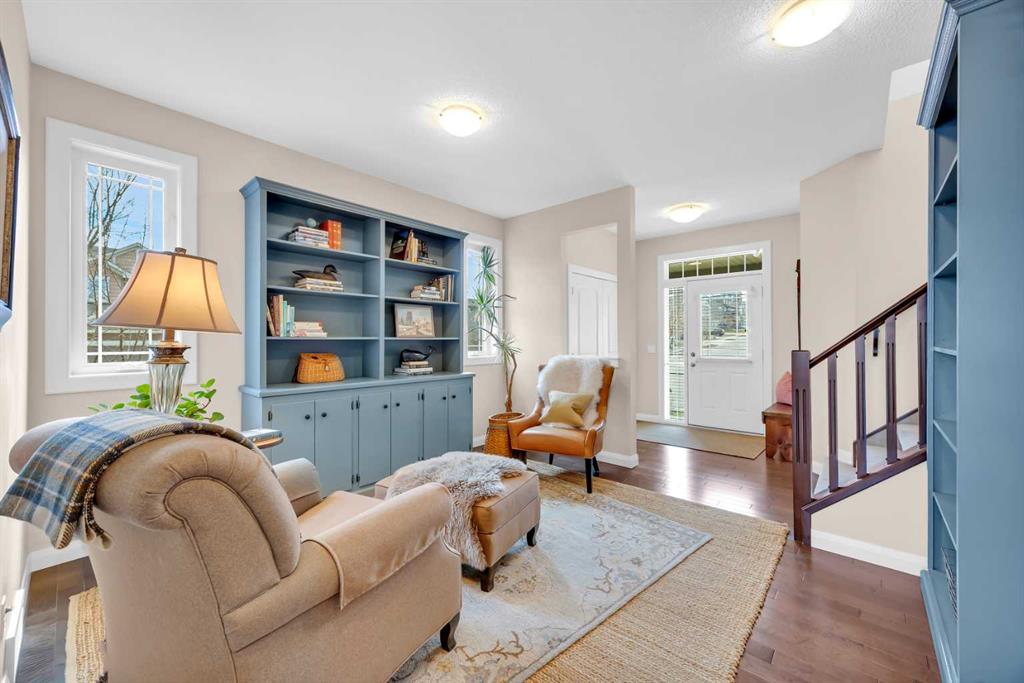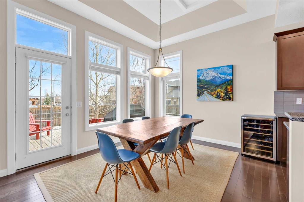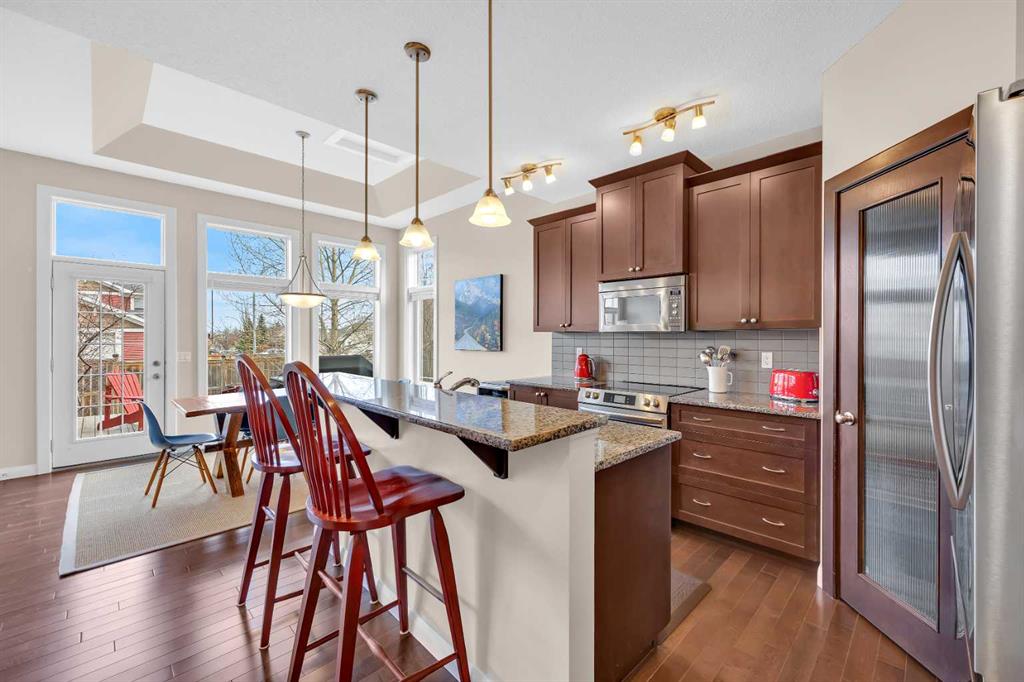 Step inside and you’re immediately welcomed by an airy, inviting foyer that leads into a stunning library space—both magazine-worthy and highly functional. The heart of the home is the well-appointed kitchen, featuring updated appliances, granite countertops, ample cabinetry, and a convenient corner pantry. The adjacent dining nook is wrapped in large windows, creating a bright, immersive space that brings the outdoors in. A striking reclaimed Alberta barnwood feature wall adds warmth and character to the main floor, the living room has oversized windows and a natural gas fireplace completes the space. A tucked-away office, powder room, and rich hardwood flooring throughout round out the thoughtfully designed main level.
