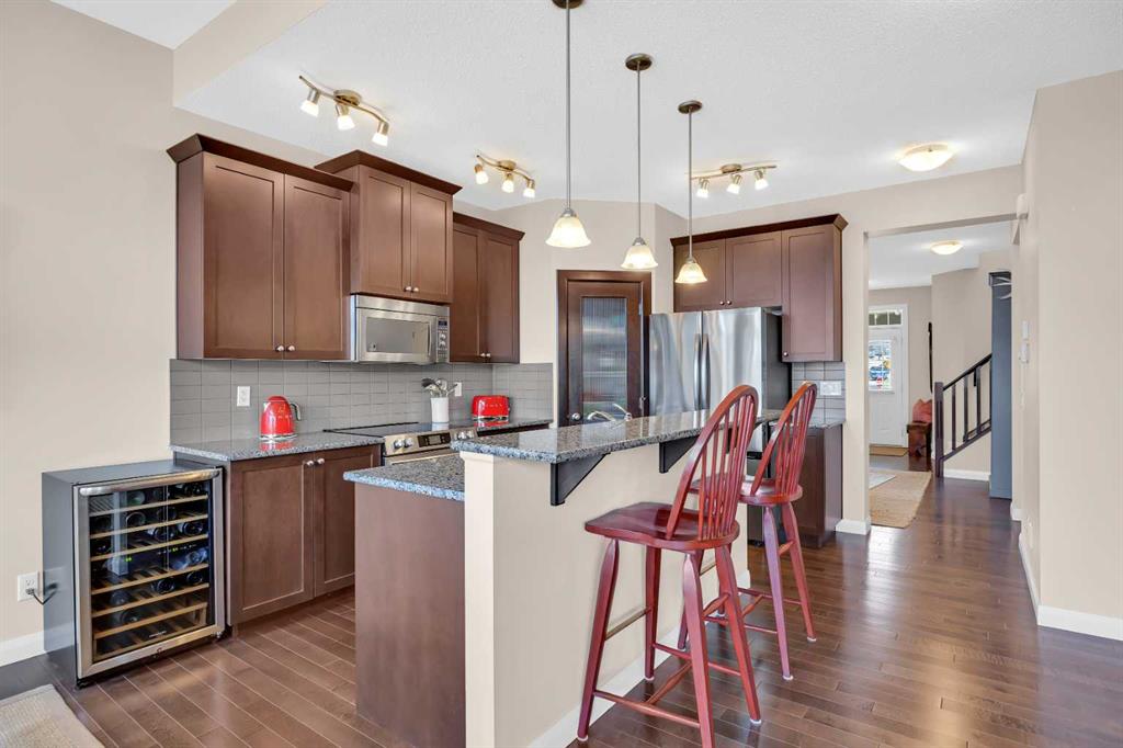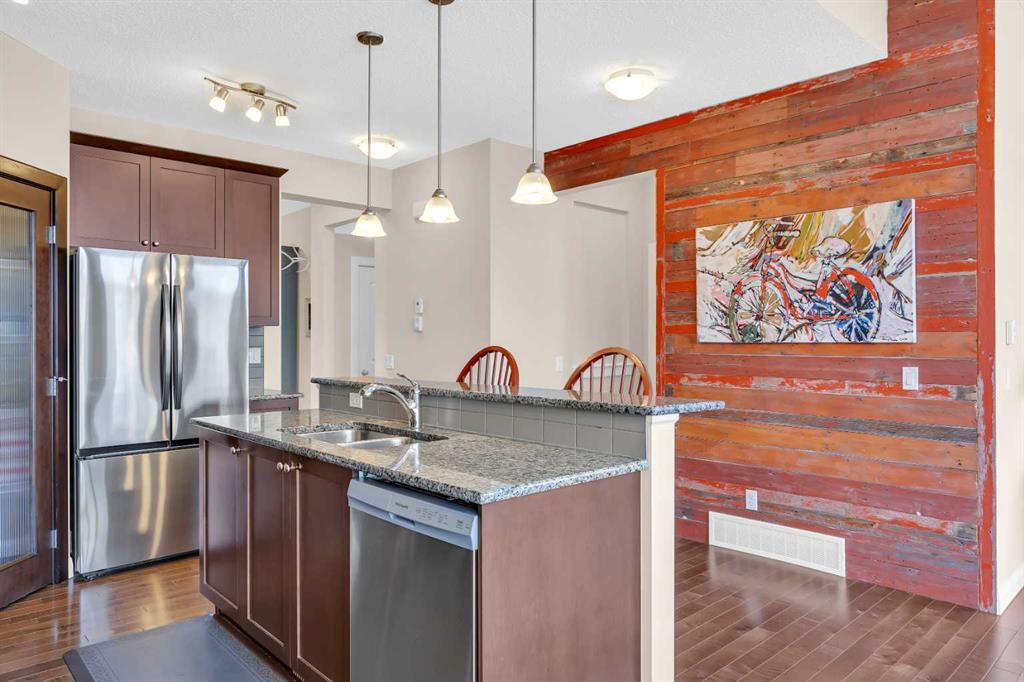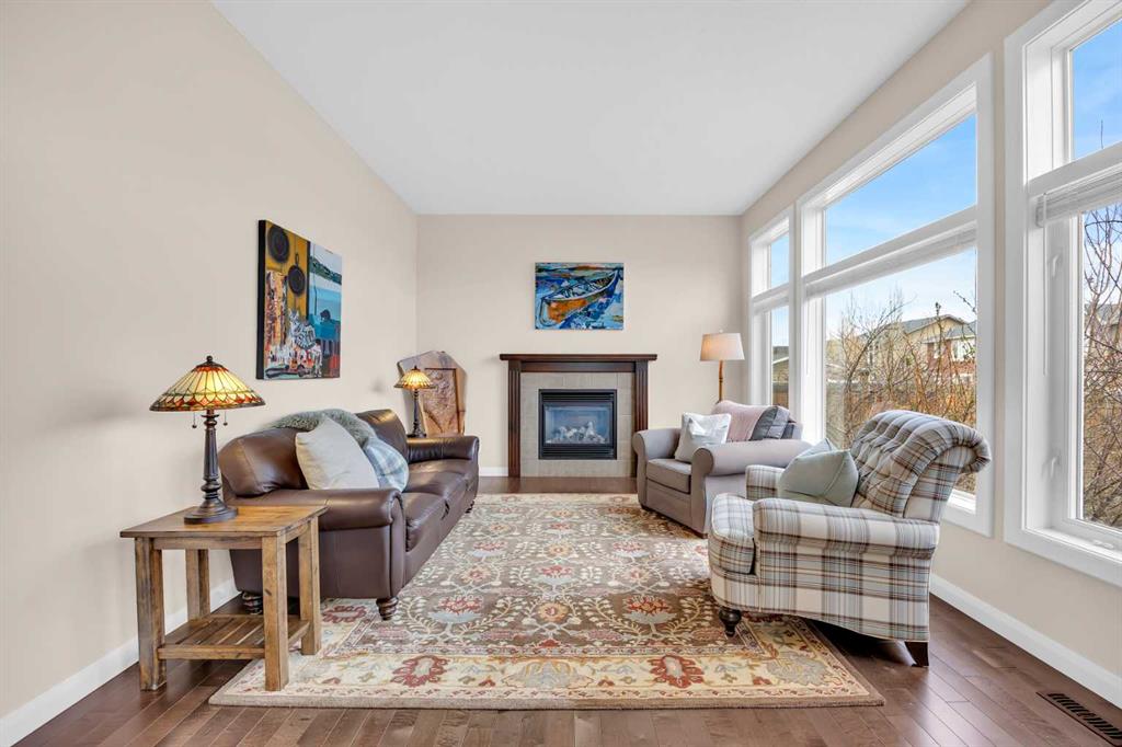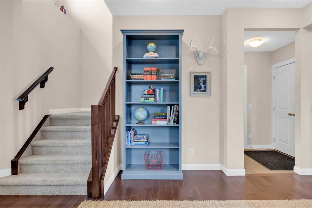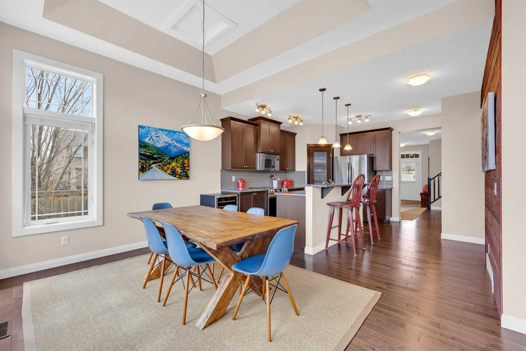 Step inside and you’re immediately welcomed by an airy, inviting foyer that leads into a stunning library space—both magazine-worthy and highly functional. The heart of the home is the well-appointed kitchen, featuring updated appliances, granite countertops, ample cabinetry, and a convenient corner pantry. The adjacent dining nook is wrapped in large windows, creating a bright, immersive space that brings the outdoors in. A striking reclaimed Alberta barnwood feature wall adds warmth and character to the main floor, the living room has oversized windows and a natural gas fireplace completes the space. A tucked-away office, powder room, and rich hardwood flooring throughout round out the thoughtfully designed main level.