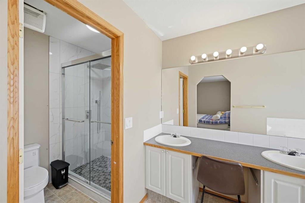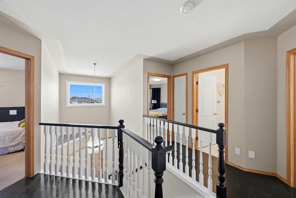 Upstairs, the staircase is finished with classic wooden spindle railings, leading to four generously sized bedrooms, ideal for growing families. The primary ensuite is well-appointed with a five-piece ensuite featuring a standing shower, offering both comfort and functionality.