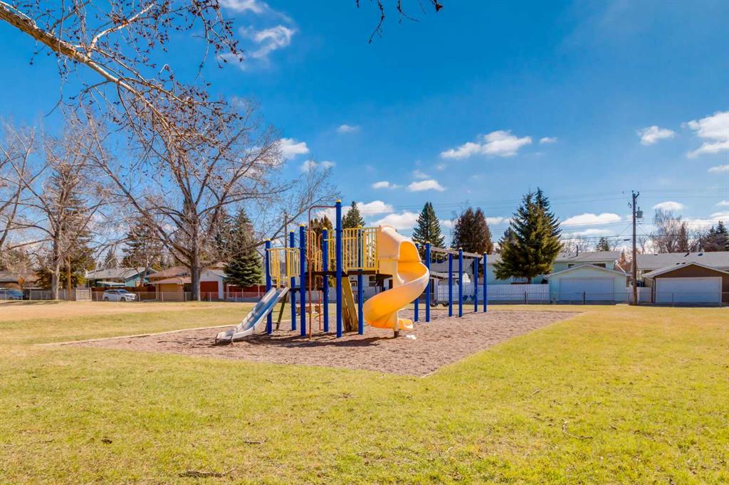 Situated on a beautiful, tree lined street facing a greenspace with playground, this home exudes character and charm awaiting your personal touch! Sunny SW backyard exposure, large lot with back lane access leaving ample space to add a garage and over 3,000 SF of developed living area offering loads of space for the growing family. The main floor features hardwood floors, a sun-filled living room, formal dining area and spacious kitchen open to the family room with wood-burning fireplace. A conveniently located laundry room, 3 piece bathroom and over-sized workshop complete this space. Upstairs you will find TWO exceptionally large primary suites, one with a 4 piece ensuite and one with a 3 piece ensuite. Two additional bedrooms share a 4 piece bathroom. The basement is finished with a family/rec room, a den and an abundance of storage space. Step outside to the huge yard and expansive deck (18'x16') with pergola for summer enjoyment. Easy access to major routes such as Deerfoot Trail and Southland Drive ensures a smooth commute, while golf enthusiasts will appreciate the proximity to the Maple Ridge Golf Course. Shopping and dining options abound at nearby Southcenter Mall and top-rated schools, scenic parks, and numerous amenities close by making this an incredible opportunity to create your dream home today! Once you see it, you will appreciate the value of this property!!