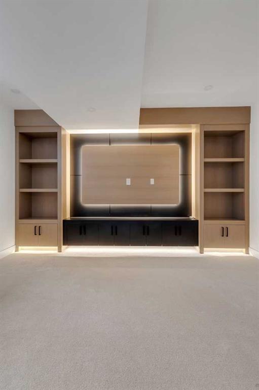 The lower level is planned to offer flexible living space as needs evolve. A spacious family room is suited for entertainment or recreation, complemented by a glass-enclosed fitness area/gym. A fourth bedroom with built-in shelving and a full bathroom provide additional accommodation, while storage and mechanical systems are thoughtfully consolidated to maximize usable space.