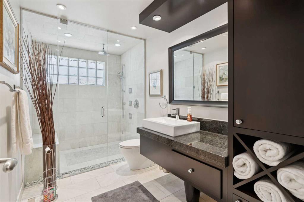 Tucked away at the end of a quiet cul-de-sac in prestigious Pump Hill, this rare, oversized bungalow offers an extraordinary combination of scale, character, and timeless quality. Spanning an impressive 3,178 SF above grade with an additional 2,446 SF in the fully developed walkout basement, 5 bedrooms and 4.5 bathrooms (3 ensuites), this is a home seldom found in today’s market. From the moment you enter, soaring and varied ceiling heights, exposed beams, and expansive principal rooms create a sense of warmth and architectural presence that sets this residence apart. Designed with exceptional flow for both daily living and entertaining, the home features a gracious dining room that transitions seamlessly into an inviting sitting room, opening onto the expansive west-facing rear deck also accessible from the primary suite for a private morning coffee or evening retreat. The kitchen is generously proportioned and built for gathering, showcasing abundant cabinetry, double ovens, quality stone surfaces, and a massive island with eating bar that connects naturally to the welcoming family room. Nearby, a large laundry area, walk-in pantry, and practical boot room leading to the triple attached garage with epoxy flooring enhance everyday convenience. The main level offers two spacious bedrooms, each with beautifully renovated ensuites, including a luxurious primary retreat complete with an oversized walk-in closet and spa-inspired ensuite. The walkout lower level continues to impress with two additional bedrooms, a dedicated office, a fitness room with rubber flooring, updated bathrooms and extensive storage space. You will love summers in the serene backyard with gorgeous, mature landscaping and expansive patio space. Lovingly maintained over the years with clear pride of ownership making this is a rare opportunity to secure a substantial bungalow in one of Calgary’s most established and sought-after communities.