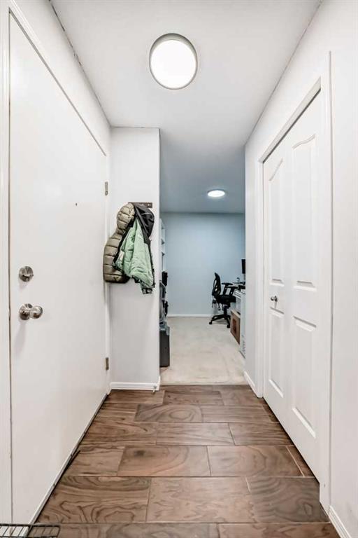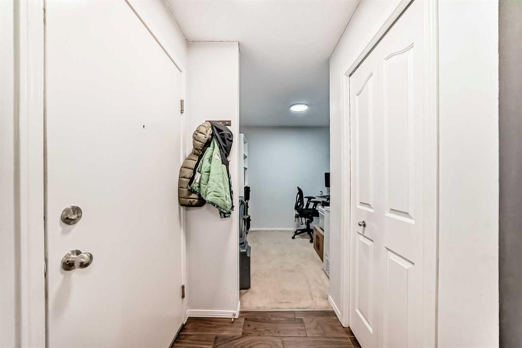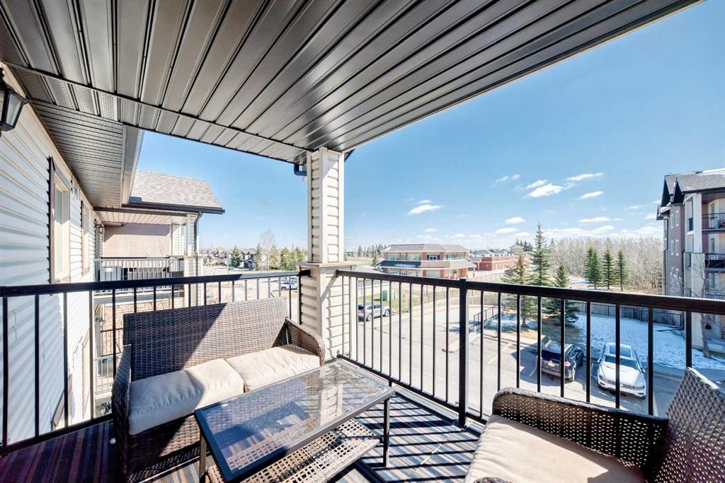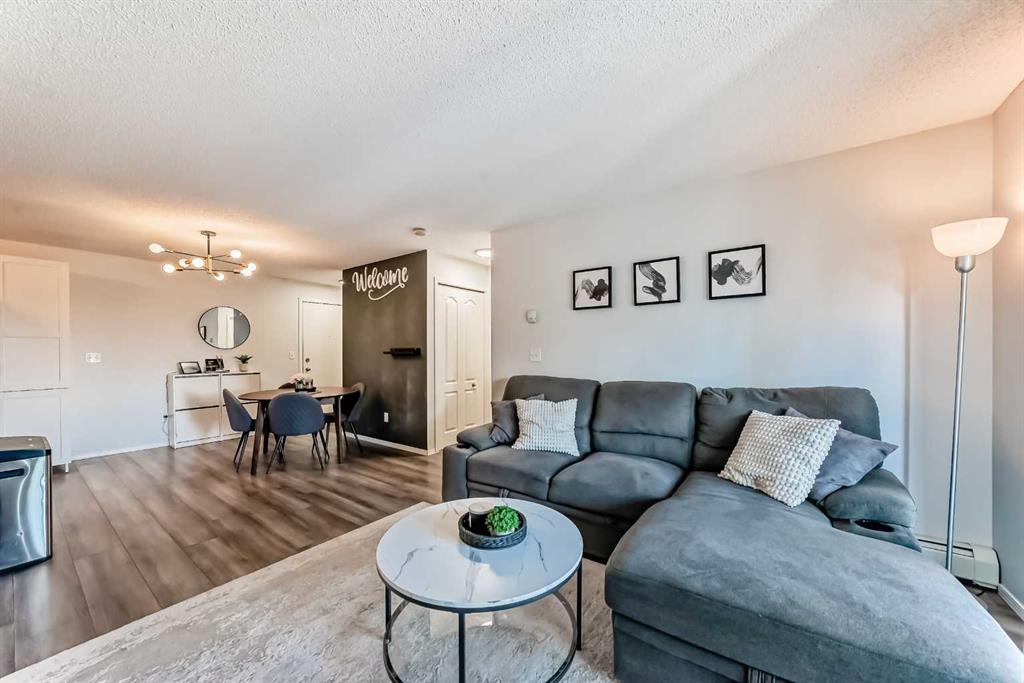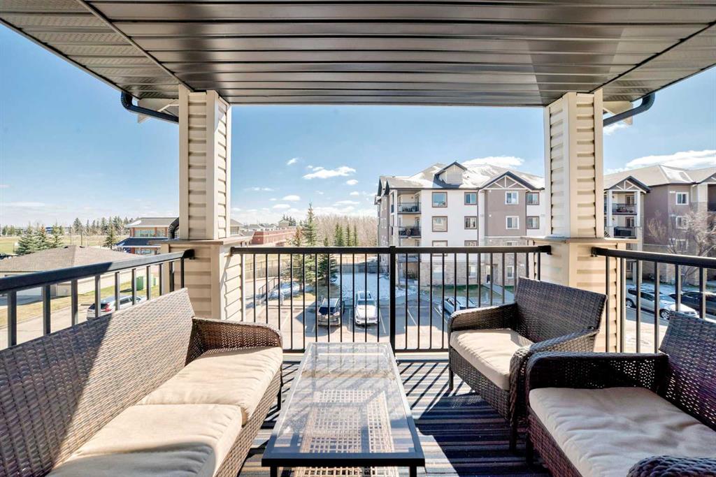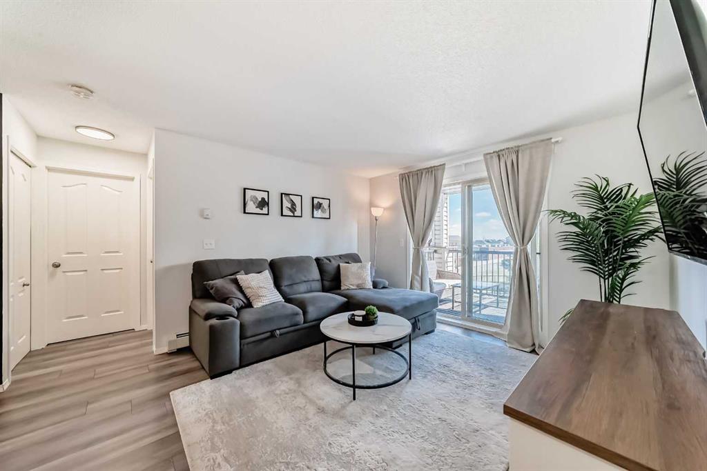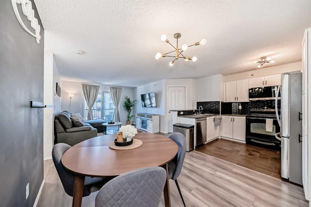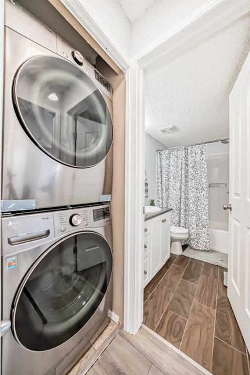 Don’t miss this rare TOP FLOOR opportunity! Perfectly positioned directly across from the ravine, this bright and beautifully updated 2 bedroom, 2 full bathroom + den unit offers stunning ravine views right from your private east facing balcony, the perfect spot to enjoy your morning coffee with peaceful surroundings. Step inside and you’re immediately welcomed by a fresh, modern aesthetic featuring a vibrant colour palette, and luxury vinyl plank flooring throughout. The open concept layout is designed to impress, offering not only a functional flow but also a spacious dining area ideal for entertaining or family meals. The stylish kitchen showcases a striking black backsplash that complements the white cabinetry, along with a breakfast bar, brand new stainless steel refrigerator, dishwasher, and microwave hood fan, plus upgraded lighting throughout the entire unit. The balcony also includes a gas line for your BBQ, making outdoor cooking effortless. The spacious primary bedroom features a walkin closet complete with custom organizers, while the second bedroom and versatile den provide flexible space for guests, a home office, or additional storage. Both four piece bathrooms are well appointed, and the in-suite laundry includes a brand new full size washer and dryer. Enjoy the convenience of an assigned parking stall located directly below your balcony, perfect for those cold Calgary mornings and remote starts. Even better, the affordable condo fee includes all utilities, adding incredible value and peace of mind. Ideally located with easy access to Stoney Trail, plus close proximity to public transit, shopping, and schools, this move-in-ready home is perfect for first-time buyers, young professionals, growing families, or savvy investors.