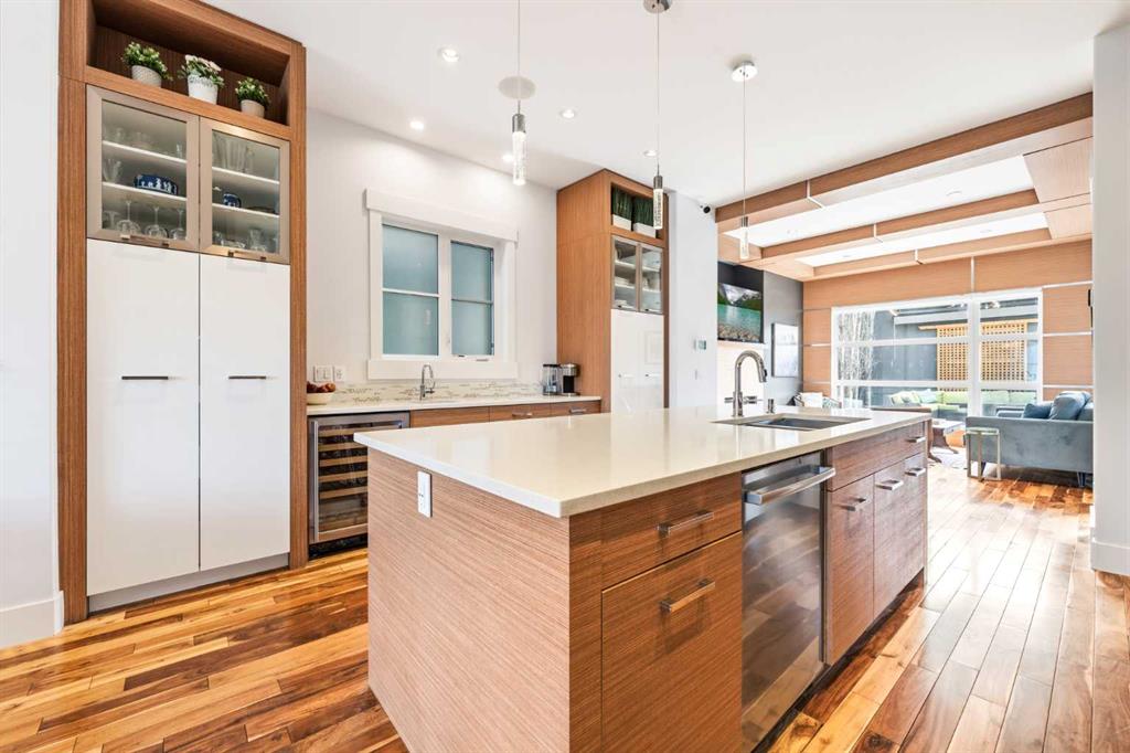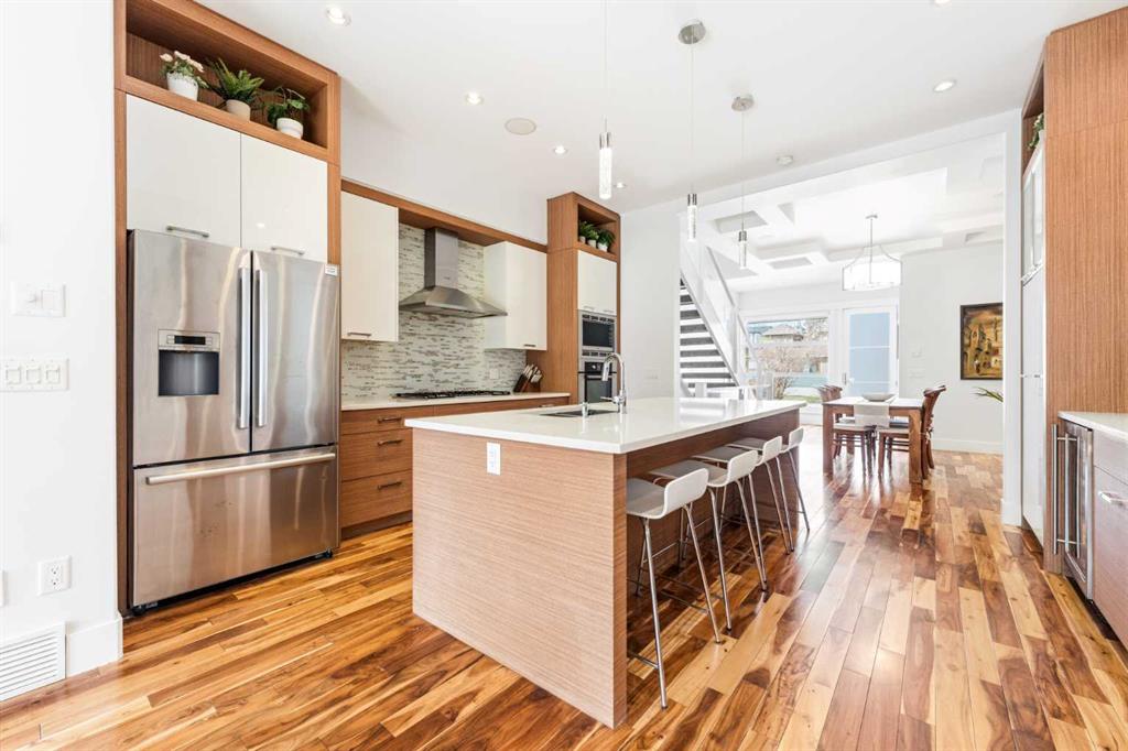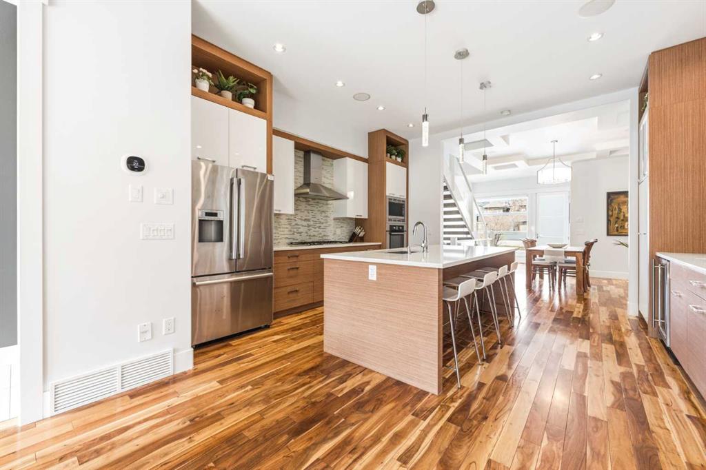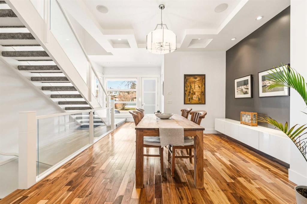 There's a reason people fall in love with homes like this. It's not a single thing — it's the way it all works together. The way it's been cared for. The way it makes you feel like you're already home. This beautifully maintained residence offers refined design and everyday comfort, with thoughtful upgrades throughout that mean you can simply move in and start living. The main level sets the tone — its open-concept layout, rich hardwood floors, and soaring coffered ceilings offer a sense of flow that feels elegant and livable. The mudroom and powder room add the kind of polish that families and busy professionals appreciate. At its heart, the kitchen is built to impress without trying too hard. Custom cabinets, sleek quartz surfaces, and a generous island create a space that's at home hosting a dinner party or a Tuesday night family meal. Premium appliances — including a gas cooktop, beverage fridge, and newer dishwasher and built-in microwave — are a chef’s dream. Upstairs, high ceilings and three large bedrooms offer room to breathe. A dedicated built-in workspace makes working from home feel intentional, not improvised. The primary suite, complete with a spa-inspired 5-piece ensuite, and spacious walk-in closet offers a genuine retreat. The finished basement extends your living space beautifully, with a large rec room, a wet bar with fridge, fourth bedroom, and a full bathroom — ready to enjoy from day one. This home has been meticulously cared for. A newer roof (2017), updated furnace and water softener (2020), a full interior repaint and plush carpeting (2023), and a new 75-gallon hot water tank (2024) mean the big things are already taken care of. The south-facing backyard is a summer oasis — its raised patio, with awning and ambient lighting turns an ordinary evening into something worth lingering over. Morning coffee or evening entertaining with friends, this space delivers. And then there's where you get to live. Altadore lives up to its reputation with village charm — quiet streets, independent shops, and a vibrant foodie scene. Weekends mean slow brunches, sunny patios, and great coffee, all just a stroll away. Outside your door, Sandy Beach offers riverfront picnics and lazy summer afternoons tubing on the Elbow River. River Park — one of the best off-leash dog parks in the city — is a short stroll away. Flanders Park adds open spaces and playgrounds that young families return to again and again. Families also love the local school options. Altadore School is a wonderful public primary with a strong community feel. The Lycée offers prestigious private French education. Master's Academy is one of the city's top charters. Public, private, charter — the choices are here, and they're all good ones. And when the city calls, you're ready. The downtown core is close, transit is convenient, and getting out of town for a weekend adventure is easier than you'd think. Altadore doesn't need to oversell itself. It just quietly, confidently delivers — every single day