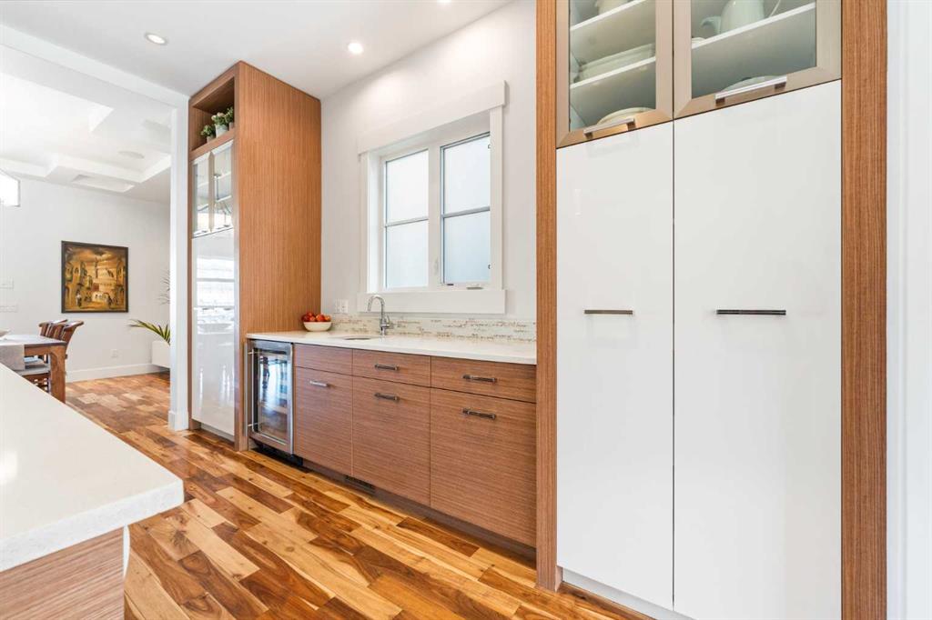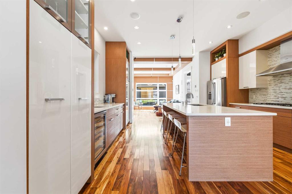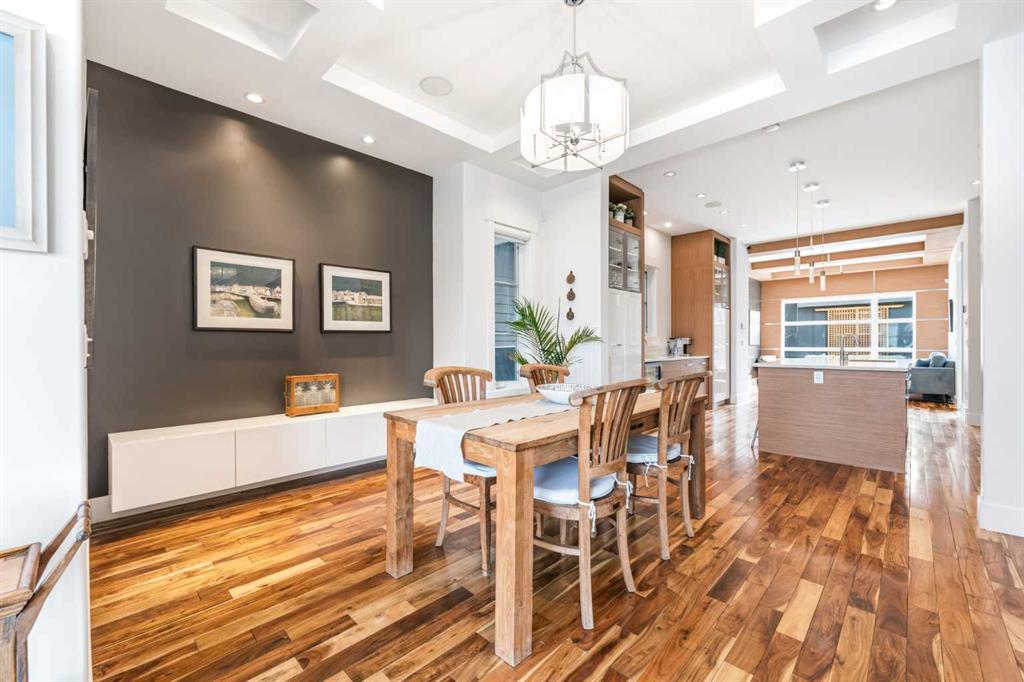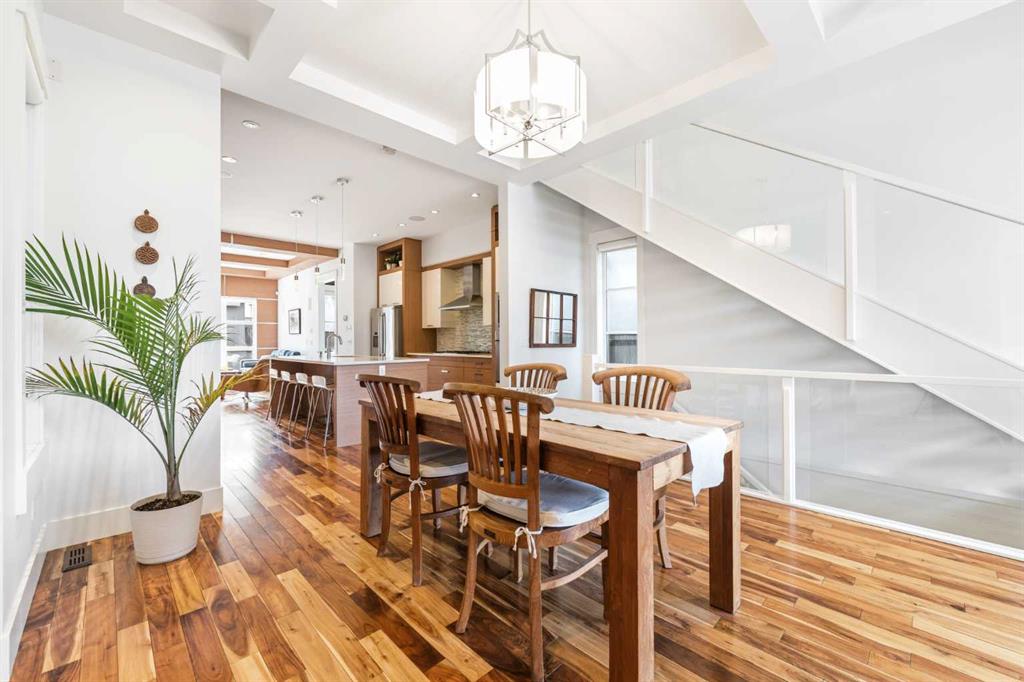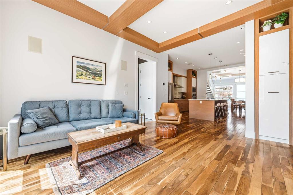 There's a reason people fall in love with homes like this. It's not a single thing — it's the way it all works together. The way it's been cared for. The way it makes you feel like you're already home. This beautifully maintained residence offers refined design and everyday comfort, with thoughtful upgrades throughout that mean you can simply move in and start living. The main level sets the tone — its open-concept layout, rich hardwood floors, and soaring coffered ceilings offer a sense of flow that feels elegant and livable. The mudroom and powder room add the kind of polish that families and busy professionals appreciate. At its heart, the kitchen is built to impress without trying too hard. Custom cabinets, sleek quartz surfaces, and a generous island create a space that's at home hosting a dinner party or a Tuesday night family meal. Premium appliances — including a gas cooktop, beverage fridge, and newer dishwasher and built-in microwave — are a chef’s dream. Upstairs, high ceilings and three large bedrooms offer room to breathe. A dedicated built-in workspace makes working from home feel intentional, not improvised. The primary suite, complete with a spa-inspired 5-piece ensuite, and spacious walk-in closet offers a genuine retreat. The finished basement extends your living space beautifully, with a large rec room, a wet bar with fridge, fourth bedroom, and a full bathroom — ready to enjoy from day one. This home has been meticulously cared for. A newer roof (2017), updated furnace and water softener (2020), a full interior repaint and plush carpeting (2023), and a new 75-gallon hot water tank (2024) mean the big things are already taken care of. The south-facing backyard is a summer oasis — its raised patio, with awning and ambient lighting turns an ordinary evening into something worth lingering over. Morning coffee or evening entertaining with friends, this space delivers. And then there's where you get to live. Altadore lives up to its reputation with village charm — quiet streets, independent shops, and a vibrant foodie scene. Weekends mean slow brunches, sunny patios, and great coffee, all just a stroll away. Outside your door, Sandy Beach offers riverfront picnics and lazy summer afternoons tubing on the Elbow River. River Park — one of the best off-leash dog parks in the city — is a short stroll away. Flanders Park adds open spaces and playgrounds that young families return to again and again. Families also love the local school options. Altadore School is a wonderful public primary with a strong community feel. The Lycée offers prestigious private French education. Master's Academy is one of the city's top charters. Public, private, charter — the choices are here, and they're all good ones. And when the city calls, you're ready. The downtown core is close, transit is convenient, and getting out of town for a weekend adventure is easier than you'd think. Altadore doesn't need to oversell itself. It just quietly, confidently delivers — every single day