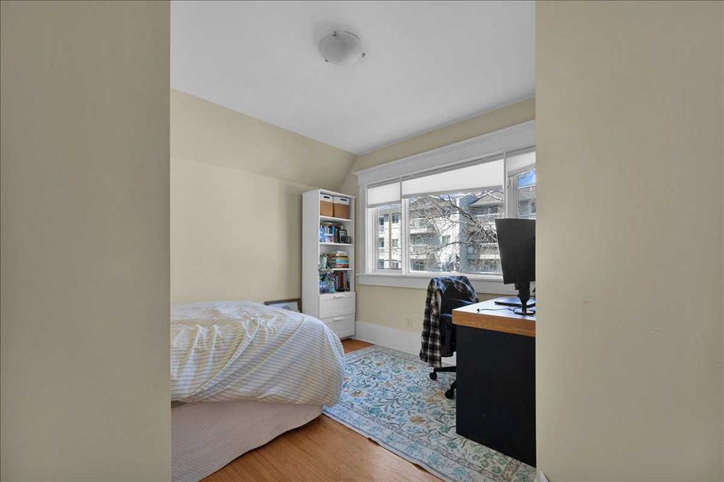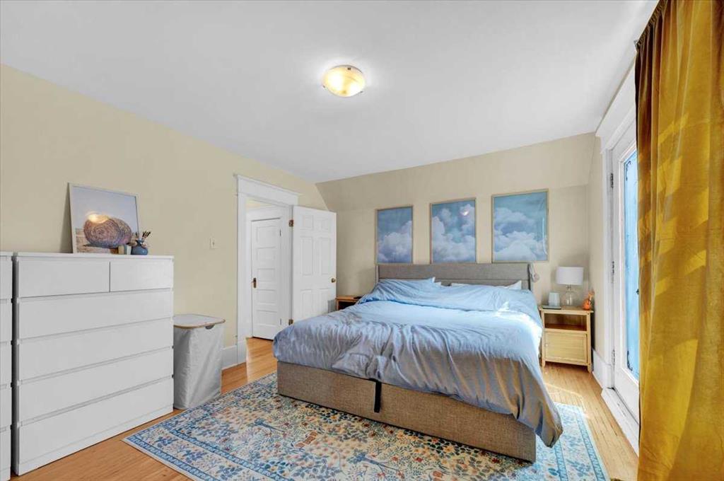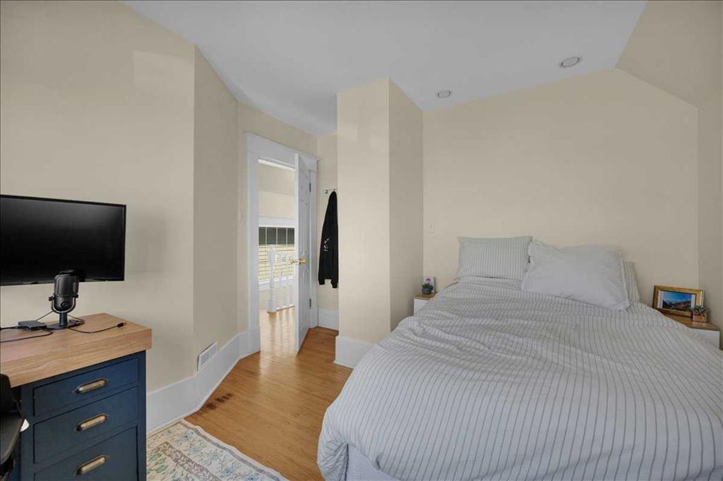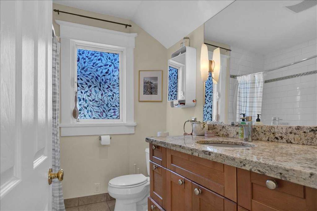 The upper level features three bedrooms, including a generous primary retreat with direct access to a sunny, south-facing private deck—an ideal space to unwind. A full bathroom completes the upper floor.