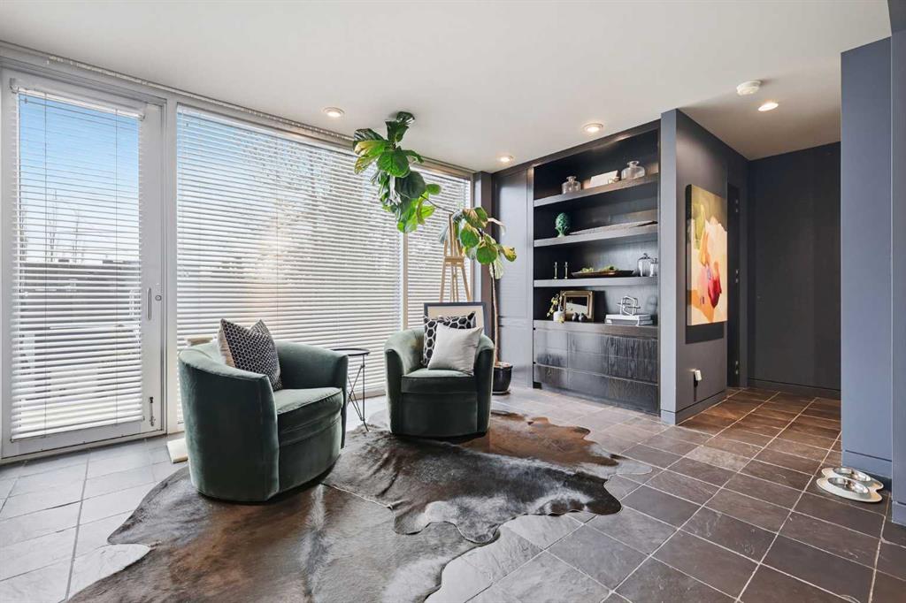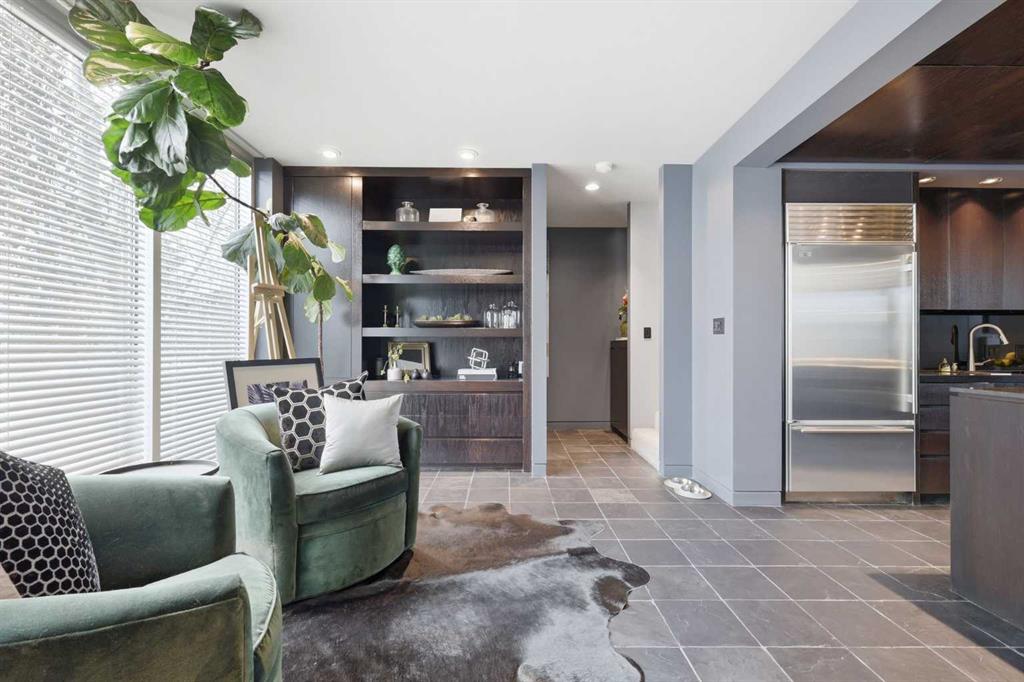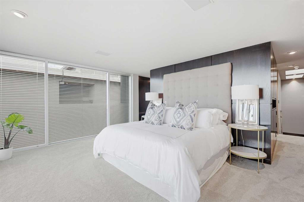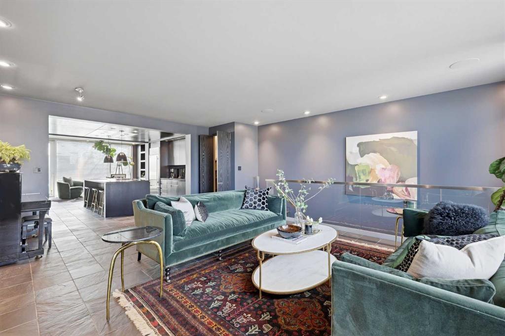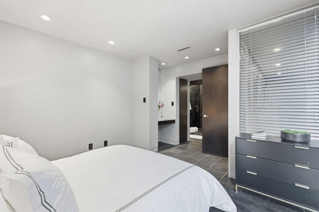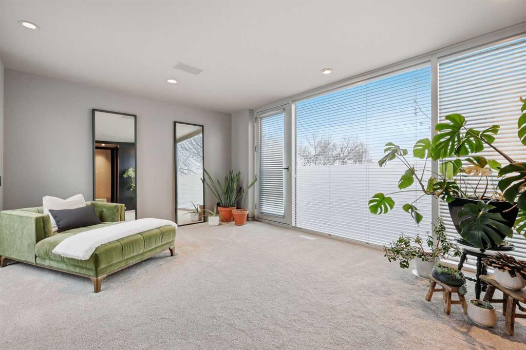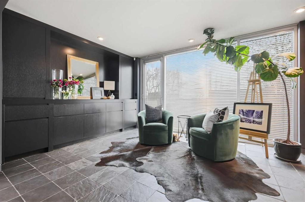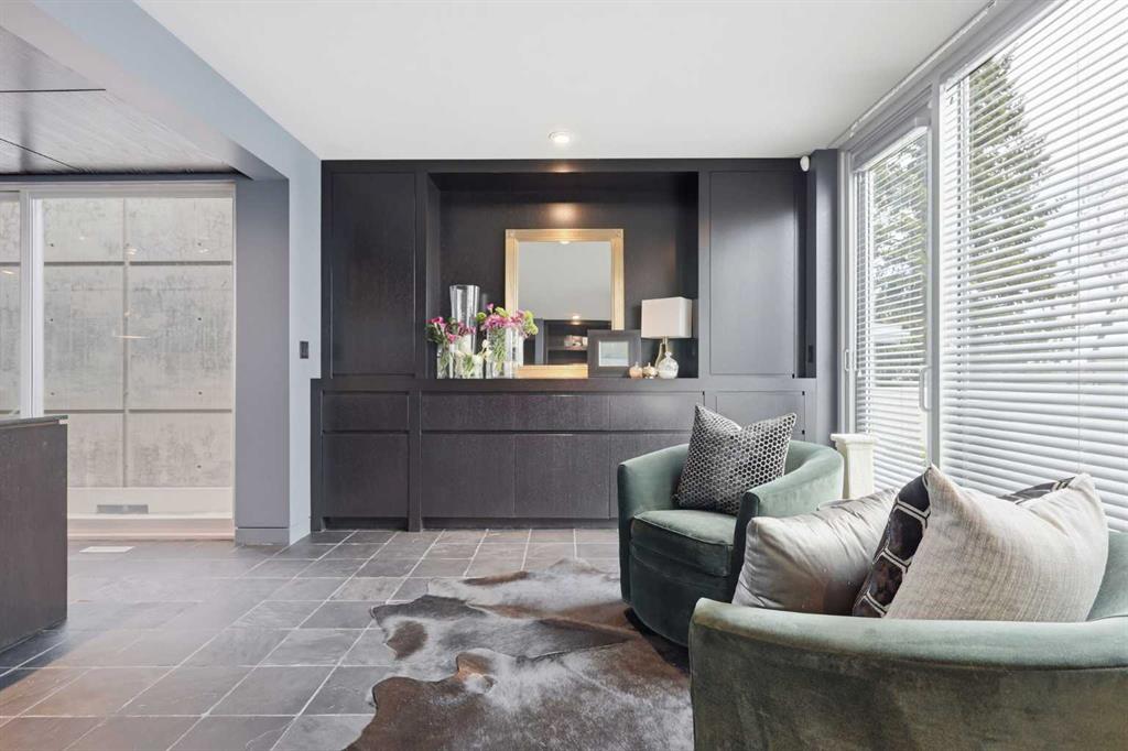 Impeccably positioned on a coveted street with unobstructed city and downtown views, this exceptional 2 bedroom residence with rare full concrete construction that is engineered for exceptional longevity, offers over 2,600 sq ft of luxurious living space. The main level is completely open from front to back, showcasing refinished tile flooring and custom millwork that frame a spacious living room with access to a private front terrace, all anchored by a striking gas fireplace. The sleek modern kitchen features granite countertops, a large island/eating bar, abundant storage including a walk in pantry, and stainless steel appliances. A dining room with built ins provides an elegant setting for hosting family and friends. A 2 piece powder room completes the main level. The top level, finished with new carpeting, is dedicated entirely to the primary retreat — a secluded oasis offering a massive bedroom with panoramic city, downtown, and mountain views, a dream walk in closet, and a tranquil sitting room. The ensuite is thoughtfully designed with two separate spaces: a serene area with a relaxing soaker tub, and a private 3 piece bath with an oversized shower. The lower level hosts a second bedroom with its own 3 piece ensuite, along with a dedicated laundry room with sink and storage. From here, enjoy direct access to the oversized single attached garage with a heated driveway. Additional highlights include central air conditioning, updated paint, new lighting and LED upgrades throughout, aluminum Hunter Douglas blinds, a new control panel and boiler pumps, and a new membrane roof. A north facing terrace offers the perfect vantage point for outdoor entertaining and warm summer evenings with stunning city and downtown views while a private south back patio is the perfect setting for relaxing afternoons soaking up the sun. This extraordinary home is ideally located near vibrant Marda Loop, excellent schools, shopping, public transit, and provides easy access to 26th Avenue, 14th Street, and Crowchild Trail.