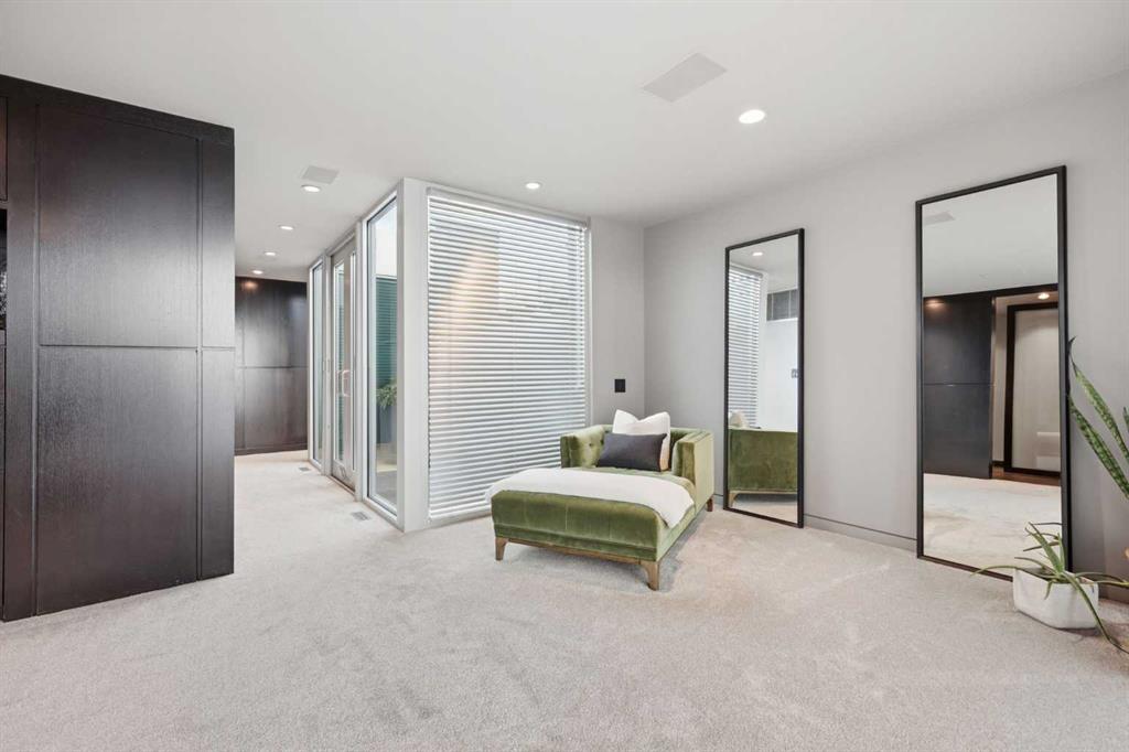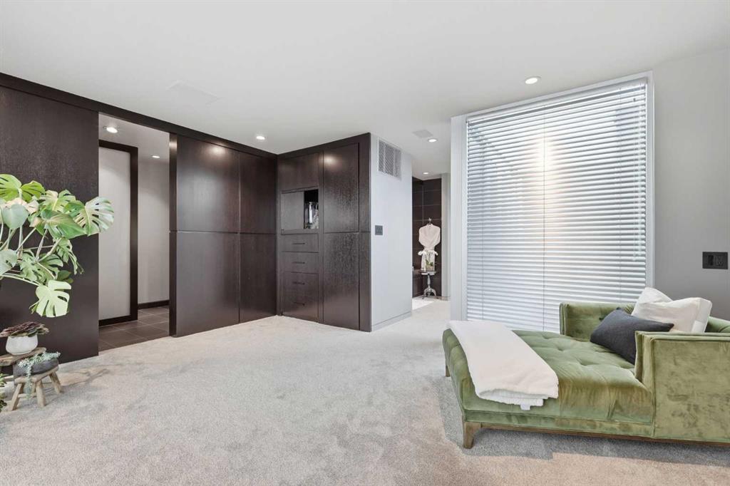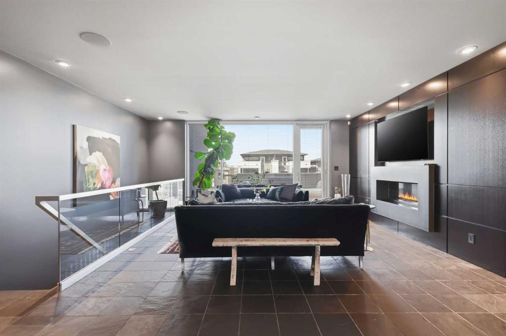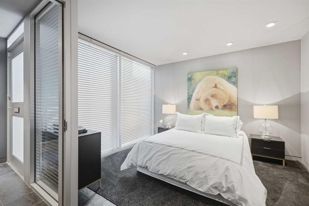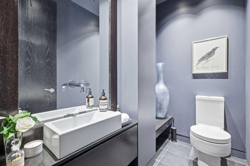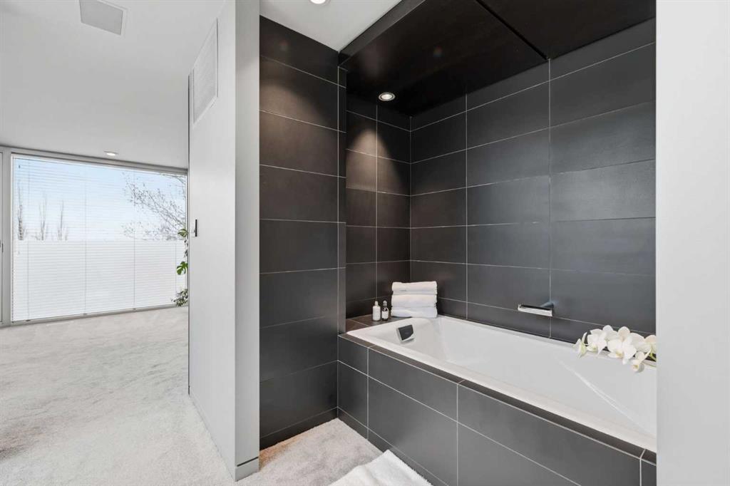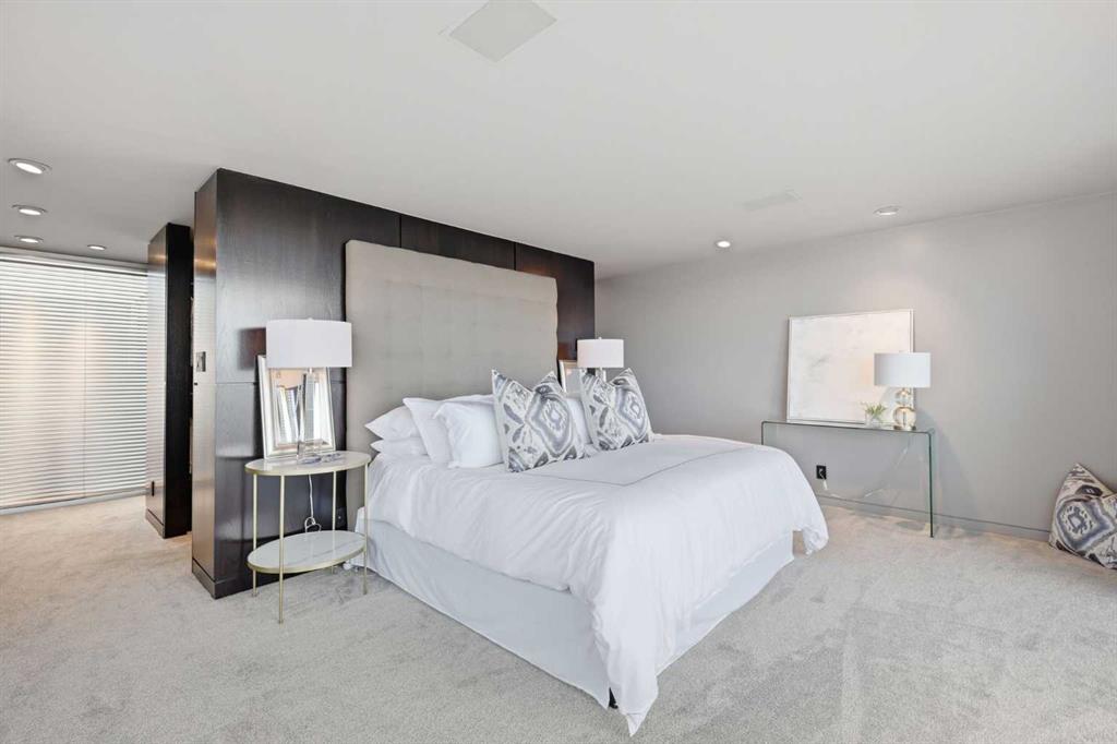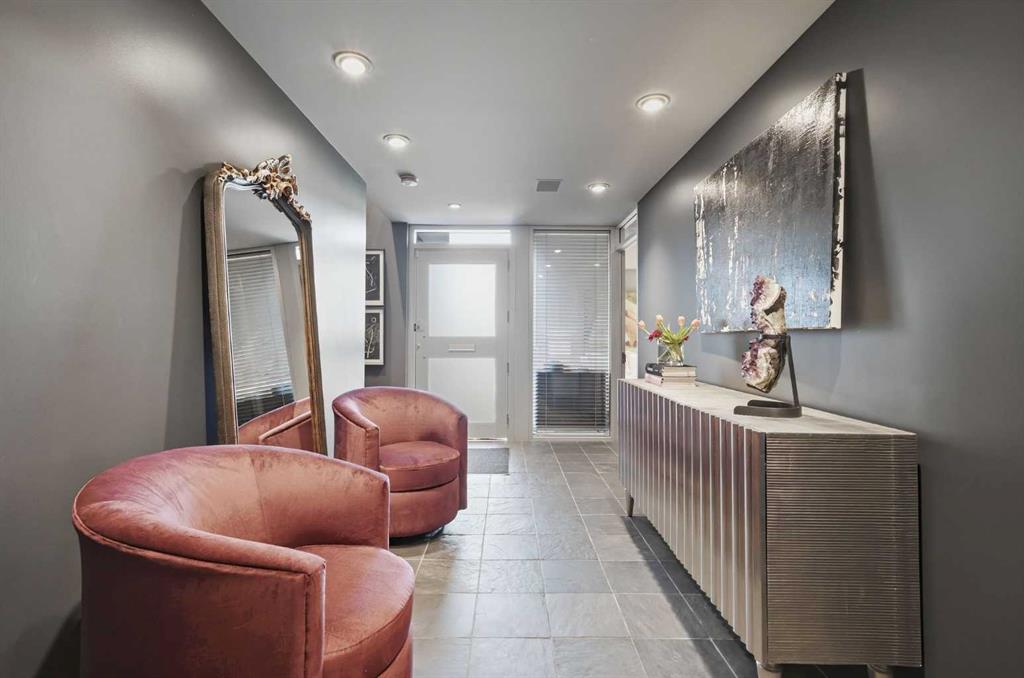 Impeccably positioned on a coveted street with unobstructed city and downtown views, this exceptional 2 bedroom residence with rare full concrete construction that is engineered for exceptional longevity, offers over 2,600 sq ft of luxurious living space. The main level is completely open from front to back, showcasing refinished tile flooring and custom millwork that frame a spacious living room with access to a private front terrace, all anchored by a striking gas fireplace. The sleek modern kitchen features granite countertops, a large island/eating bar, abundant storage including a walk in pantry, and stainless steel appliances. A dining room with built ins provides an elegant setting for hosting family and friends. A 2 piece powder room completes the main level. The top level, finished with new carpeting, is dedicated entirely to the primary retreat — a secluded oasis offering a massive bedroom with panoramic city, downtown, and mountain views, a dream walk in closet, and a tranquil sitting room. The ensuite is thoughtfully designed with two separate spaces: a serene area with a relaxing soaker tub, and a private 3 piece bath with an oversized shower. The lower level hosts a second bedroom with its own 3 piece ensuite, along with a dedicated laundry room with sink and storage. From here, enjoy direct access to the oversized single attached garage with a heated driveway. Additional highlights include central air conditioning, updated paint, new lighting and LED upgrades throughout, aluminum Hunter Douglas blinds, a new control panel and boiler pumps, and a new membrane roof. A north facing terrace offers the perfect vantage point for outdoor entertaining and warm summer evenings with stunning city and downtown views while a private south back patio is the perfect setting for relaxing afternoons soaking up the sun. This extraordinary home is ideally located near vibrant Marda Loop, excellent schools, shopping, public transit, and provides easy access to 26th Avenue, 14th Street, and Crowchild Trail.