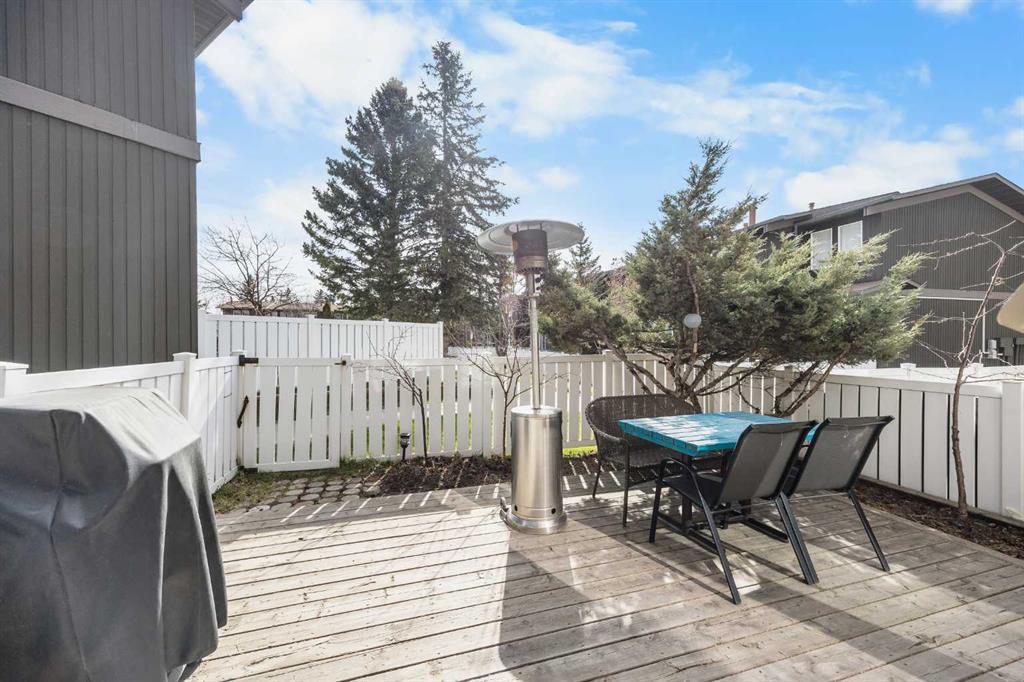 Step outside to your fully fenced East-facing backyard with an expansive deck perfect for outdoor dining and relaxation. Two growing cherry trees and a medium-sized evergreen bring seasonal colour, texture, and life to the backyard, making it a serene and inviting outdoor retreat. Convenient gate provides access to the complex courtyard with walking paths and playground—creating a wonderful community atmosphere for families. Visitor parking is conveniently located nearby for guests.