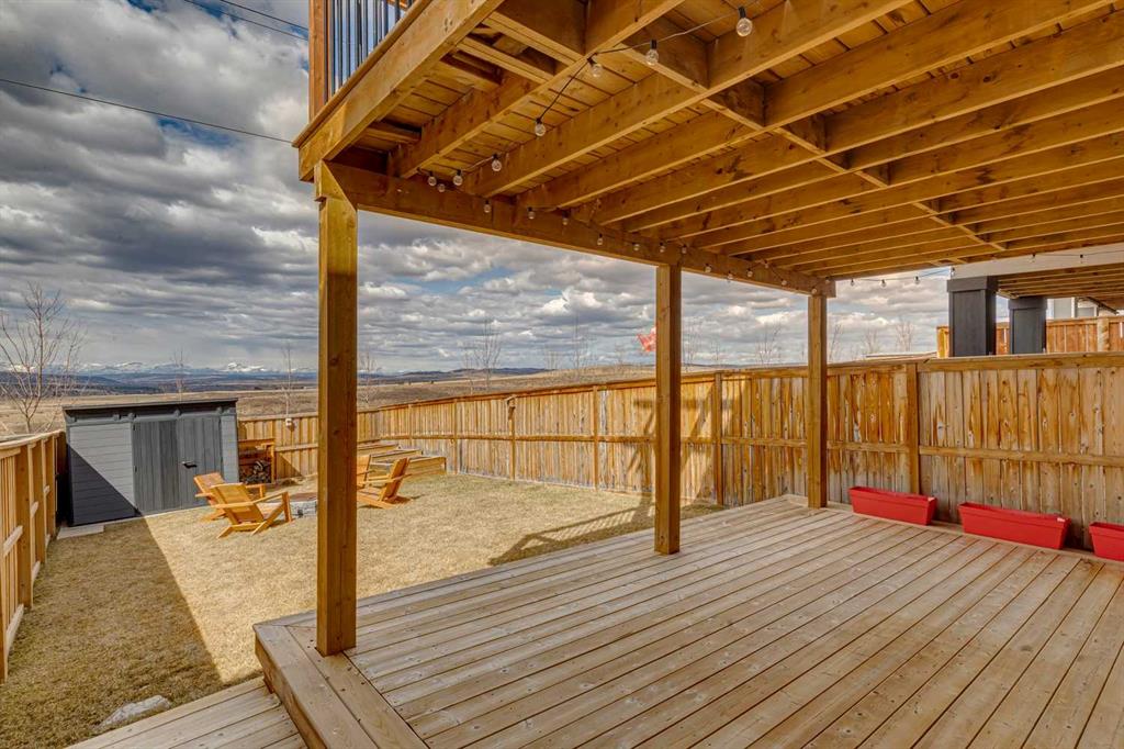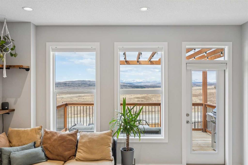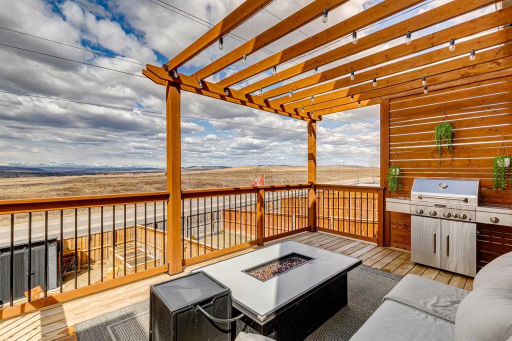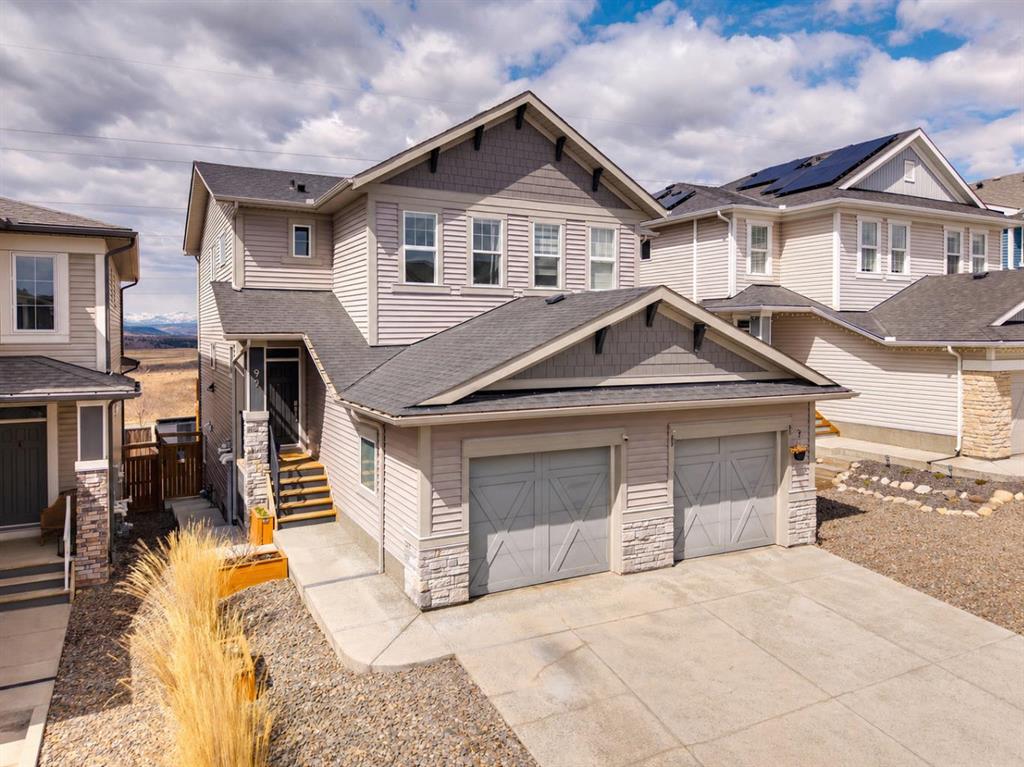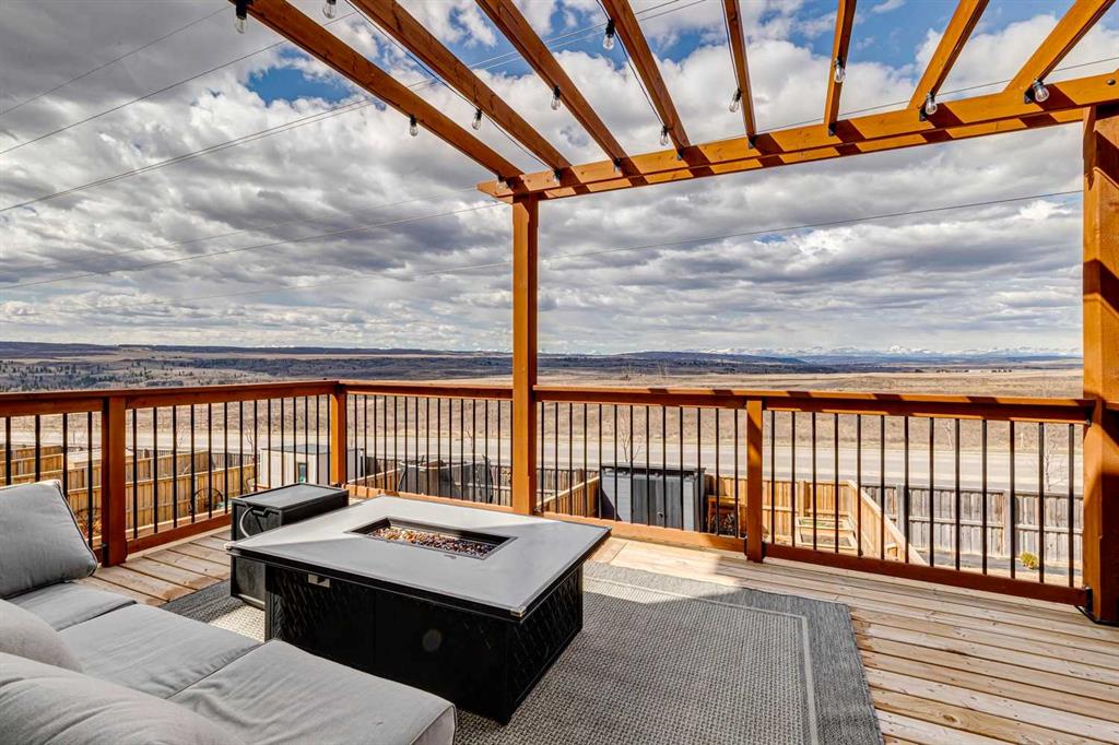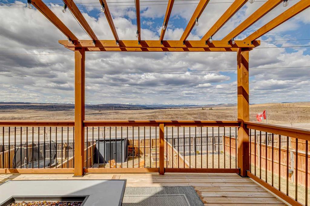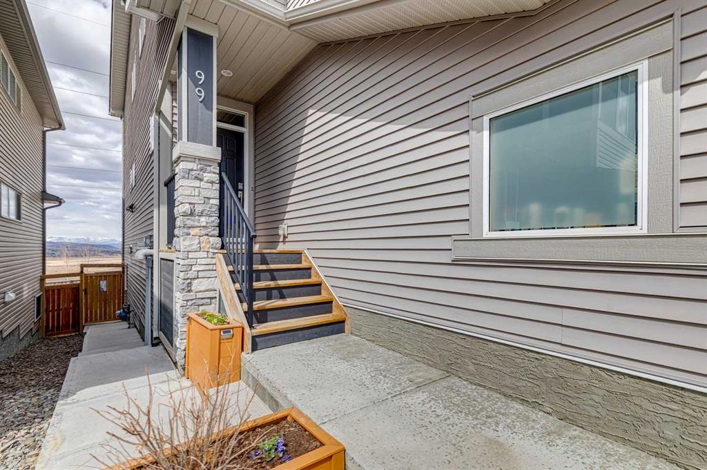 Here is a true rarity! Boasting some of the best views Southern Alberta has to offer from all three levels, and showing in like-new condition, this is the calming retreat every homeowner is looking for. Welcome to 99 Heritage Heights. Upon entry, this property immediately shows a cut above, with immaculate walls and luxury vinyl plank flooring flowing throughout the main floor living area. The incredible panoramic west exposure captures the mountain views this part of the world is known for. The kitchen features quartz countertops, gleaming white cabinetry, loads of storage space, and a dedicated pantry. The open-concept living and dining area extends onto the upper deck, expanding your main floor living and entertaining space. The upper deck has been thoughtfully expanded to approximately 18' x 12' and is structurally enhanced with helical piles, A 12' x 12' pergola with included LED string lighting creates the perfect setting for evening relaxation while taking in the sweeping mountain views. Upstairs, the primary suite (more mountain views) offers a walk-in closet and private ensuite bath. Two additional generously sized bedrooms, a 4-piece bath, and a dedicated laundry room complete the upper level. The finished walkout basement has been professionally updated and was previously operated as a very active Airbnb. Designer features are evident in the impressive bathroom, now further elevated with a premium Riobel thermostatic shower system with rain shower, elegant marble mosaic and porcelain tile work, and a NuHeat in-floor heating system with a programmable digital thermostat. Comfort and functionality are enhanced with an automatic humidity-sensing bathroom fan, creating a spa-like experience for guests or everyday use. The fully developed galley kitchen and sitting area create an ideal space for guests, extended family, or young adults in the home. The outdoor space continues to impress with an expanded lower deck measuring approximately 12.5' x 22'. Thoughtful landscaping includes raised garden beds filled with organic compost and soil, cedar planter boxes in the front yard, and a 9' x 7' Keter “Artisan” shed for additional storage. Concrete steps, professionally poured run along the side of the home providing private and discreet access to the walkout basement. This walkout level also captures more mountain views and opens to a sunny west-facing backyard, perfect for warm summer evenings. The front attached garage is vaulted and offers excellent additional storage. Homes with views like this are typically found in the seven-figure range, you can own this property for a fraction of the price while still enjoying 100% of the location and views. Cochrane offers all the amenities you could want or need, with quick access to Banff, Canmore, and the national parks, while YYC is less than an hour away. Quick possession available book your private showing today!