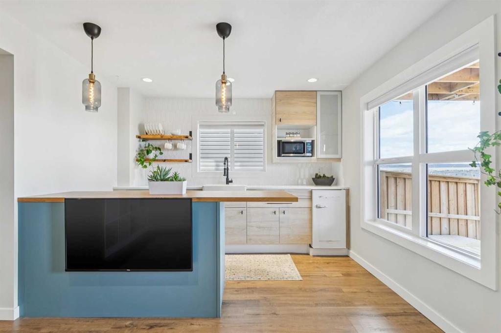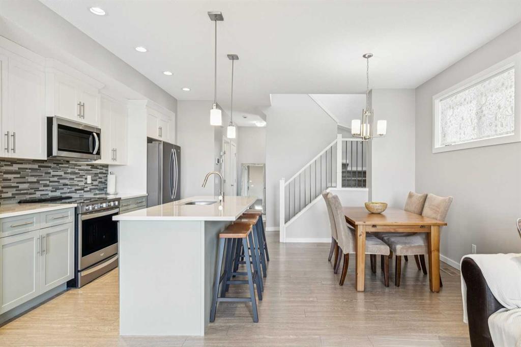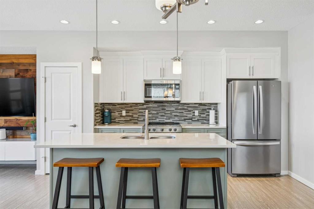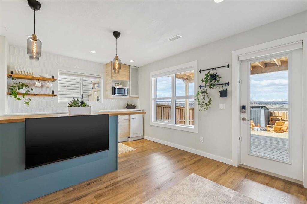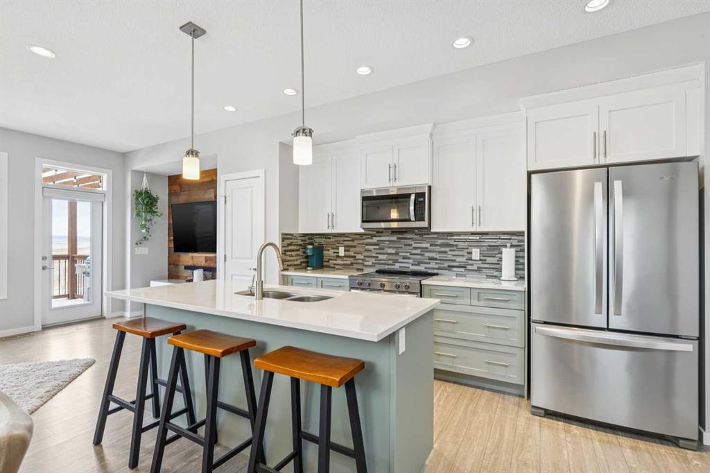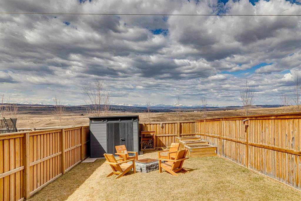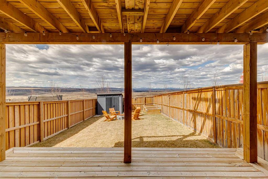 Here is a true rarity! Boasting some of the best views Southern Alberta has to offer from all three levels, and showing in like-new condition, this is the calming retreat every homeowner is looking for. Welcome to 99 Heritage Heights. Upon entry, this property immediately shows a cut above, with immaculate walls and luxury vinyl plank flooring flowing throughout the main floor living area. The incredible panoramic west exposure captures the mountain views this part of the world is known for. The kitchen features quartz countertops, gleaming white cabinetry, loads of storage space, and a dedicated pantry. The open-concept living and dining area extends onto the upper deck, expanding your main floor living and entertaining space. The upper deck has been thoughtfully expanded to approximately 18' x 12' and is structurally enhanced with helical piles, A 12' x 12' pergola with included LED string lighting creates the perfect setting for evening relaxation while taking in the sweeping mountain views. Upstairs, the primary suite (more mountain views) offers a walk-in closet and private ensuite bath. Two additional generously sized bedrooms, a 4-piece bath, and a dedicated laundry room complete the upper level. The finished walkout basement has been professionally updated and was previously operated as a very active Airbnb. Designer features are evident in the impressive bathroom, now further elevated with a premium Riobel thermostatic shower system with rain shower, elegant marble mosaic and porcelain tile work, and a NuHeat in-floor heating system with a programmable digital thermostat. Comfort and functionality are enhanced with an automatic humidity-sensing bathroom fan, creating a spa-like experience for guests or everyday use. The fully developed galley kitchen and sitting area create an ideal space for guests, extended family, or young adults in the home. The outdoor space continues to impress with an expanded lower deck measuring approximately 12.5' x 22'. Thoughtful landscaping includes raised garden beds filled with organic compost and soil, cedar planter boxes in the front yard, and a 9' x 7' Keter “Artisan” shed for additional storage. Concrete steps, professionally poured run along the side of the home providing private and discreet access to the walkout basement. This walkout level also captures more mountain views and opens to a sunny west-facing backyard, perfect for warm summer evenings. The front attached garage is vaulted and offers excellent additional storage. Homes with views like this are typically found in the seven-figure range, you can own this property for a fraction of the price while still enjoying 100% of the location and views. Cochrane offers all the amenities you could want or need, with quick access to Banff, Canmore, and the national parks, while YYC is less than an hour away. Quick possession available book your private showing today!