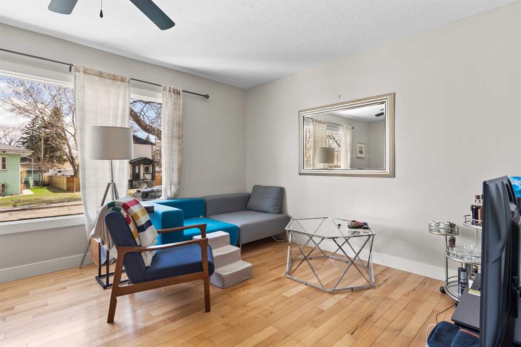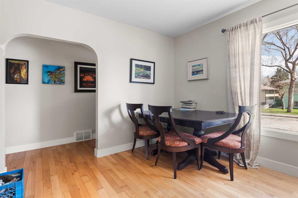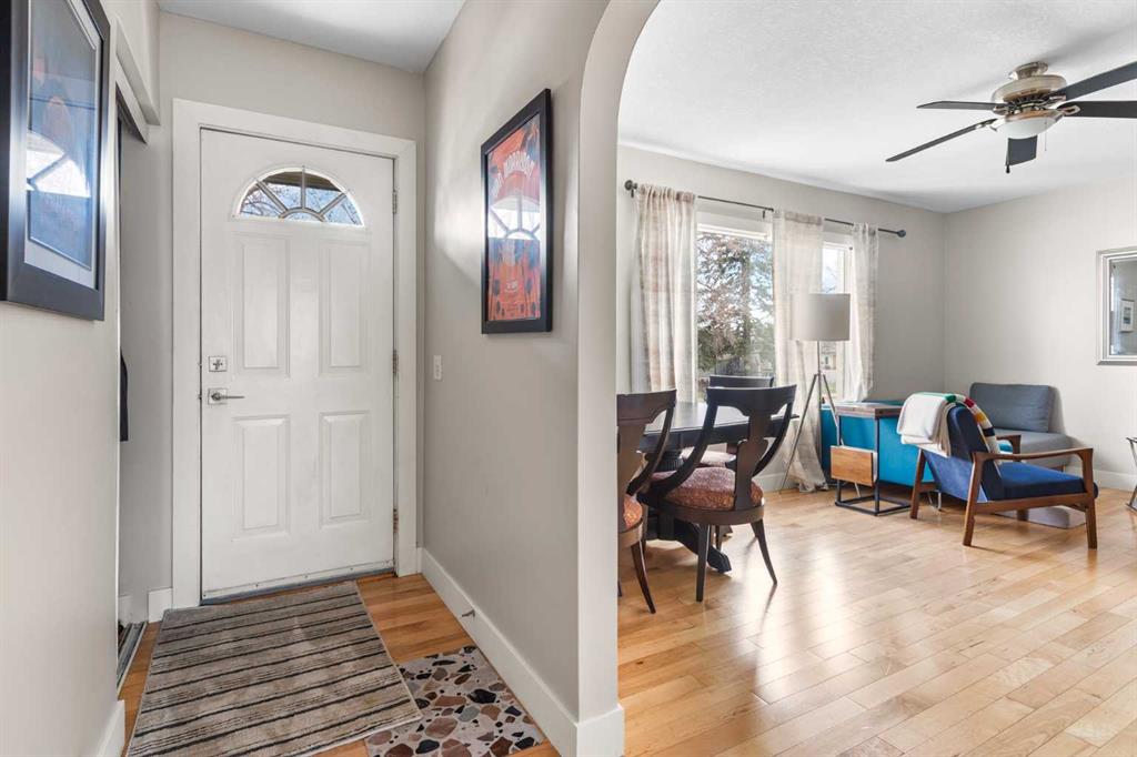 The main floor has THREE bedrooms, a four piece bath, and an open living and dining area with a big front window pulling in tons of natural light. The original hardwood runs throughout, the kitchen has been updated with painted cabinets and also brings in a ton of natural light! This home actually has a proper foyer with closet space at the front entry!