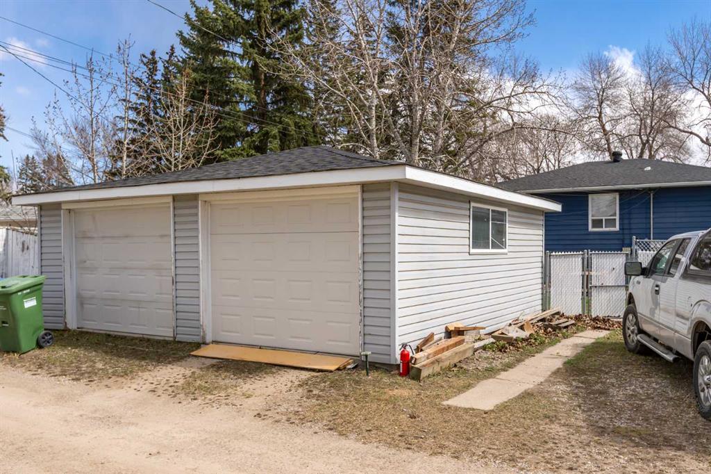 Out back, you have a private yard with mature trees, a patio area, a fire pit, and a DOUBLE DETACHED garage with NEW DOORS. For additional parking, there is a parking pad directly beside the garage. The lot is 50' x 120' and zoned RCG, which gives you real future redevelopment potential alongside the immediate income from the suite.