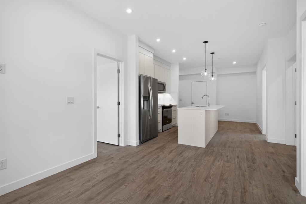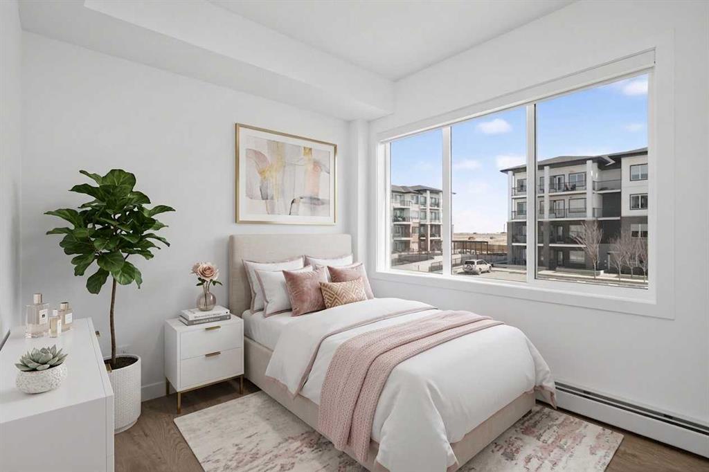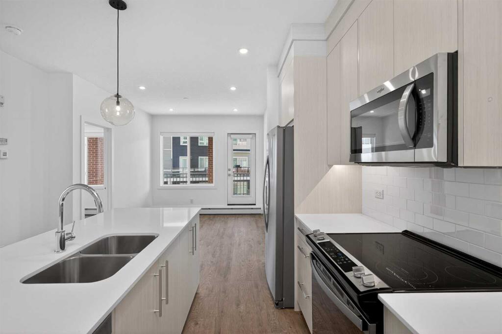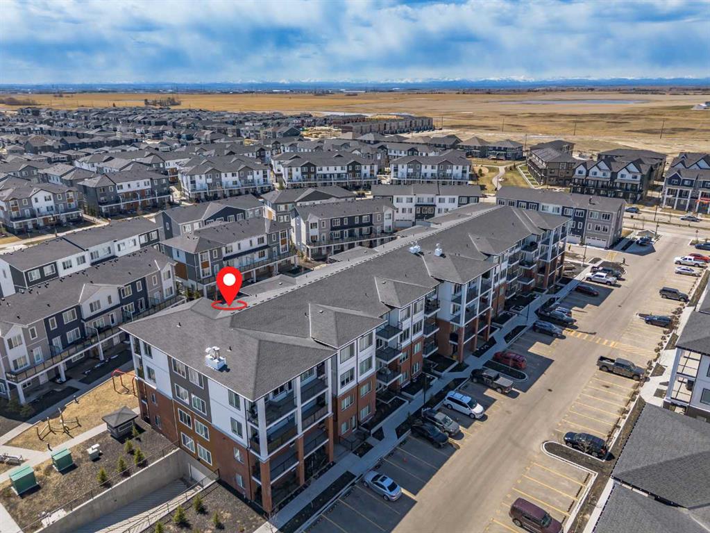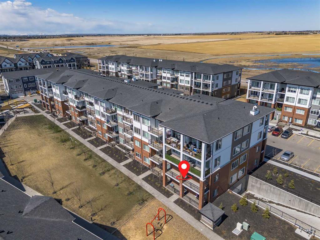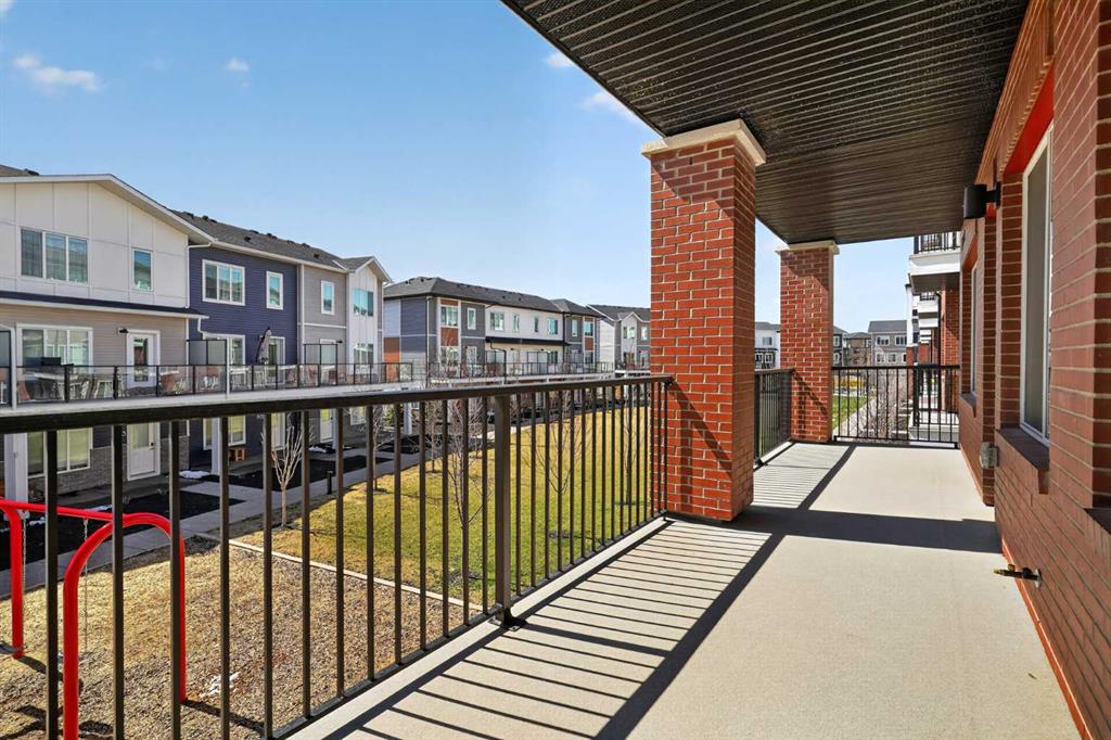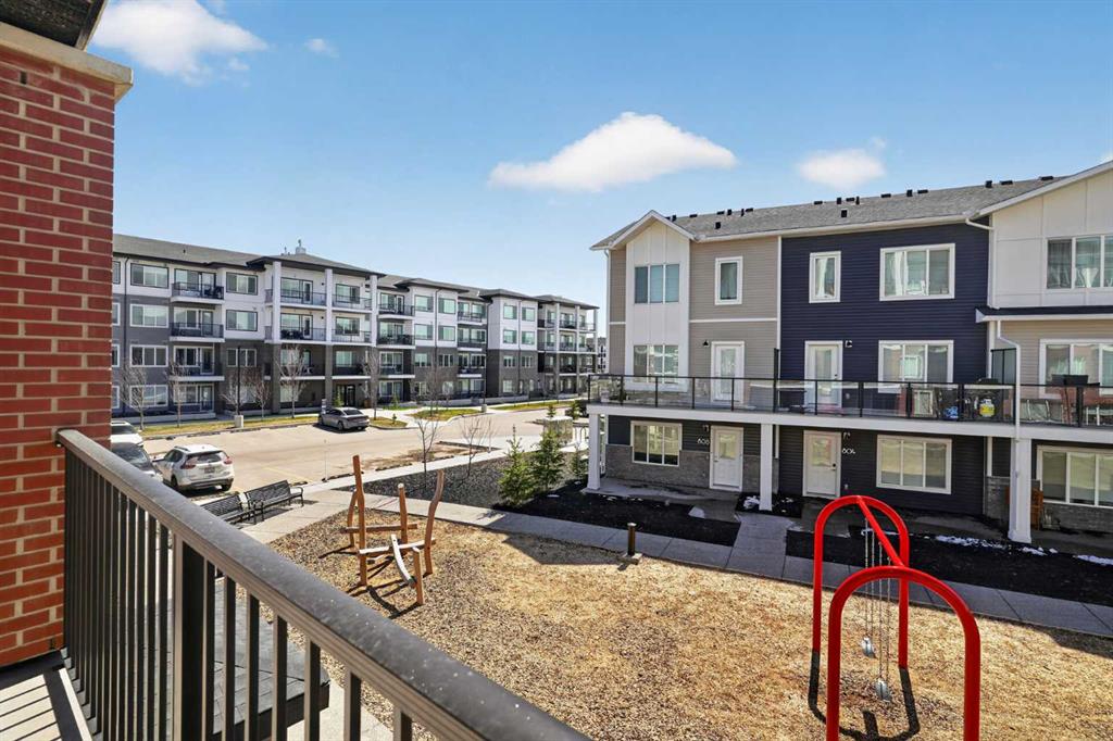 Three bedrooms, two full bathrooms, and two titled parking stalls are getting harder to find in newer condos. Welcome to Unit 3201 in Lockwood, located in Chelsea on the west edge of Chestermere, just minutes from Calgary. This unit stands out with a nearly 30 foot south facing balcony overlooking greenspace and a playground, giving you both light and privacy. Inside, the kitchen is sharp and functional with quartz countertops, a large island with breakfast bar, full height cabinetry, and stainless steel appliances. The layout works. A comfortable living area, a dedicated workspace, and smart separation between bedrooms that suits a small family, roommates, or a home office setup. The building adds real value with a top floor gym and access to a resident lounge in a neighbouring building. Chelsea is a fast growing community with planned schools, pathways, parks, and easy access to 17 Avenue and Stoney Trail, making the commute into Calgary simple. If you are trying to find space, functionality, and future upside without stretching your budget, this is one worth a look.