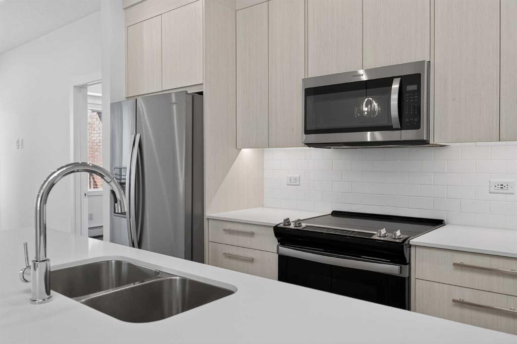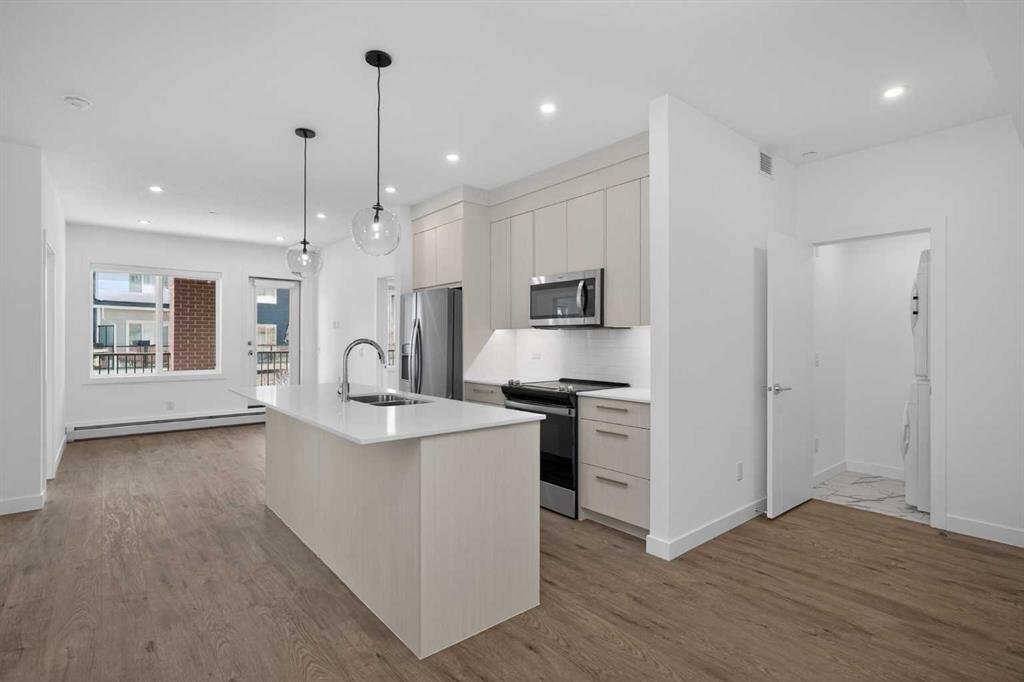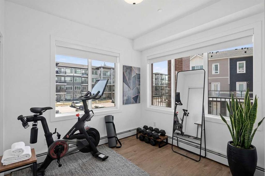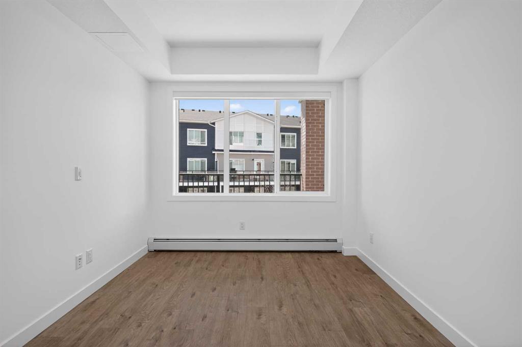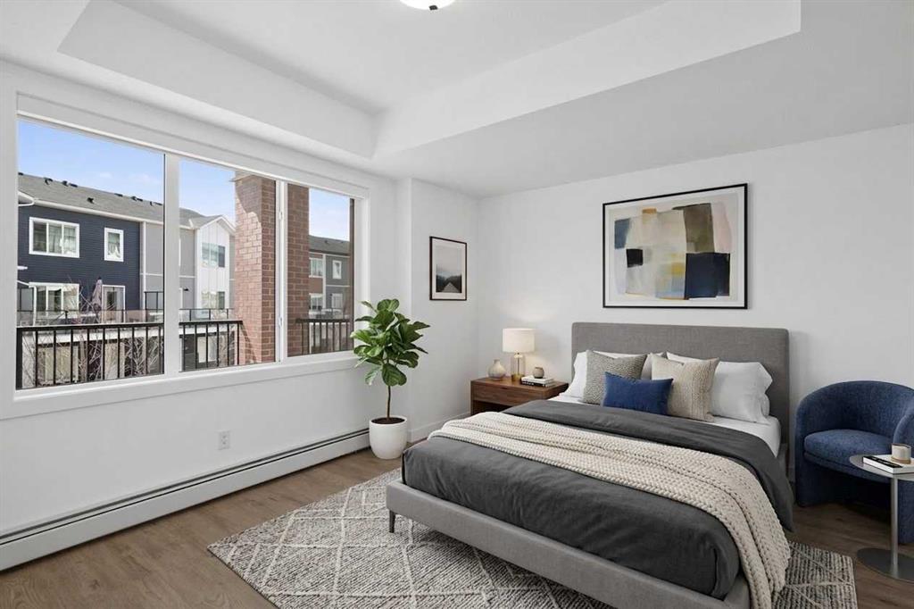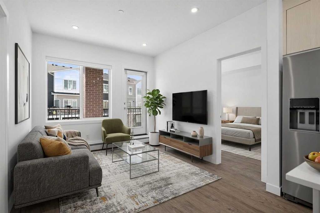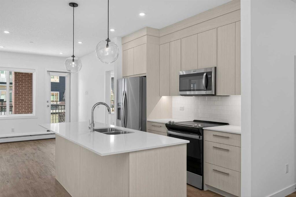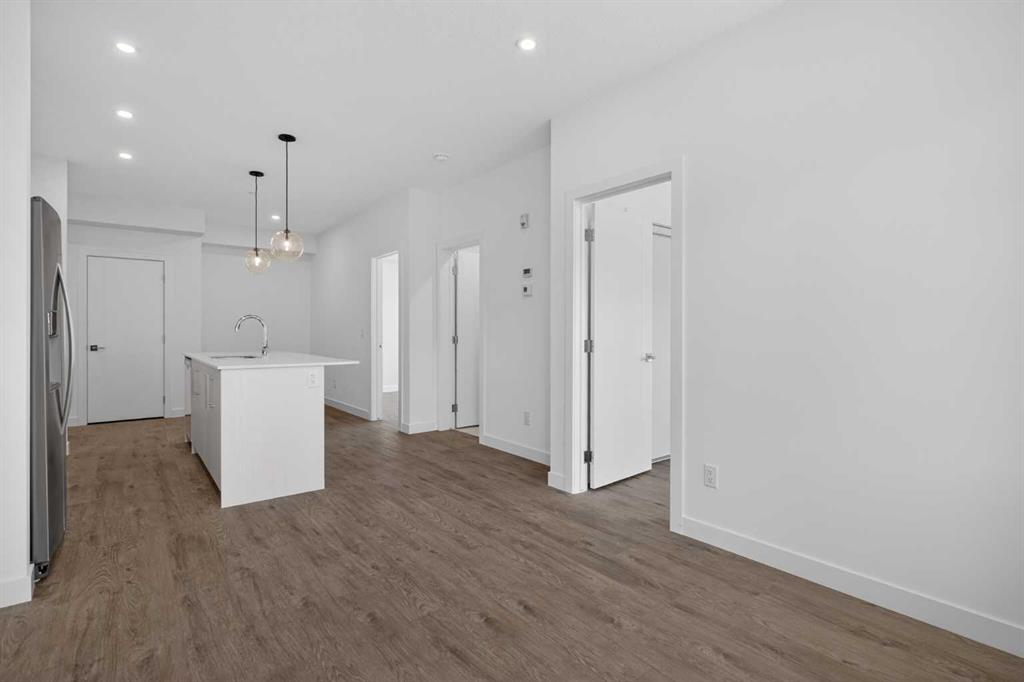 Three bedrooms, two full bathrooms, and two titled parking stalls are getting harder to find in newer condos. Welcome to Unit 3201 in Lockwood, located in Chelsea on the west edge of Chestermere, just minutes from Calgary. This unit stands out with a nearly 30 foot south facing balcony overlooking greenspace and a playground, giving you both light and privacy. Inside, the kitchen is sharp and functional with quartz countertops, a large island with breakfast bar, full height cabinetry, and stainless steel appliances. The layout works. A comfortable living area, a dedicated workspace, and smart separation between bedrooms that suits a small family, roommates, or a home office setup. The building adds real value with a top floor gym and access to a resident lounge in a neighbouring building. Chelsea is a fast growing community with planned schools, pathways, parks, and easy access to 17 Avenue and Stoney Trail, making the commute into Calgary simple. If you are trying to find space, functionality, and future upside without stretching your budget, this is one worth a look.