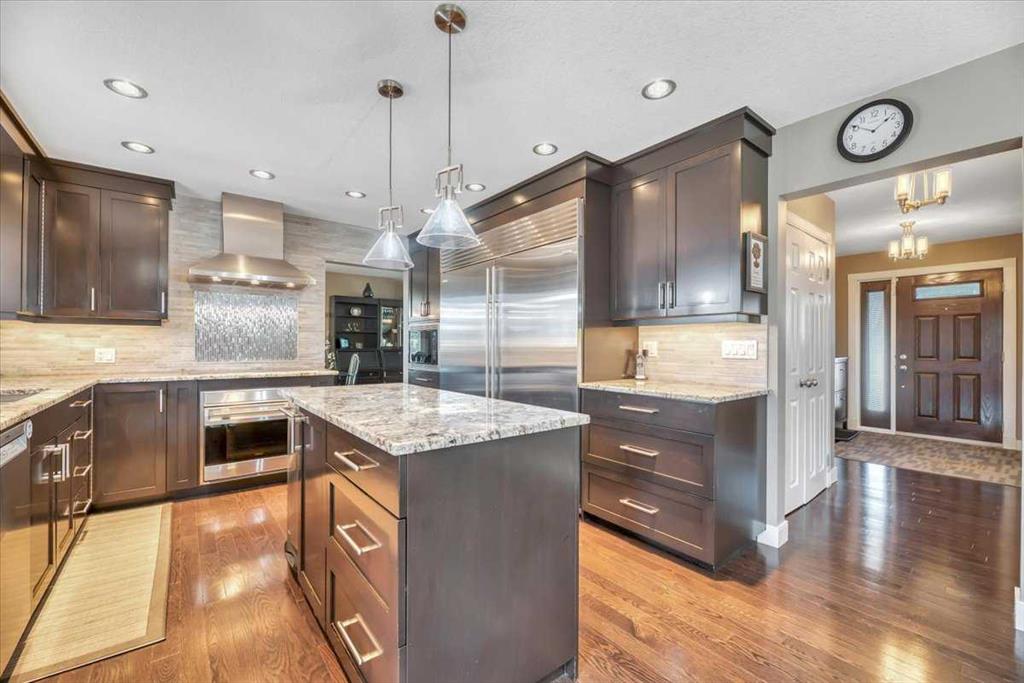 Set on a gentle hilltop, the home captures natural light and privacy throughout. Inside, a spacious foyer opens into a warm, light-filled interior with thoughtful upgrades. The chef-inspired kitchen with premium Wolf appliances anchors the home, ideal for both everyday living and entertaining.