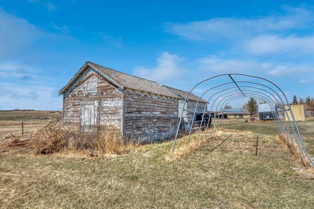 Outdoors, beautifully maintained grounds invite entertaining, gardening, and quiet evenings around the fire pit. Children can play freely, while an enclosed hot tub offers year-round relaxation just steps from the back door. The land is highly versatile, ideal for a hobby farm, horses, livestock, or a self-sufficient lifestyle. Previously used for cattle, boarding horses, and now for growing hay, the property is well setup for a variety of agricultural uses. A partially heated shop-barn includes equipment space, a heated tack room, three horse stalls, and additional storage. An attached greenhouse supporting multi-season gardening. Steel-fenced paddocks with shelters, stocked hay storage, and multiple outbuildings support livestock and equestrian use. A riding arena and dugout further enhance the property’s rural functionality. The property is fenced for mixed use. With two wells, buried water lines, and a reliable domestic water and septic system, infrastructure is in place. South-side placement of structures offers potential subdivision opportunities, subject to approvals.