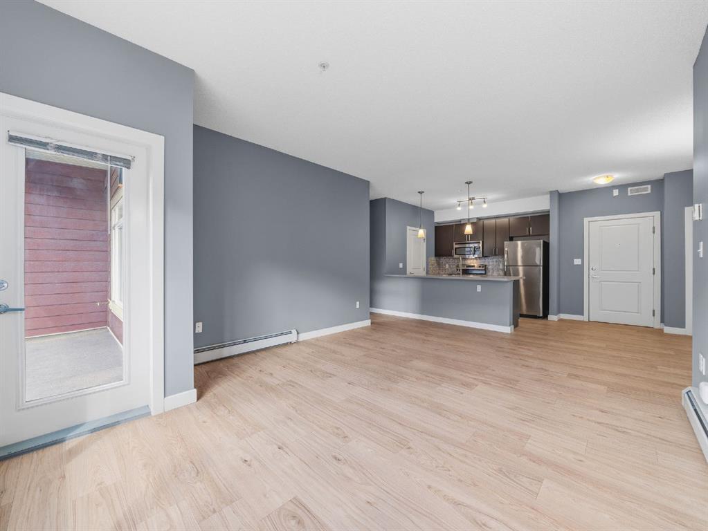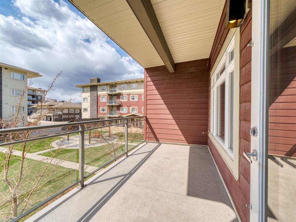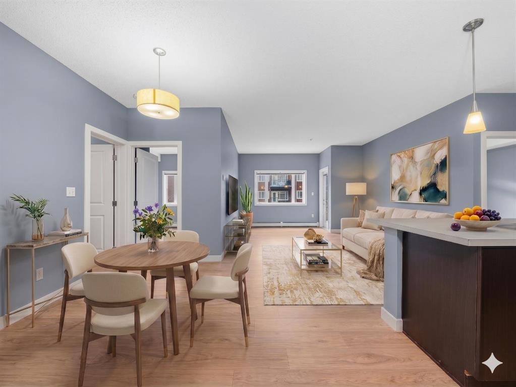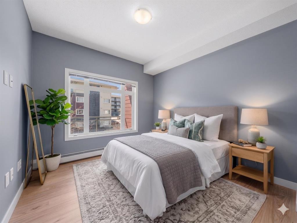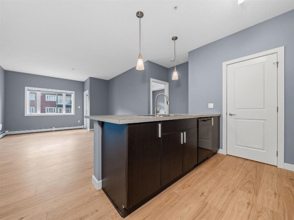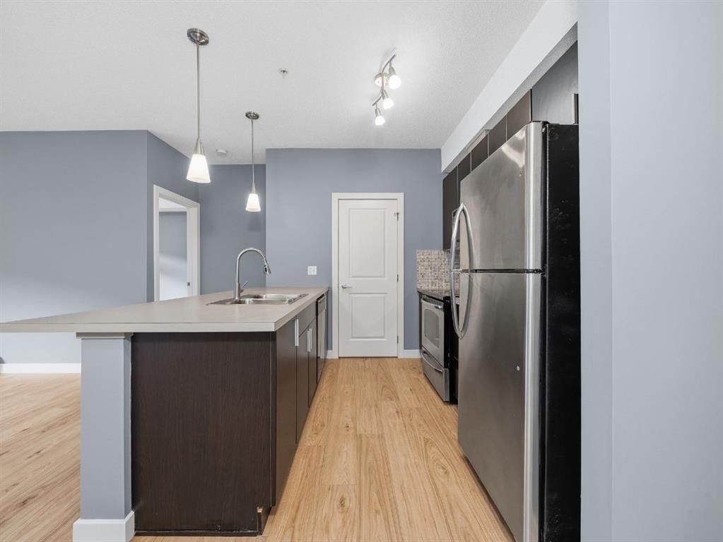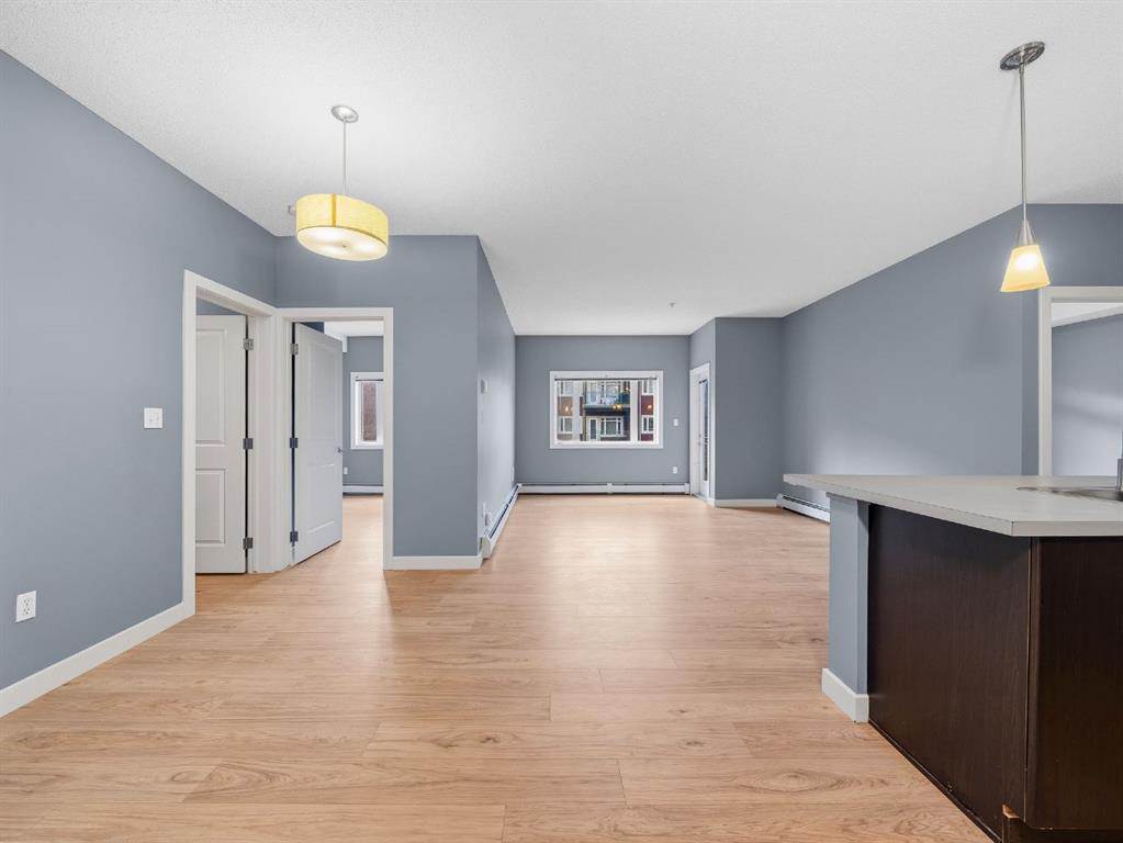 Welcome to this bright, thoughtfully designed condo offering an open-concept layout that blends comfort with everyday functionality. The kitchen features rich dark-stained cabinetry, a convenient breakfast bar and a generously sized pantry, providing plenty of storage for daily living. Just off the kitchen, you’ll find a spacious dining area that flows seamlessly into the large living room, highlighted by an oversized window that fills the space with natural light. Step through the balcony doors to your private outdoor retreat, complete with a glass railing and peaceful views overlooking the courtyard- the quiet side of the building. This unit offers two generously sized bedrooms, including a primary suite with a walkthrough closet and a full 4-piece ensuite. Additional features include in-suite laundry, titled underground parking and a storage locker for added convenience. Residents can also enjoy access to a clubhouse featuring a fitness center, media room and comfortable lounge area.
