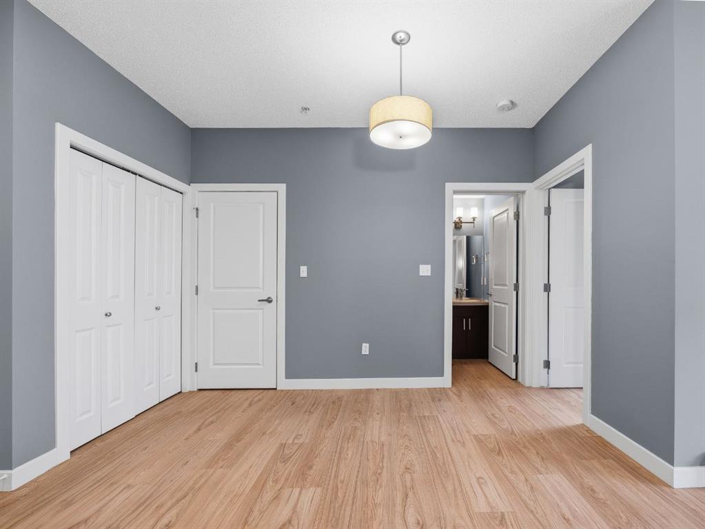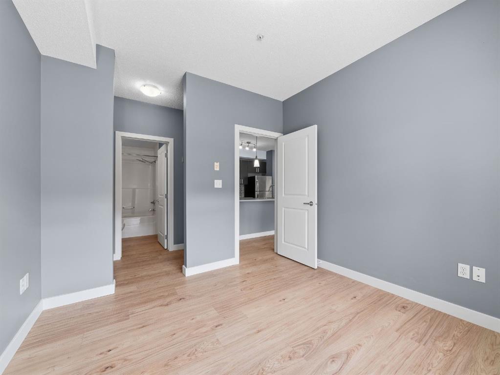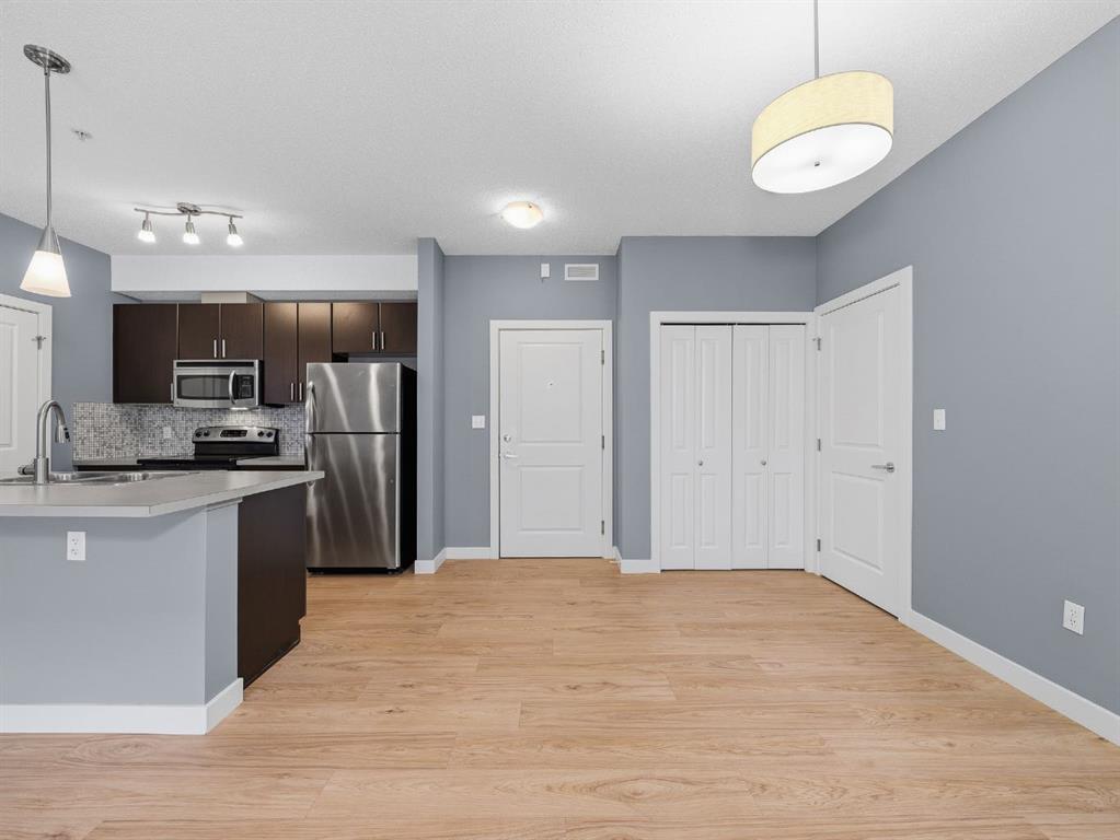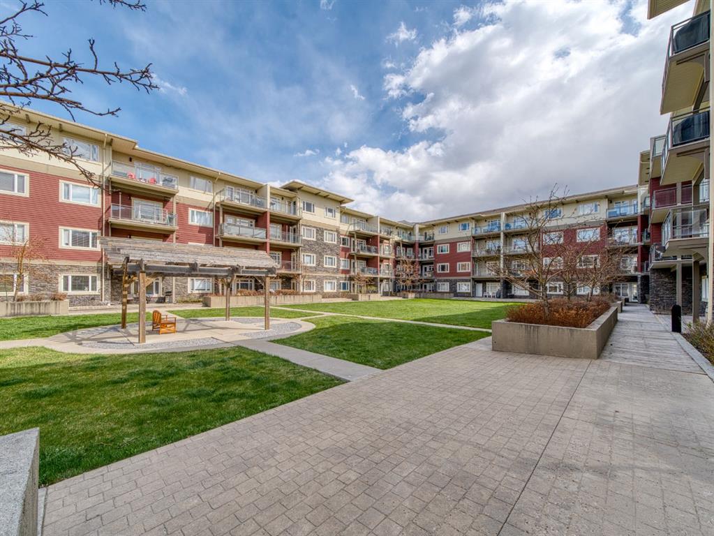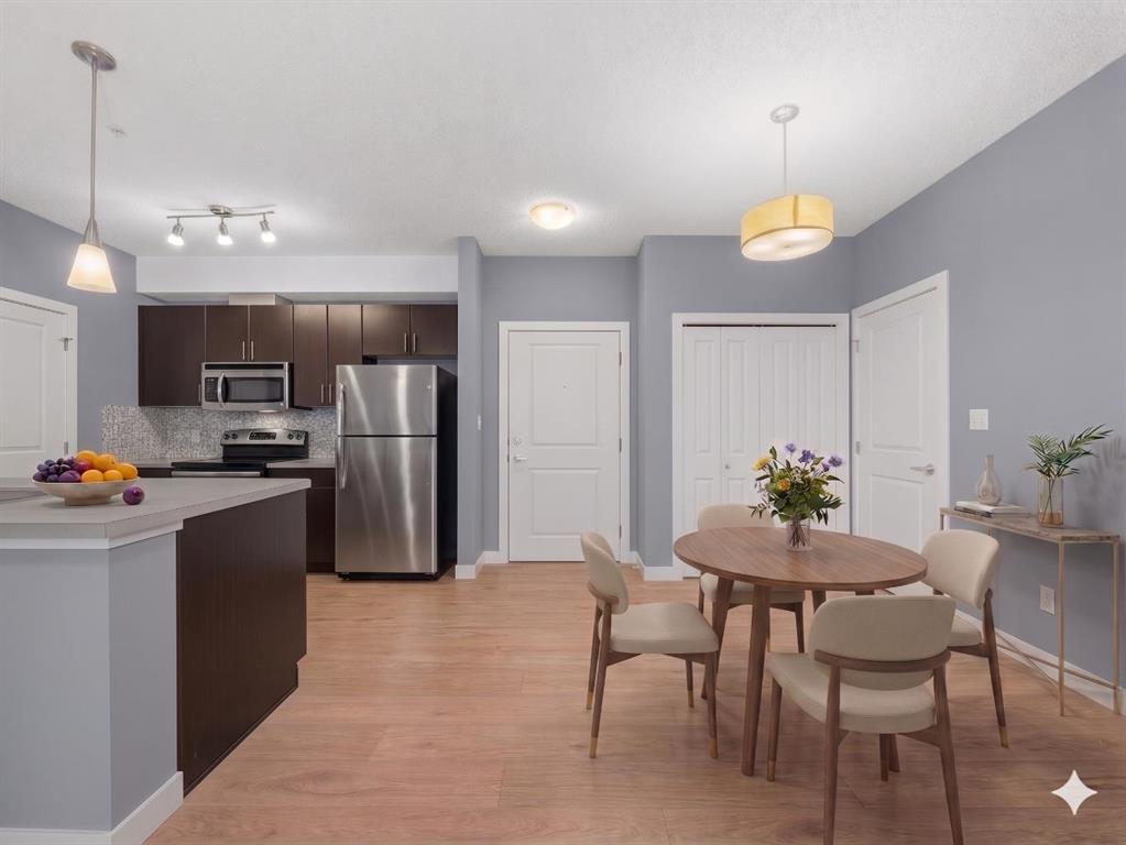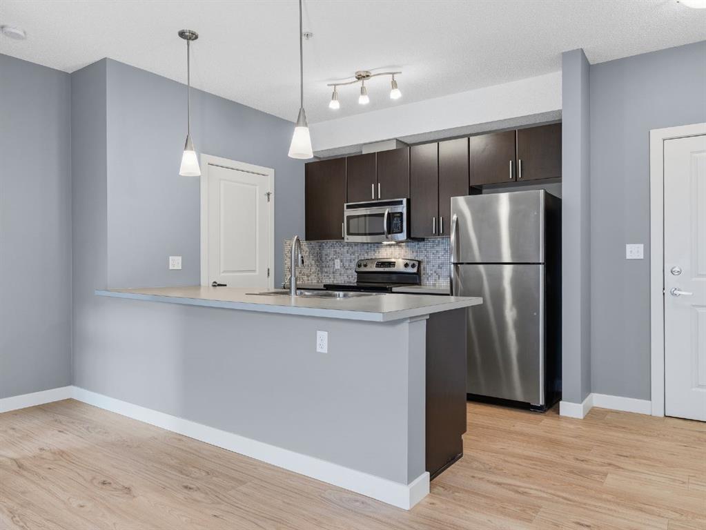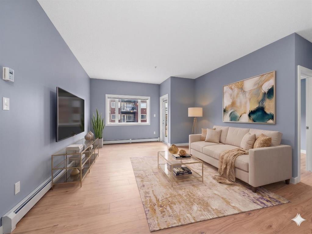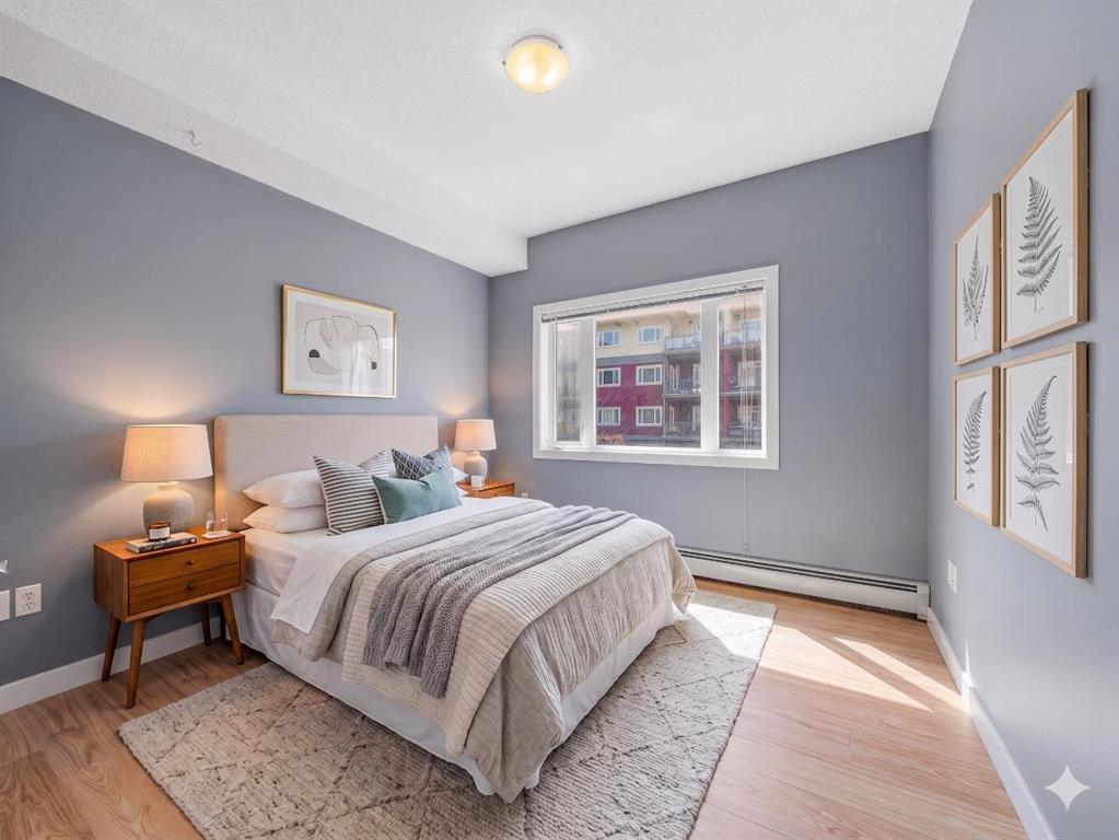 Welcome to this bright, thoughtfully designed condo offering an open-concept layout that blends comfort with everyday functionality. The kitchen features rich dark-stained cabinetry, a convenient breakfast bar and a generously sized pantry, providing plenty of storage for daily living. Just off the kitchen, you’ll find a spacious dining area that flows seamlessly into the large living room, highlighted by an oversized window that fills the space with natural light. Step through the balcony doors to your private outdoor retreat, complete with a glass railing and peaceful views overlooking the courtyard- the quiet side of the building. This unit offers two generously sized bedrooms, including a primary suite with a walkthrough closet and a full 4-piece ensuite. Additional features include in-suite laundry, titled underground parking and a storage locker for added convenience. Residents can also enjoy access to a clubhouse featuring a fitness center, media room and comfortable lounge area.