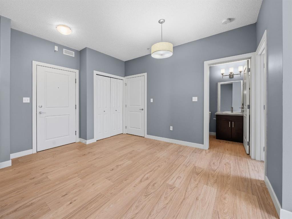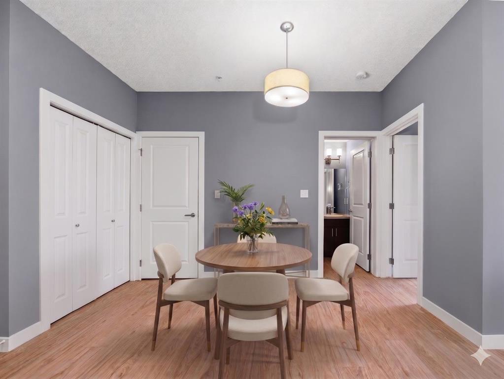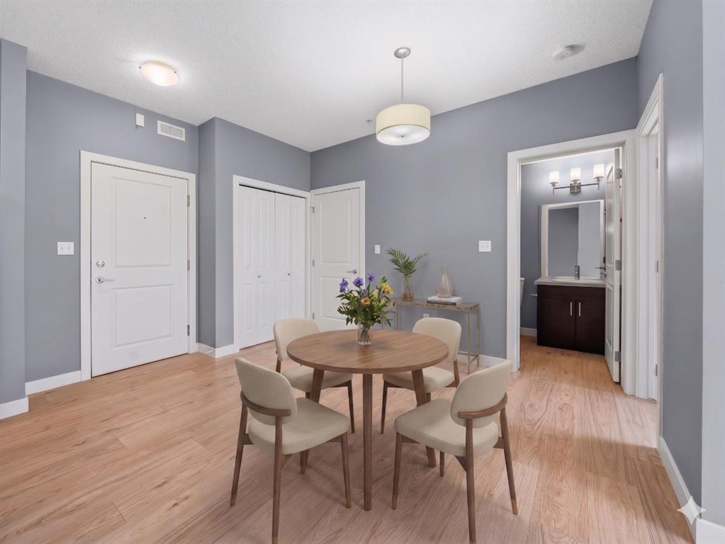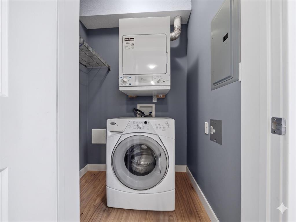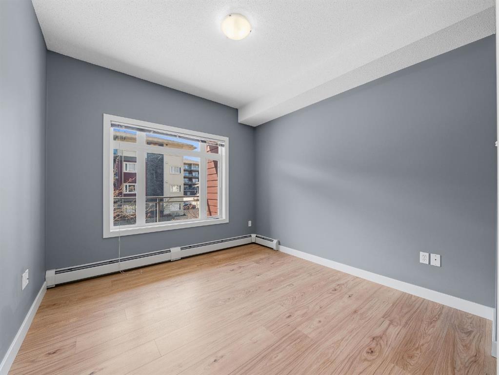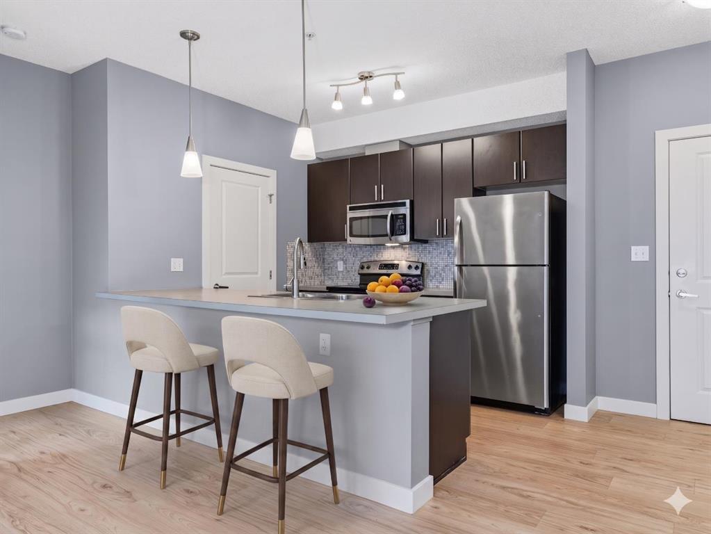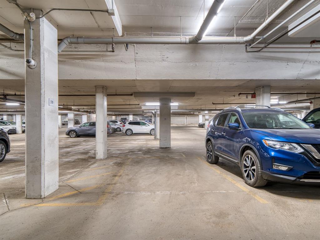 Welcome to this bright, thoughtfully designed condo offering an open-concept layout that blends comfort with everyday functionality. The kitchen features rich dark-stained cabinetry, a convenient breakfast bar and a generously sized pantry, providing plenty of storage for daily living. Just off the kitchen, you’ll find a spacious dining area that flows seamlessly into the large living room, highlighted by an oversized window that fills the space with natural light. Step through the balcony doors to your private outdoor retreat, complete with a glass railing and peaceful views overlooking the courtyard- the quiet side of the building. This unit offers two generously sized bedrooms, including a primary suite with a walkthrough closet and a full 4-piece ensuite. Additional features include in-suite laundry, titled underground parking and a storage locker for added convenience. Residents can also enjoy access to a clubhouse featuring a fitness center, media room and comfortable lounge area.