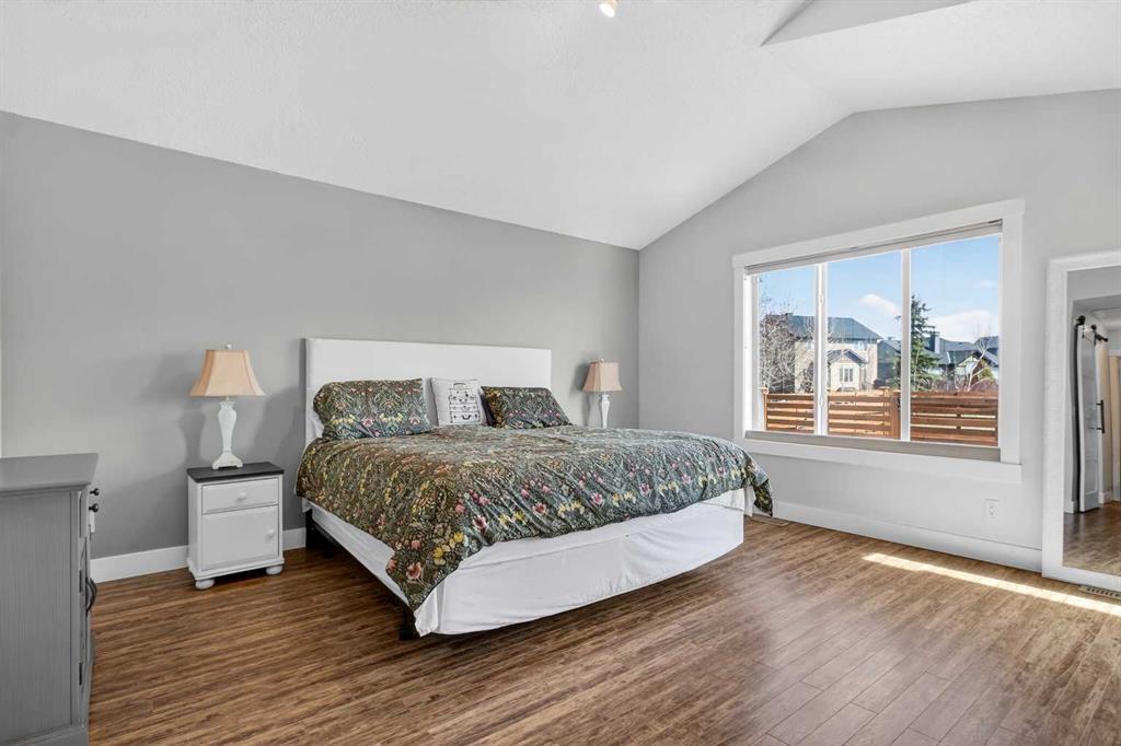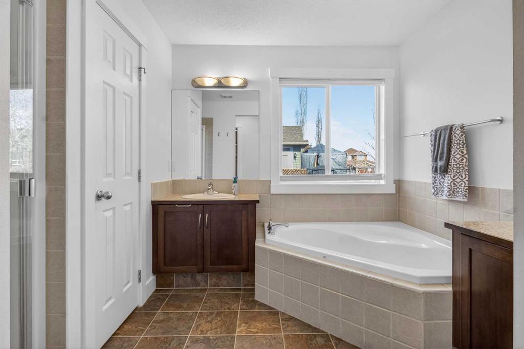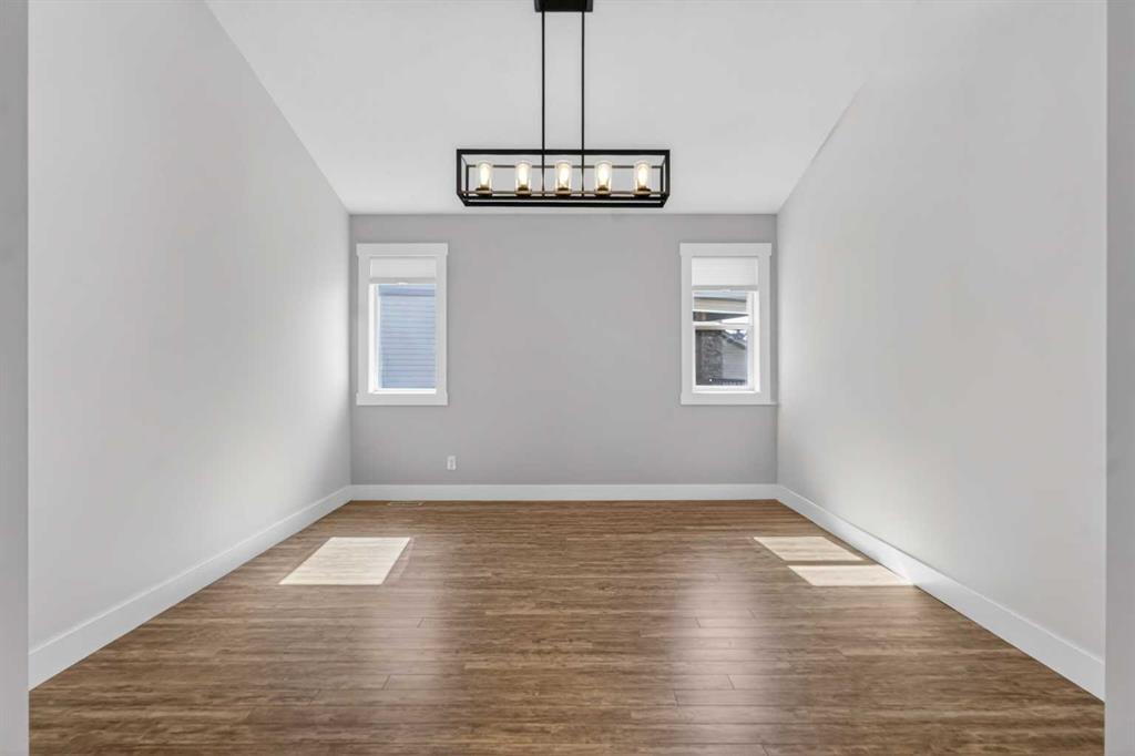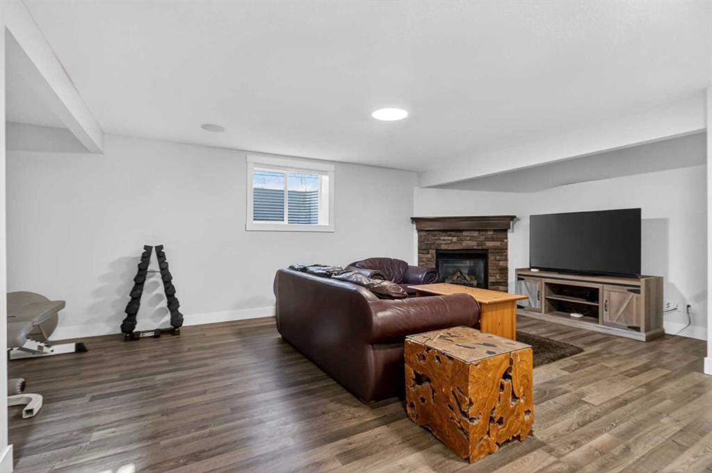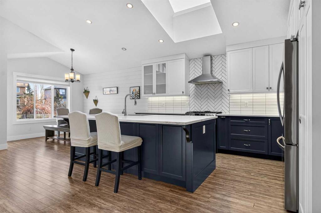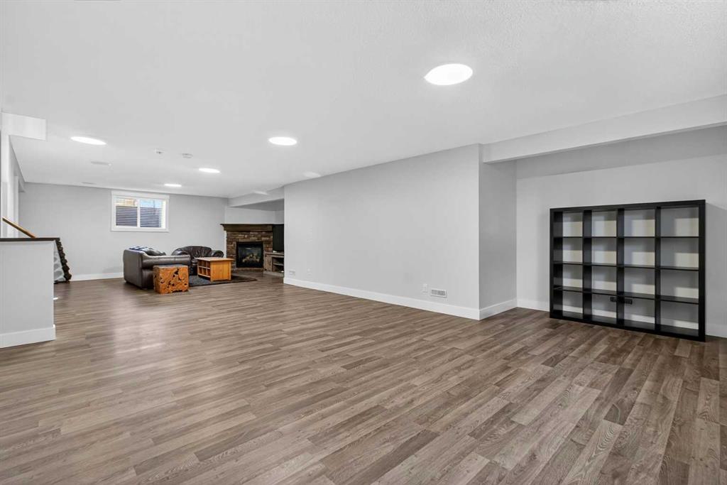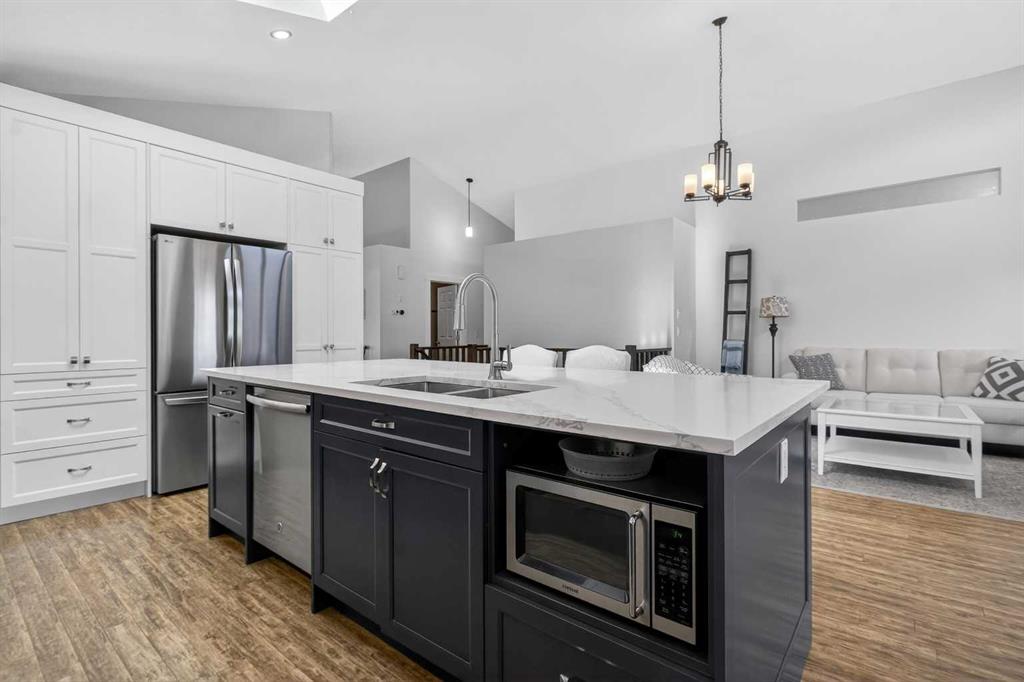 BOULDER CREEK ESTATES | VAULTED CEILINGS | CENTRAL AIR CONDITIONING | Immaculate, fully finished 4 bedroom, 3 bath, 1800 sq ft bungalow offers over 3,000 sq ft of beautifully designed living space! The charming curb appeal draws you in with a welcoming front porch and an impressive triple car garage, setting the tone for the exceptional home that awaits. Boasting a bright and airy open floorplan with soaring cathedral ceilings and abundant windows, this home features a formal dining room, a spacious den, and a welcoming living room with a gas fireplace for cozy nights in. The chef-inspired kitchen features granite countertops, stainless steel appliances, a gas stove, skylight, and ample cabinetry. The spacious primary suite includes a stylish barn door and a luxurious 5 pc ensuite. The fully developed lower level adds a large recreation room with a second gas fireplace, two additional bedrooms, generous storage, and the convenience of two laundry rooms. Situated on a private reverse pie lot backing onto green space, the landscaped backyard with underground sprinklers creates a peaceful outdoor retreat. Boulder Creek Estates is a vibrant community with nearby amenities including Boulder Creek Golf Course, the Langdon Fieldhouse, skatepark, playgrounds, schools, and local shops and restaurants, scenic walking paths, and convenient access to major commuting routes. Thoughtfully upgraded and meticulously maintained, this exceptional home offers space, comfort, and elegance just minutes from Calgary.